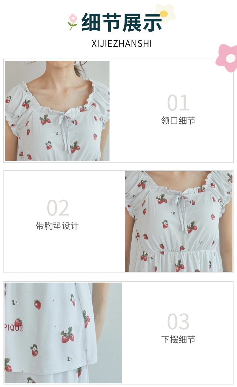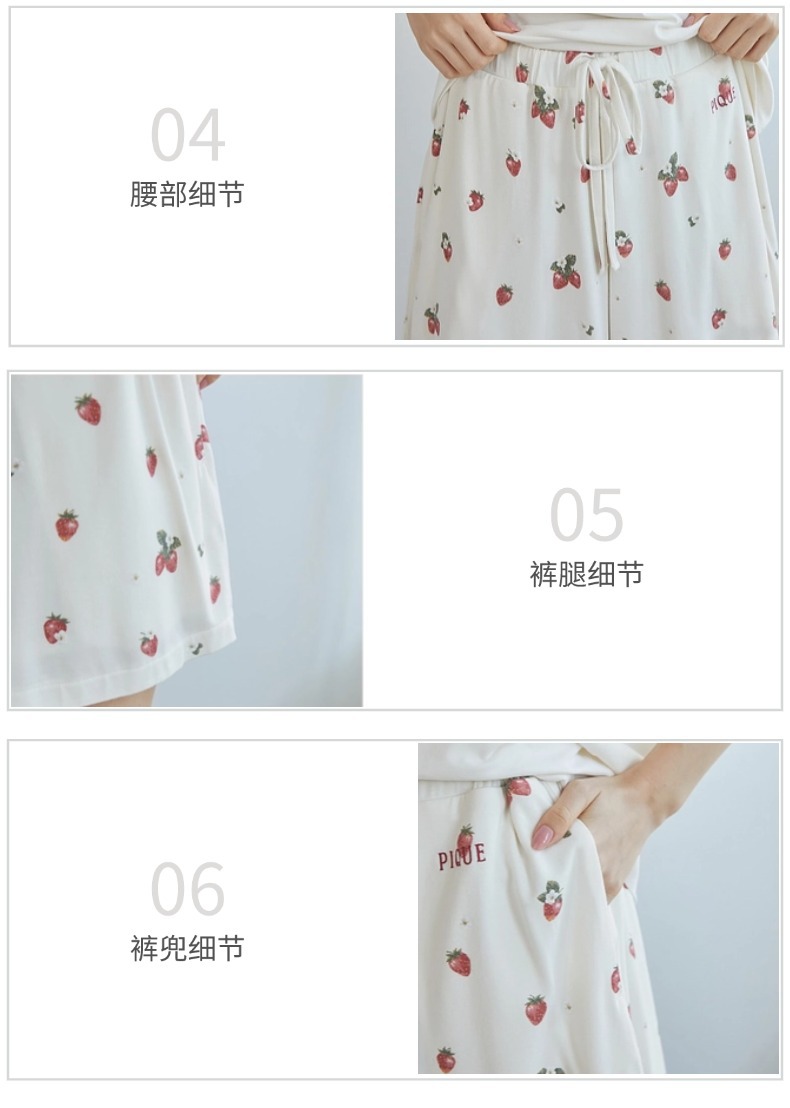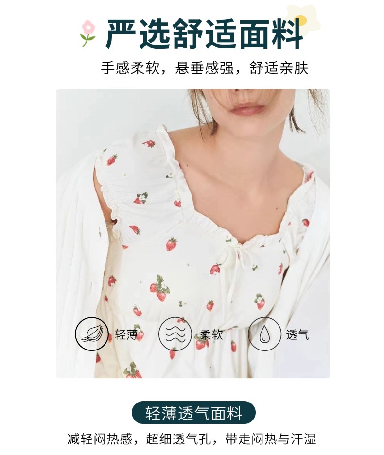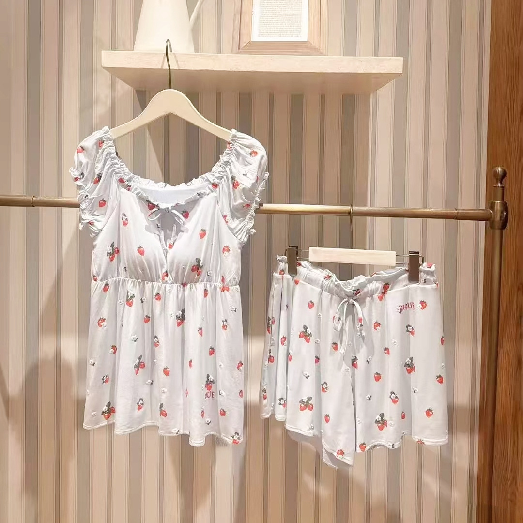 부드러운 전체 인쇄 딸기 모달 레이스 민소매 조끼 반바지 잠옷 세트 가슴 패드가있는 여성용 홈웨어스토어 가기