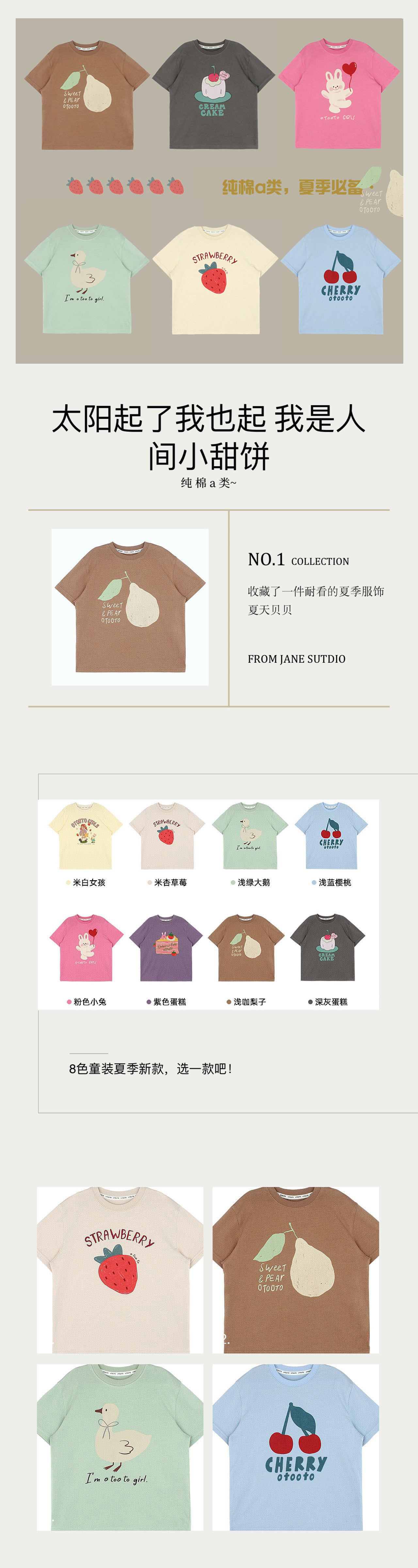 여자 반소매 캔디 컬러 티셔츠 아동복 면 8 색 조수 팬 2024 여름 새 아기 한 세대 대외 무역스토어 가기