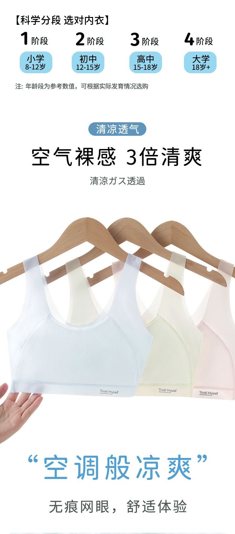 여아, 사춘기 여아 속옷, 브라, 중대형 아동 여름 통기성 메쉬 학생 발달기 아동 조끼스토어 가기