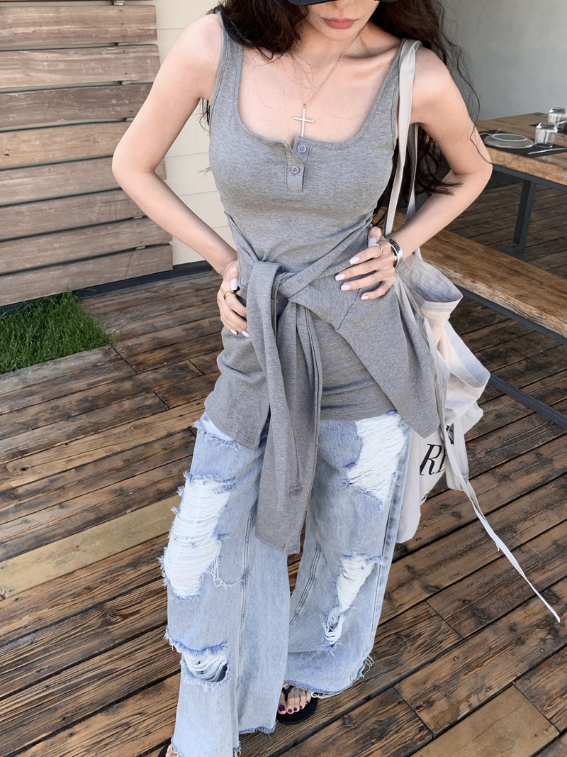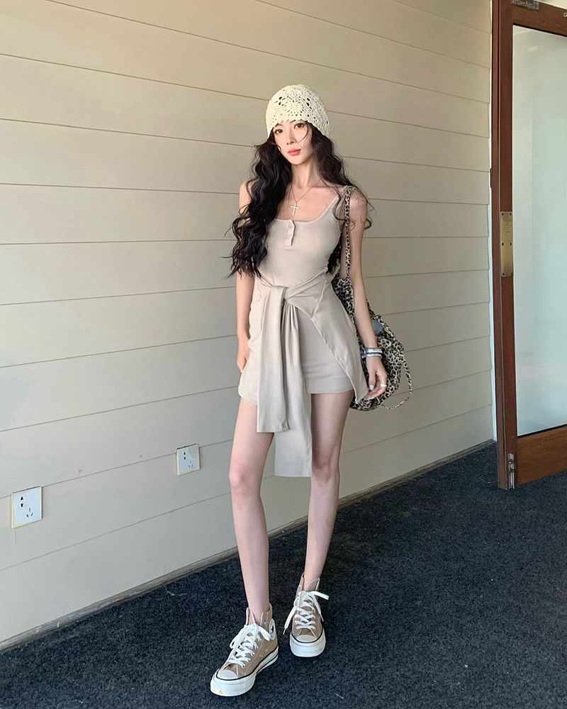 섹시한 핫걸 스타일 디자인의 슬림핏 가짜 투피스 조끼 서스펜더 드레스(가슴 패드 포함) 81477스토어 가기