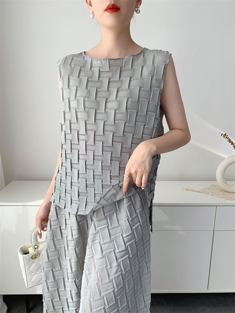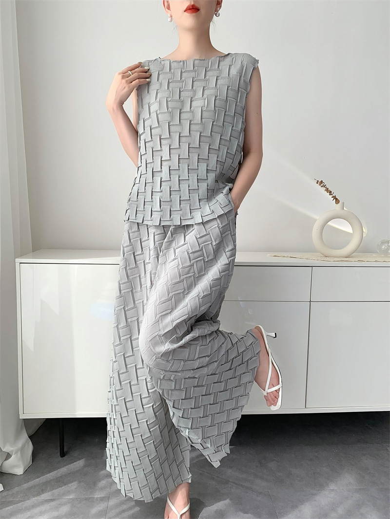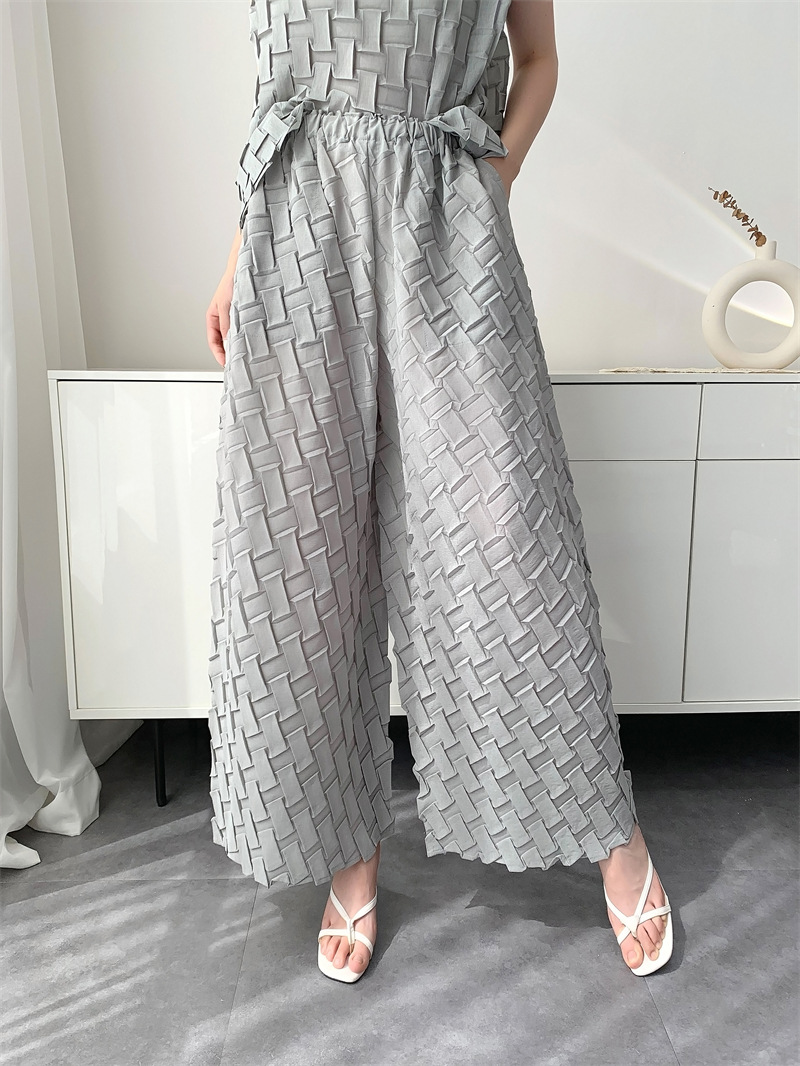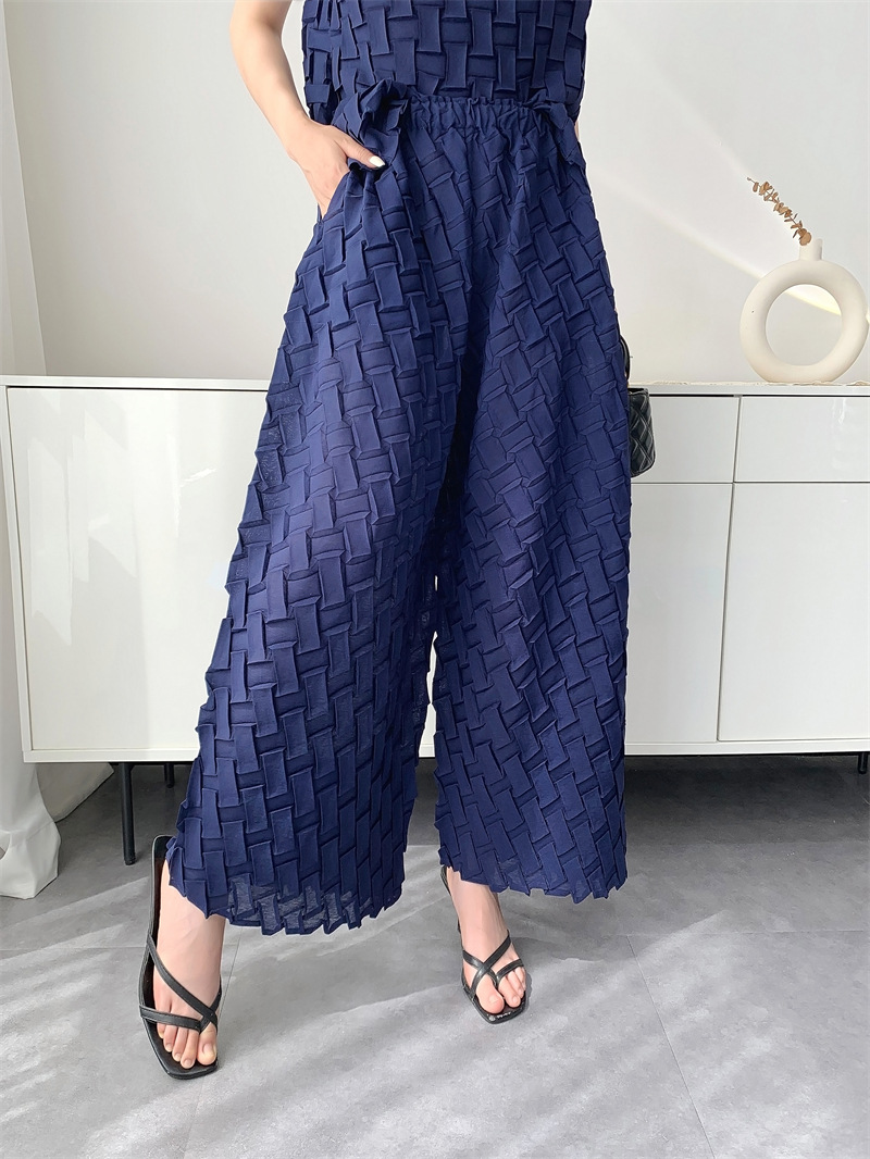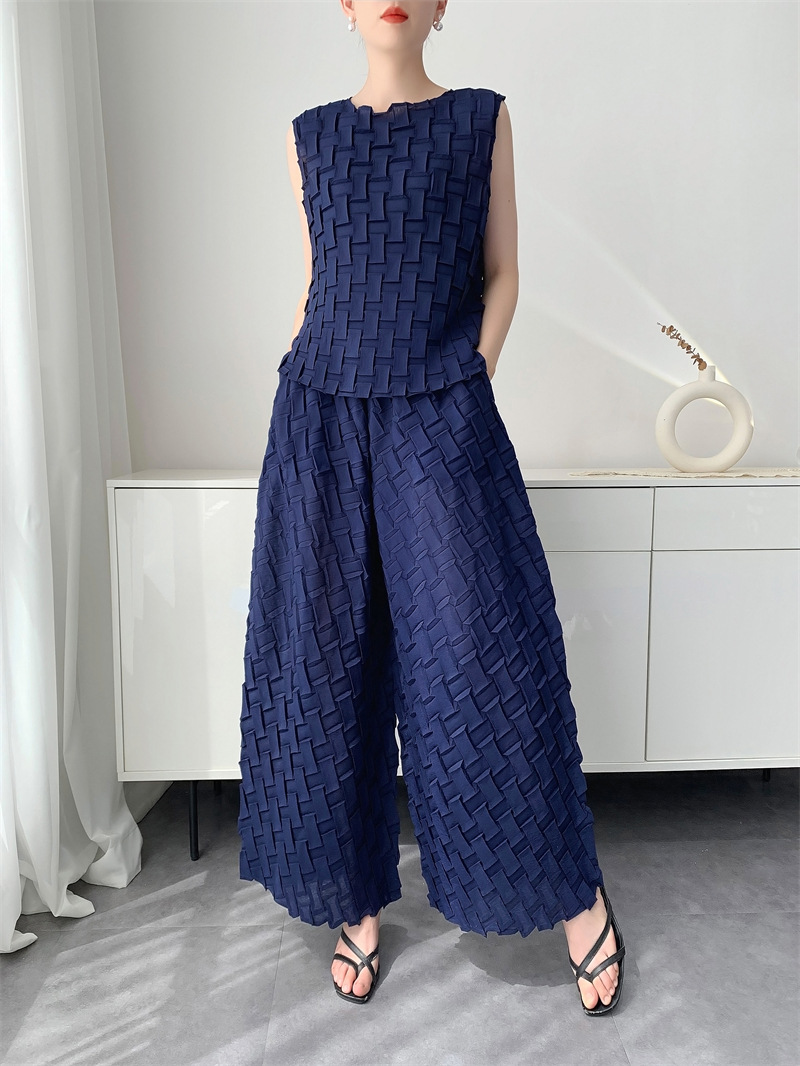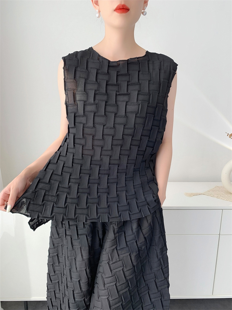 Miyake 스타일 수제 주름 세트 여성 여름 새로운 탑 호른 바지 편안한 캐주얼 디자인 센스 틈새스토어 가기