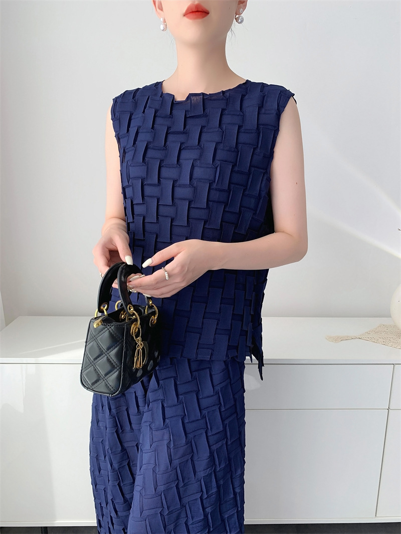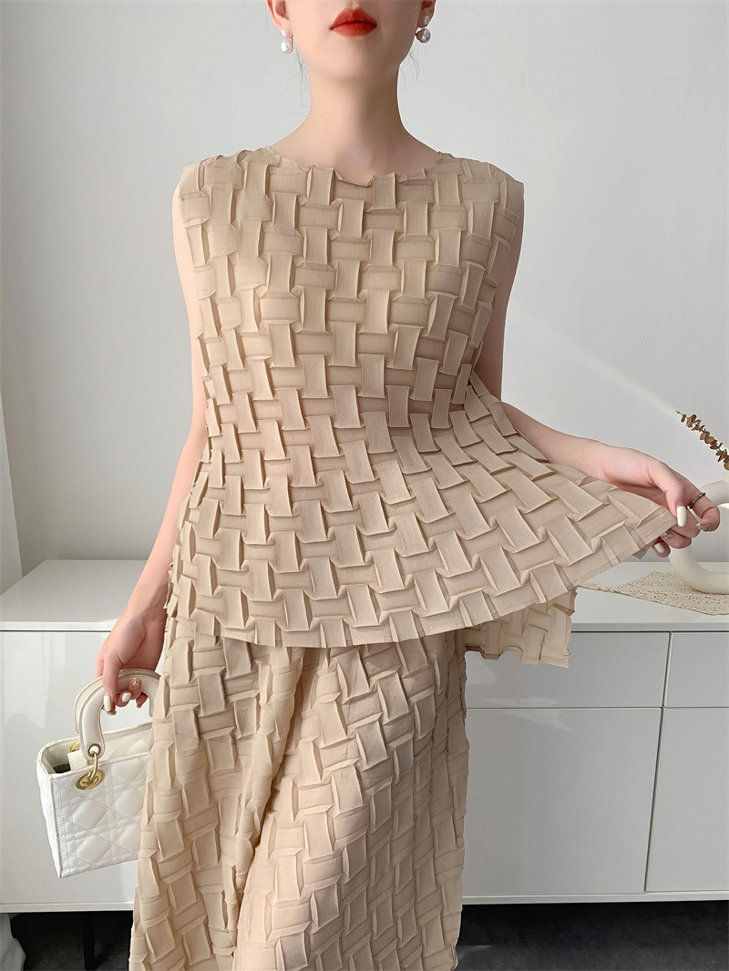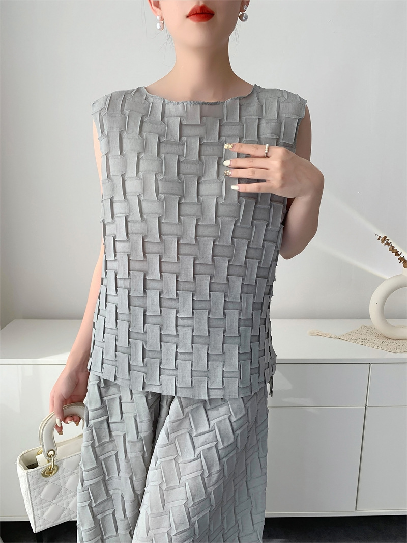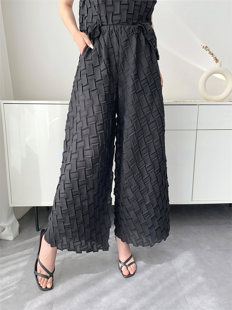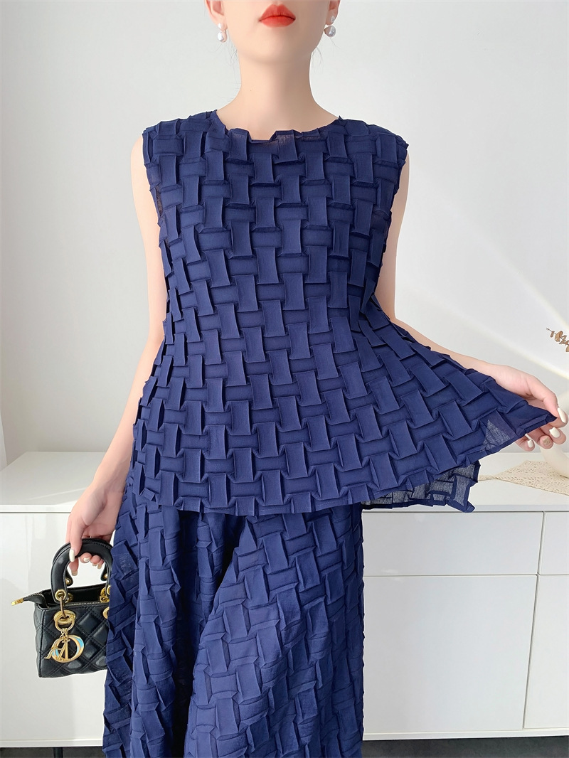 Miyake 스타일 수제 주름 세트 여성 여름 새로운 탑 호른 바지 편안한 캐주얼 디자인 센스 틈새스토어 가기
