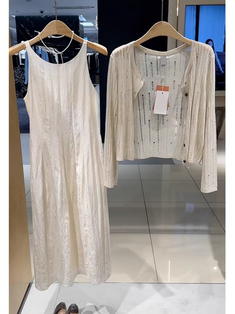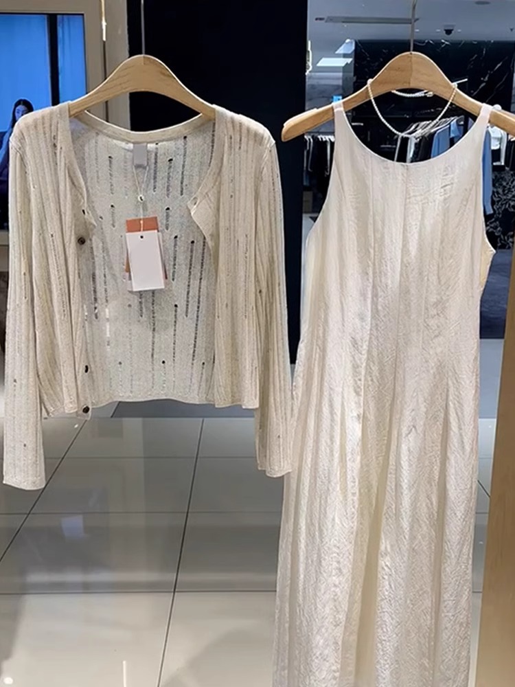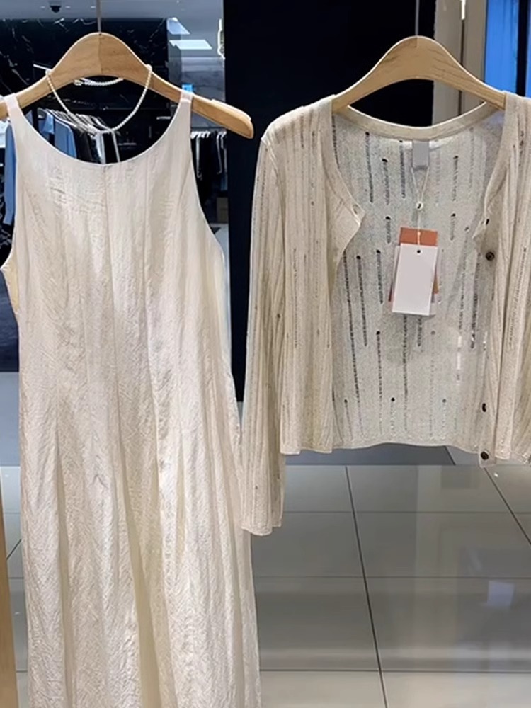 독특한 아름다운 봄과 여름 프랑스 흰색 민소매 원피스 어린이 2025 새로운 올해 인기 폭발 세트