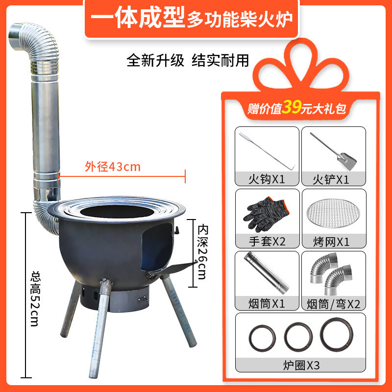 • [가정용 추천] 일체형 난로 48CM + 난로링 3개 + 이중귀 냄비 + 뚜껑 + 튀김숟가락 + 스토브 선물팩