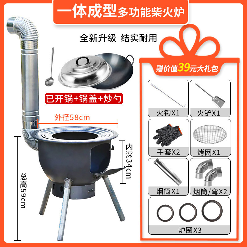 새로운 장작 난로, 가정용 농촌 장작 난로, 장작 모바일 스토브, 대형 냄비, 야외 캠핑 스토브, 지상 냄비스토어 가기