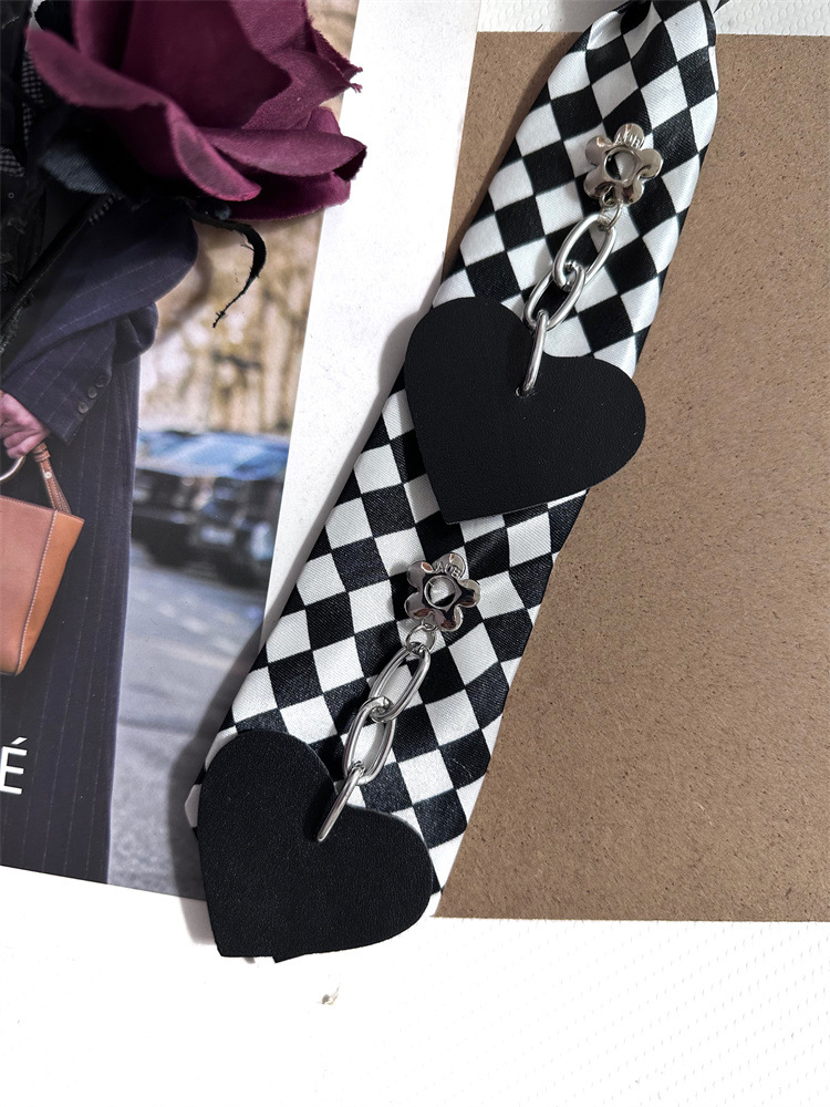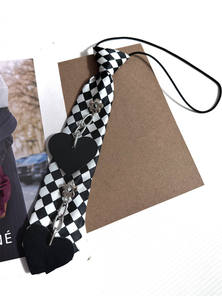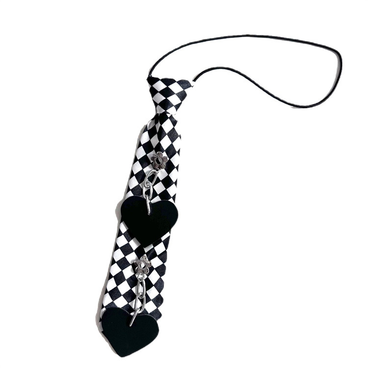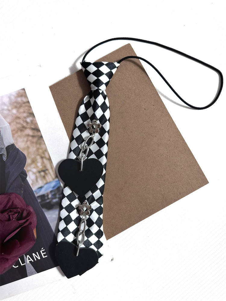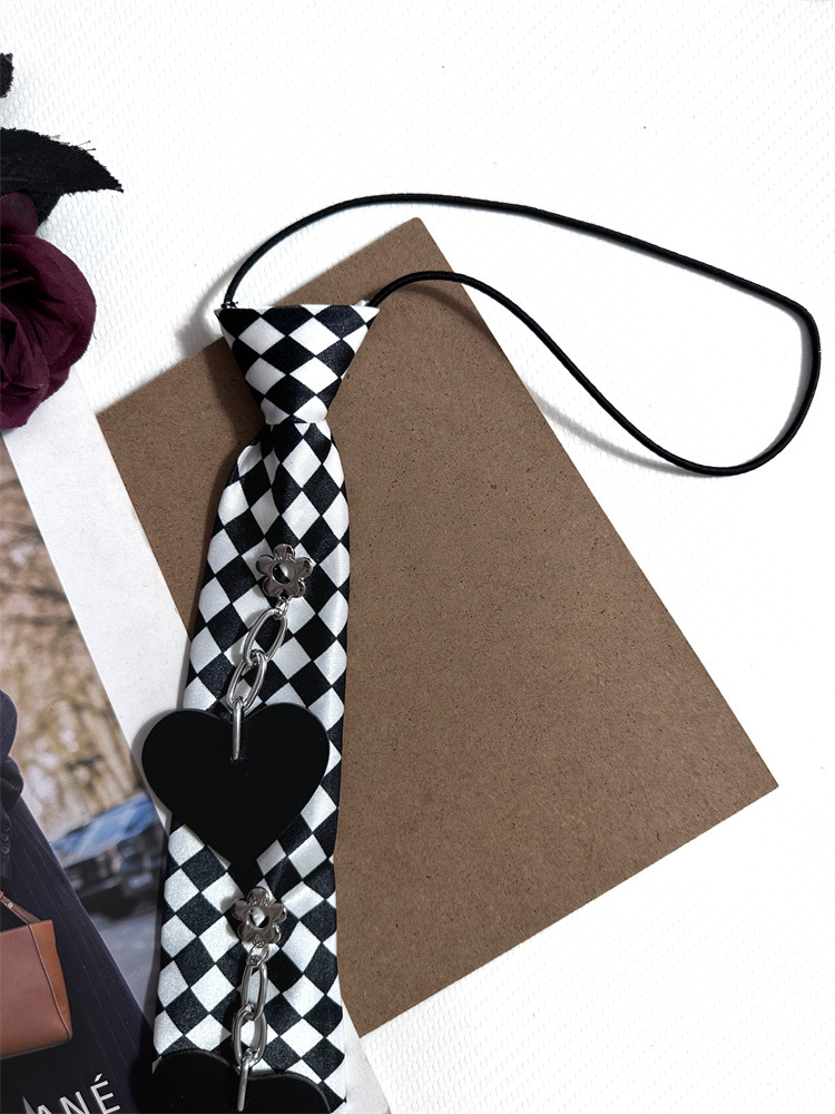 펑크 스타일 체커보드 러브 슈퍼 쿨 무료 레이지 탄성 풀오버 넥라인 장식 짧은 나비 넥타이 여성용 트렌디