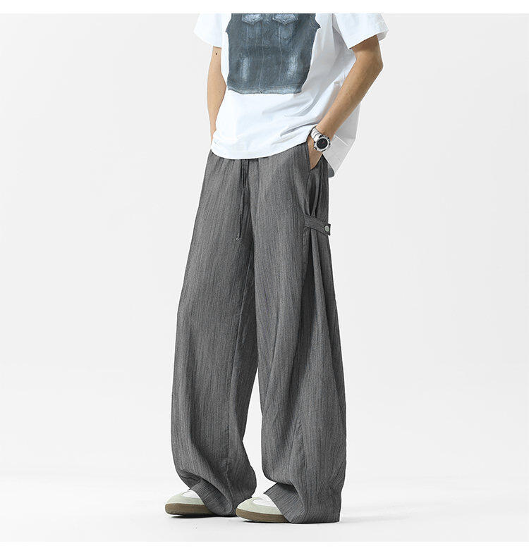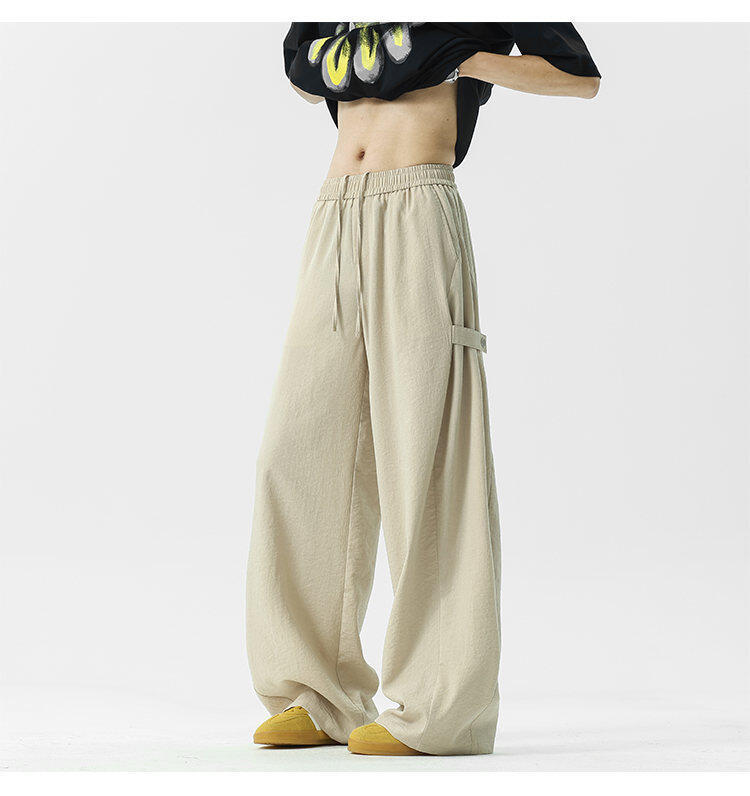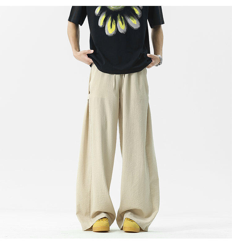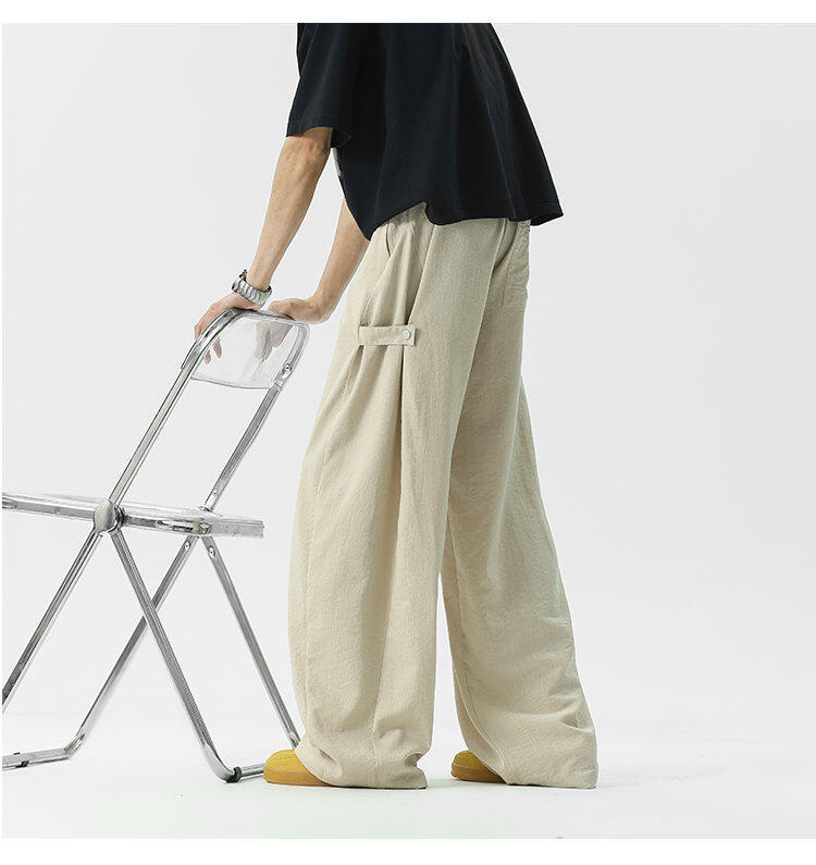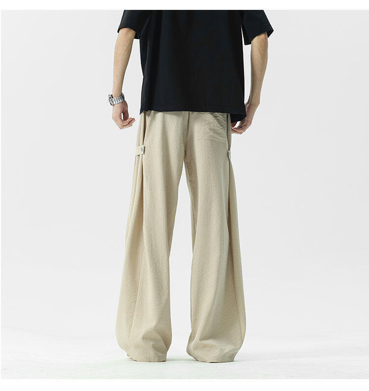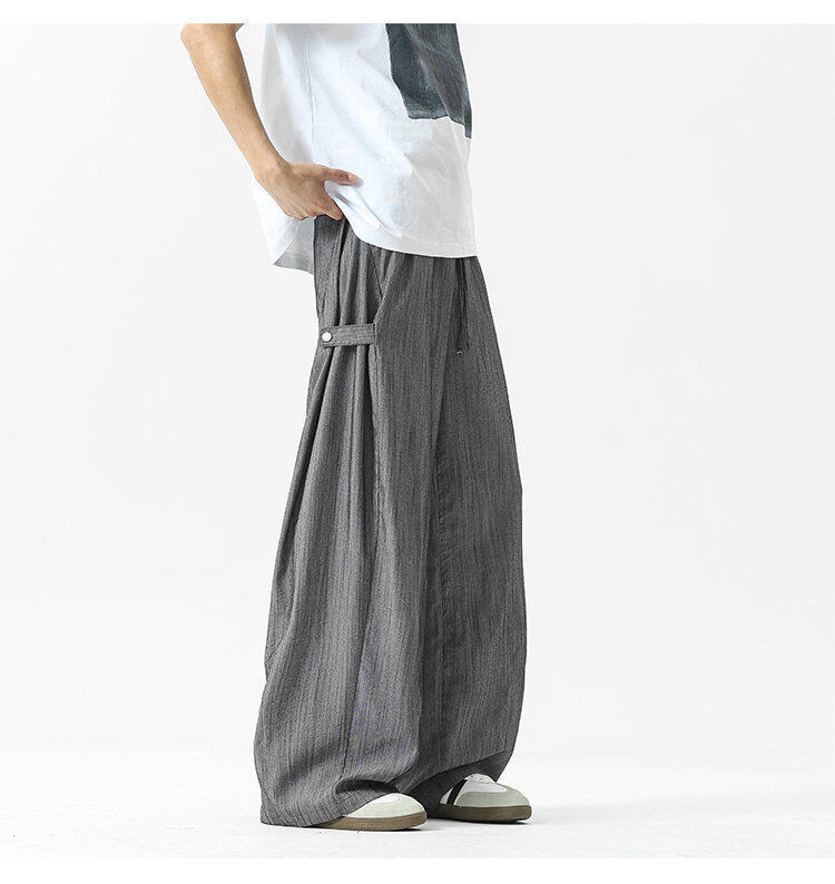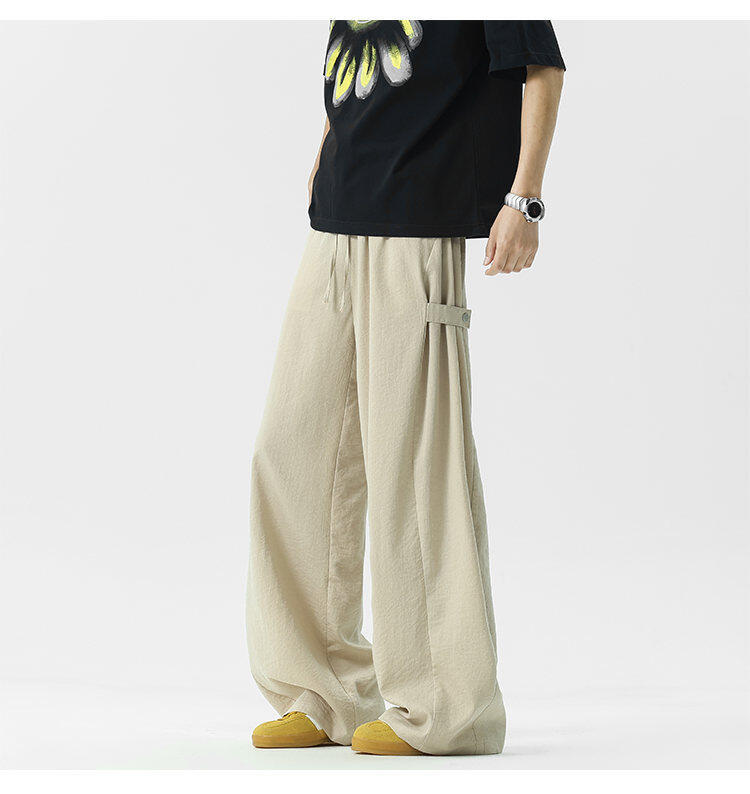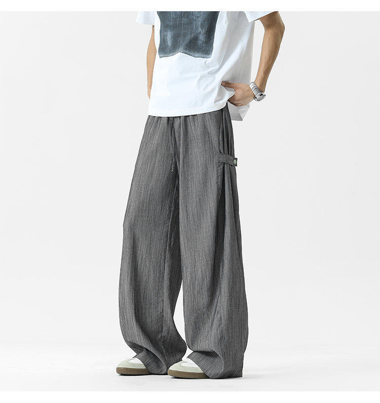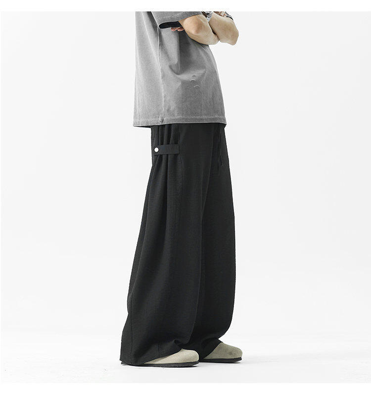 여름용 남성용 질감 있는 스트레이트 린넨 캐주얼 팬츠 얇은 야외 자외선 차단 드레이프 야마모토 팬츠 시원한 와이드 팬츠