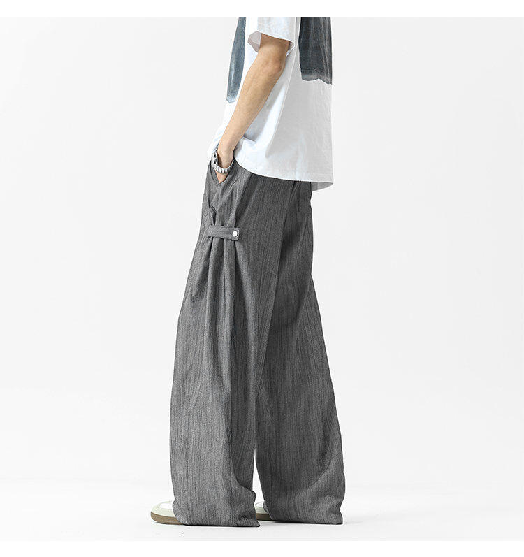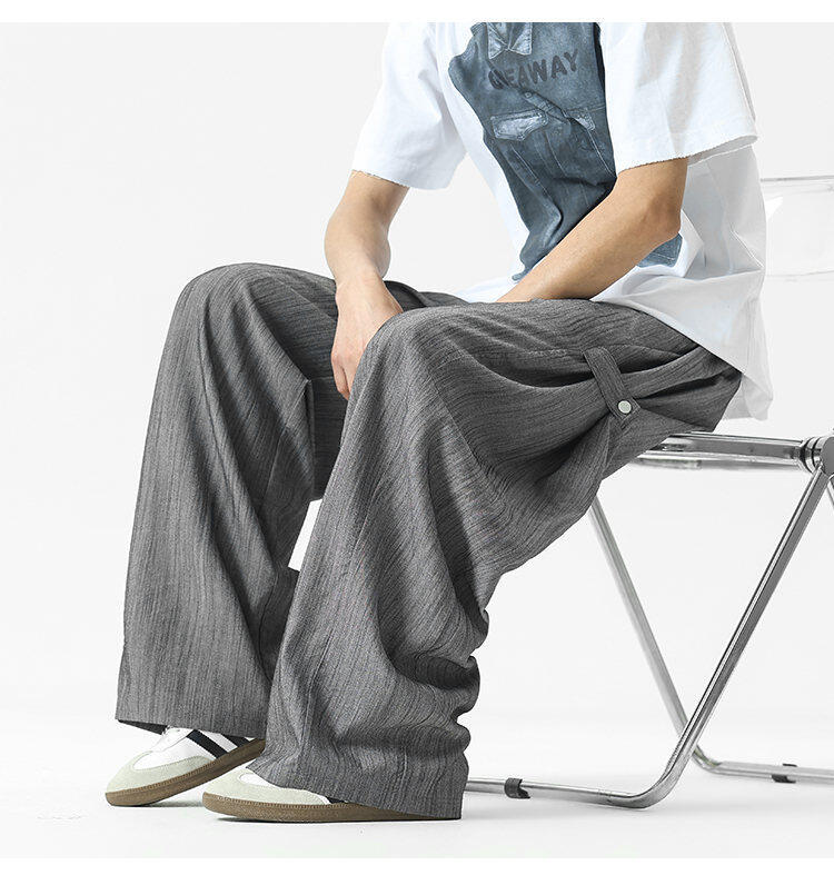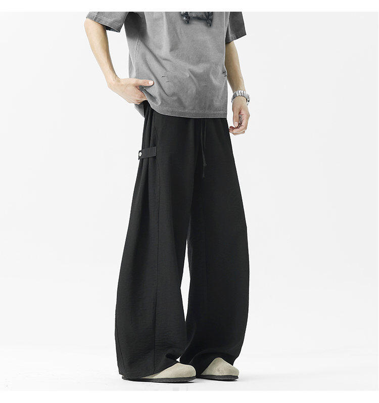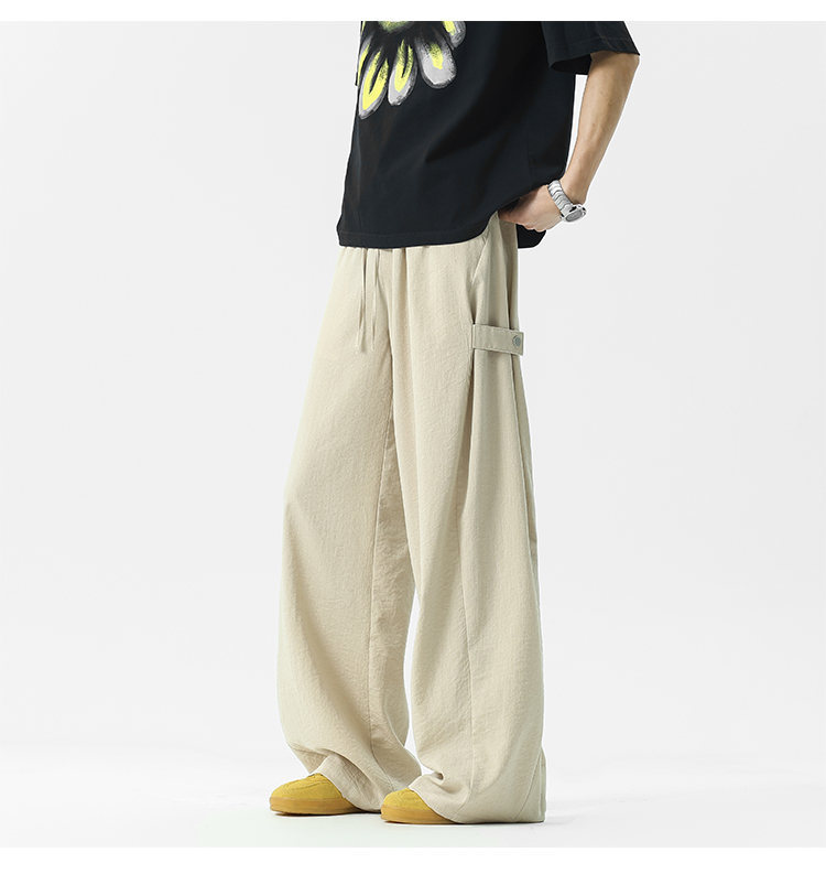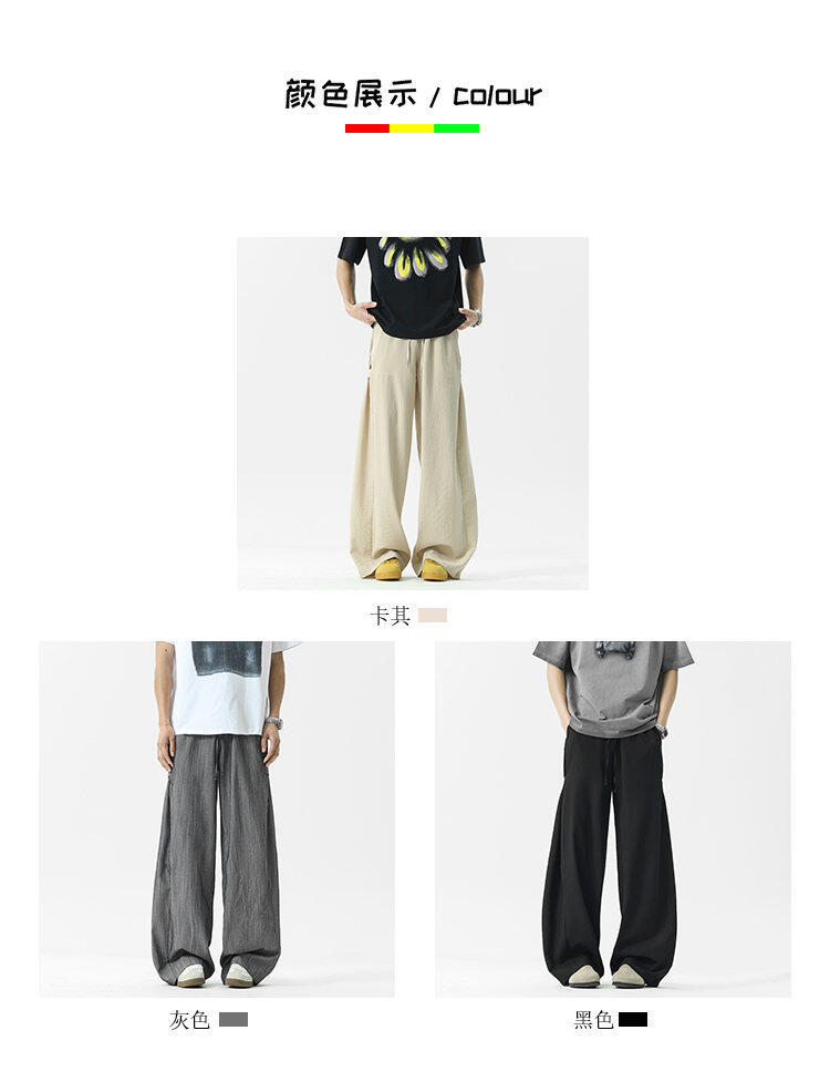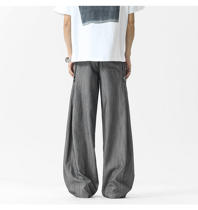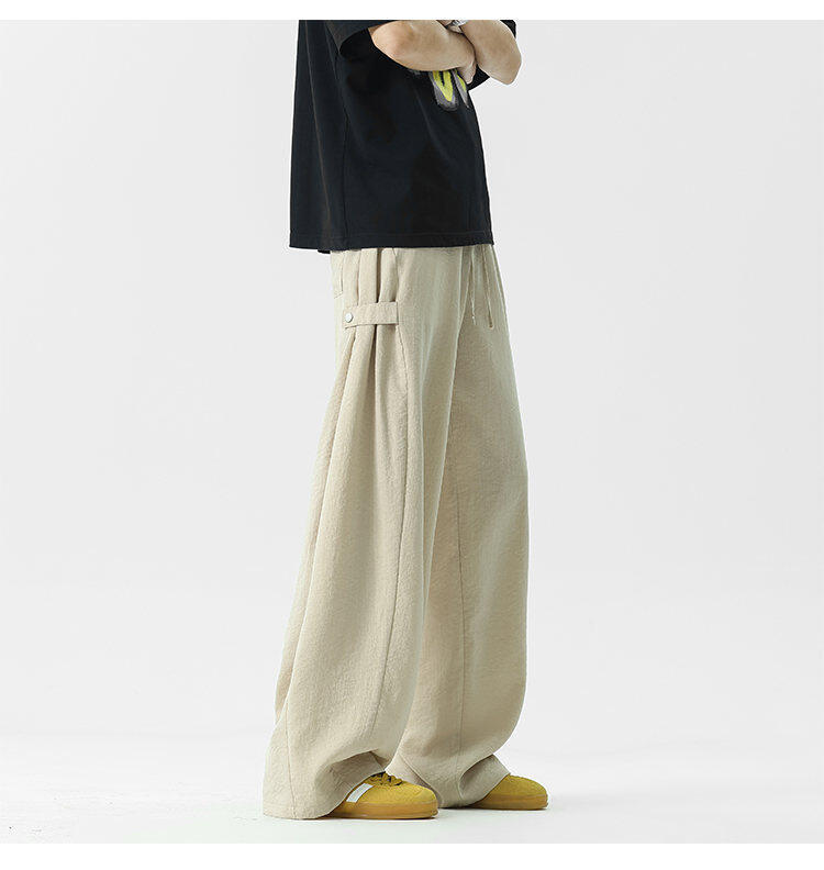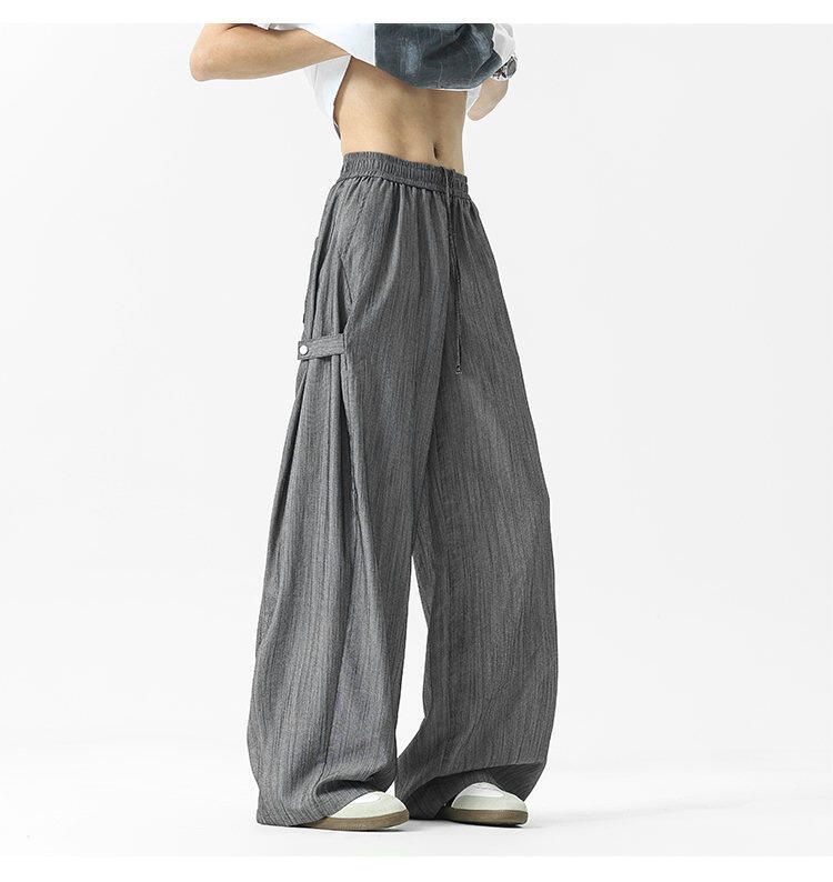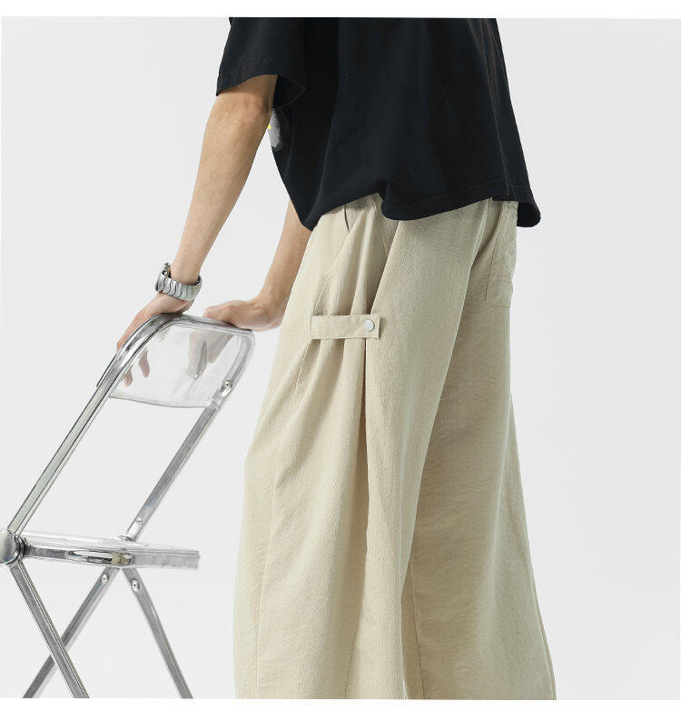 여름용 남성용 질감 있는 스트레이트 린넨 캐주얼 팬츠 얇은 야외 자외선 차단 드레이프 야마모토 팬츠 시원한 와이드 팬츠