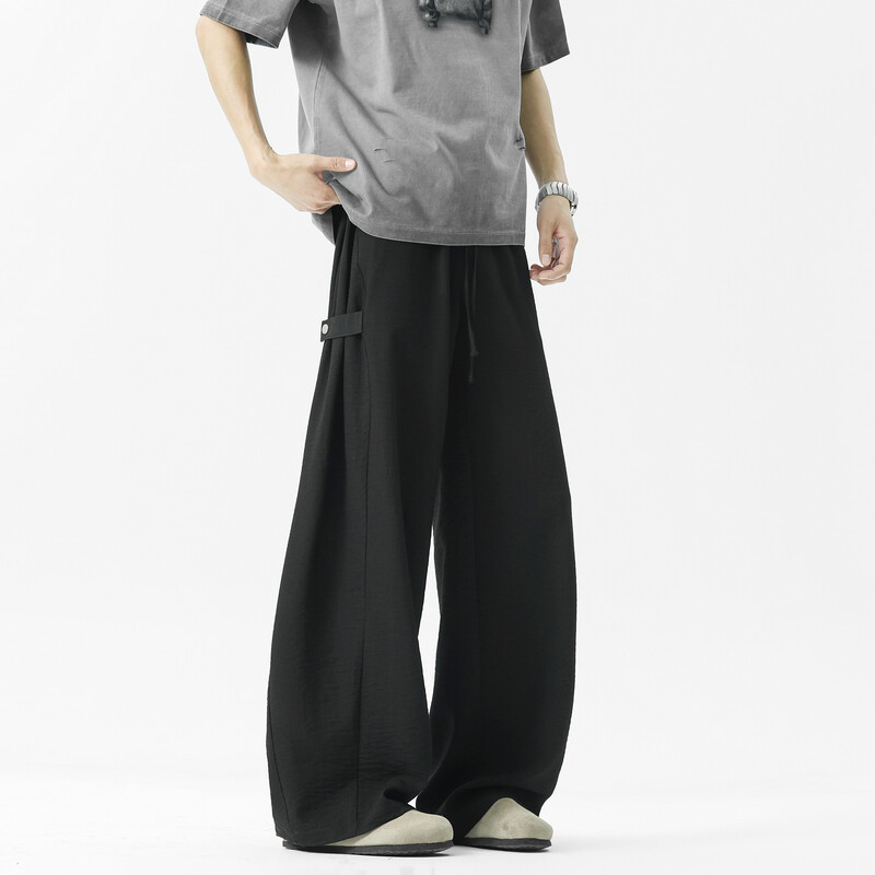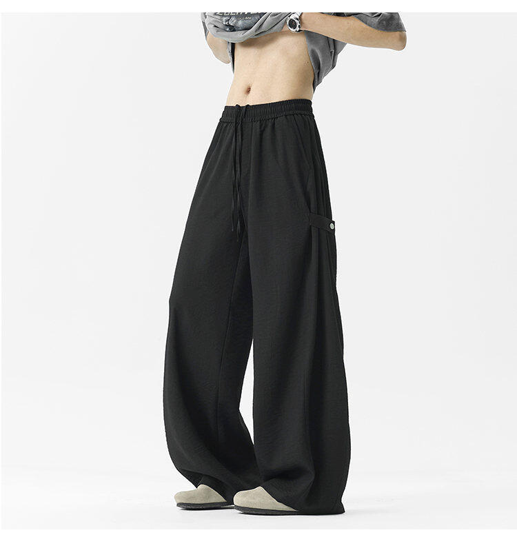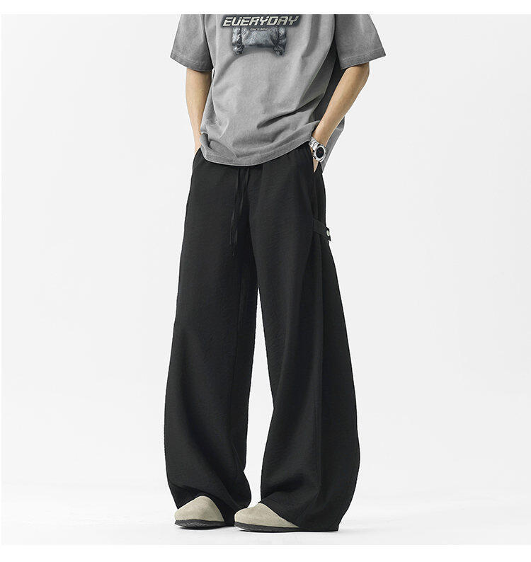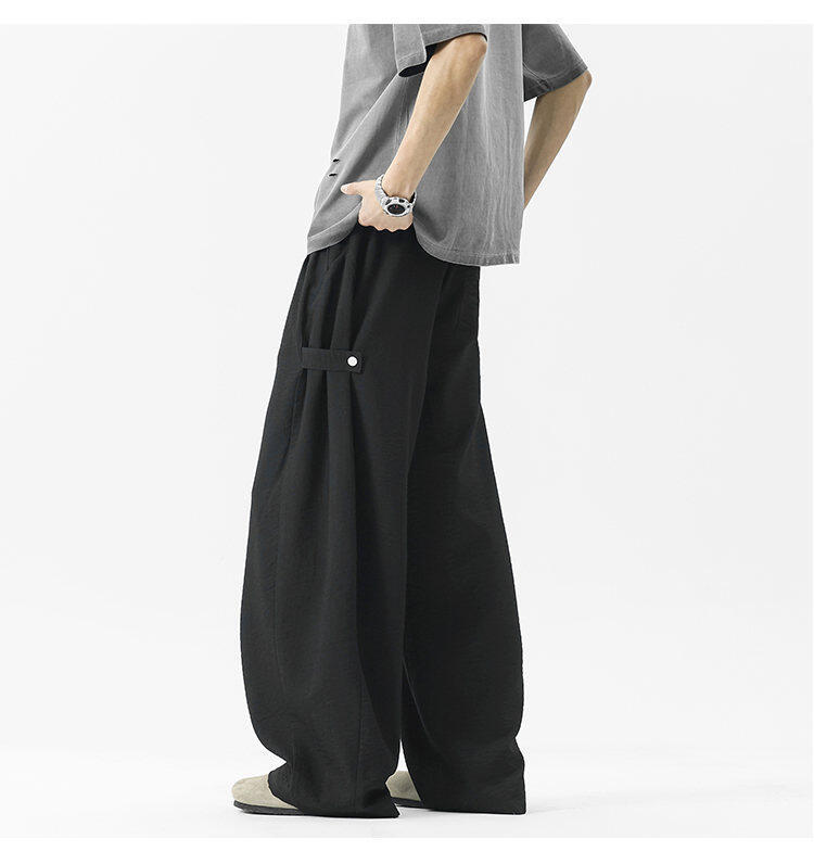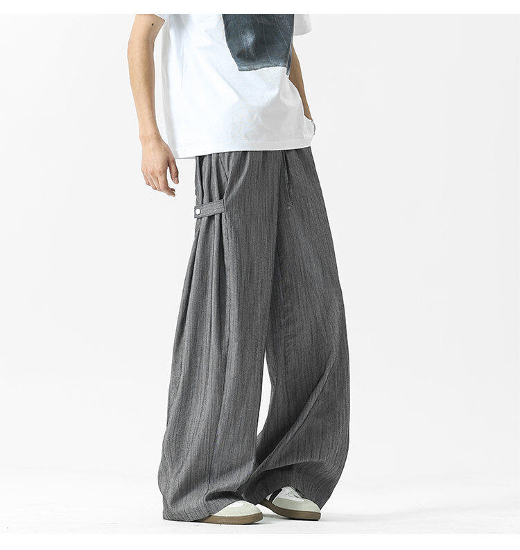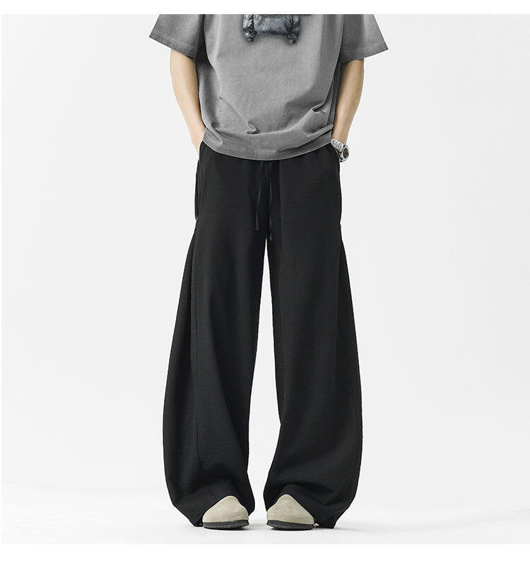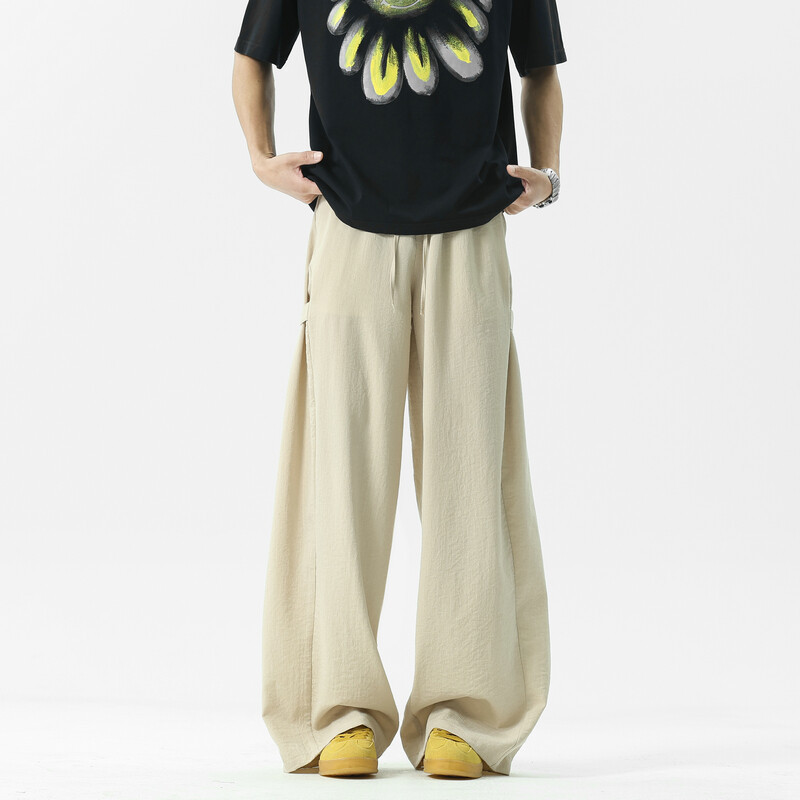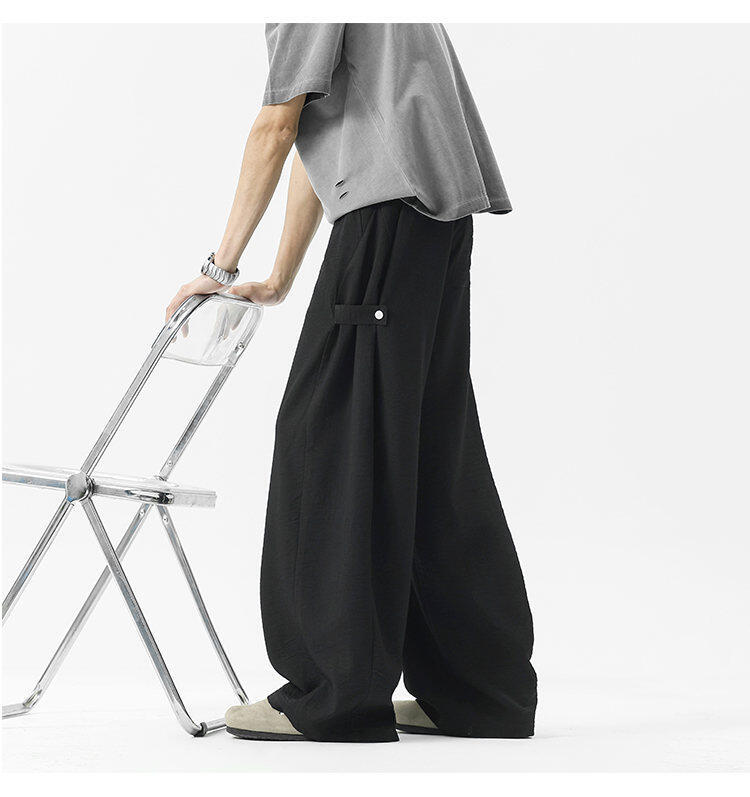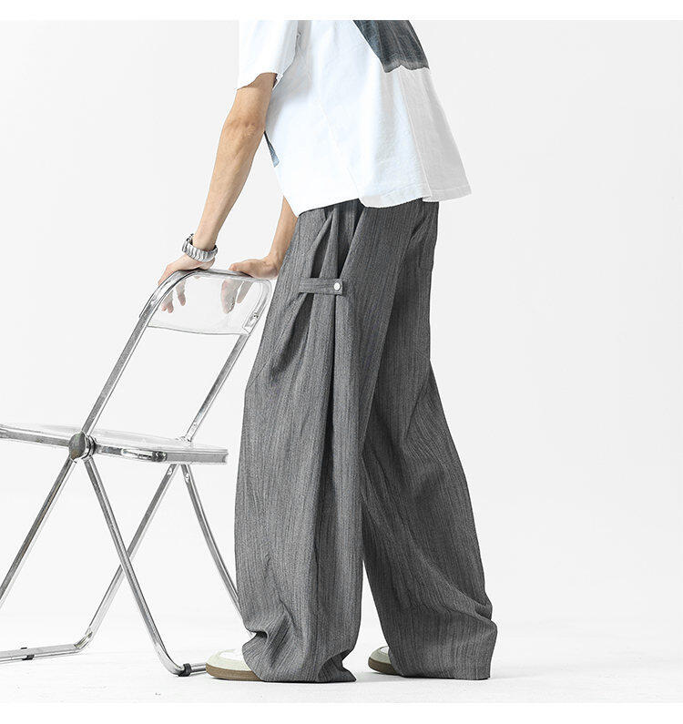 여름용 남성용 질감 있는 스트레이트 린넨 캐주얼 팬츠 얇은 야외 자외선 차단 드레이프 야마모토 팬츠 시원한 와이드 팬츠