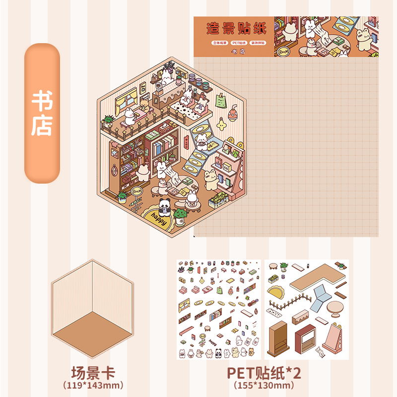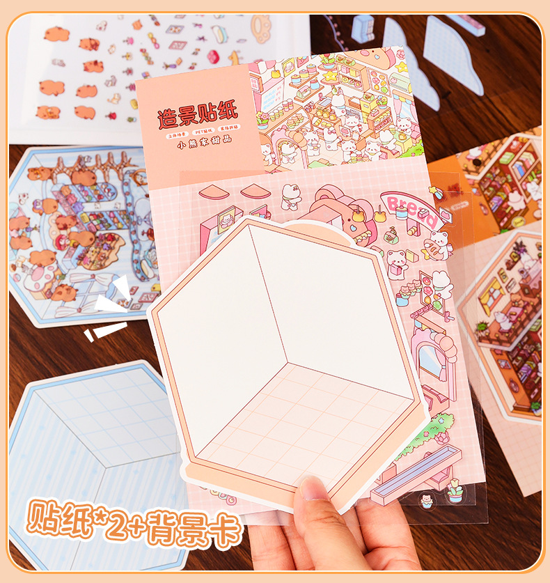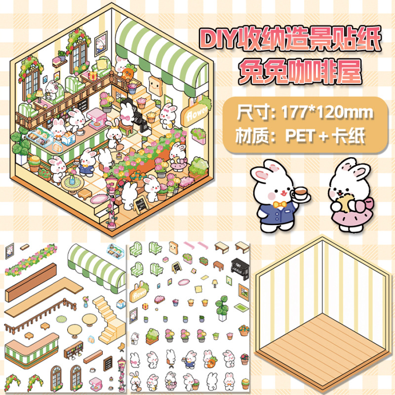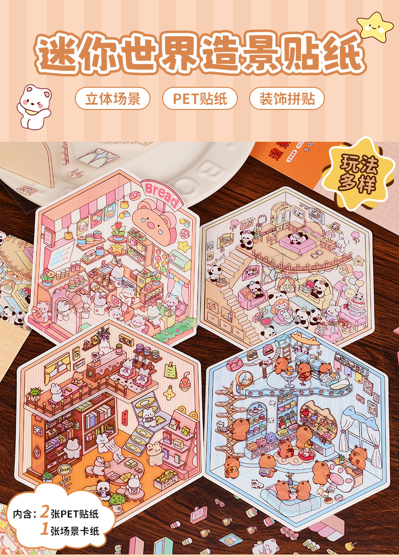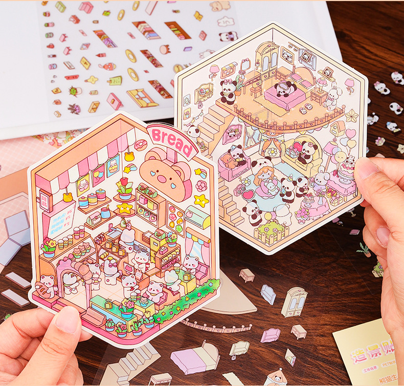 3D 조경 스티커 3 차원 미니어처 장면 스티커 귀여운 DIY 수동 감압 조경 손 계정 스티커 제작 지원