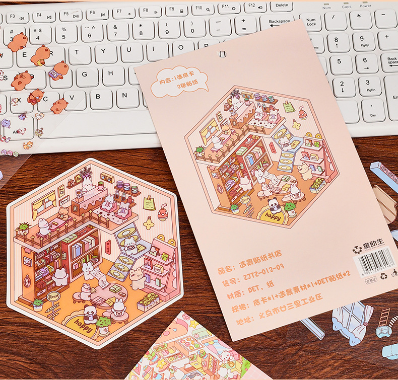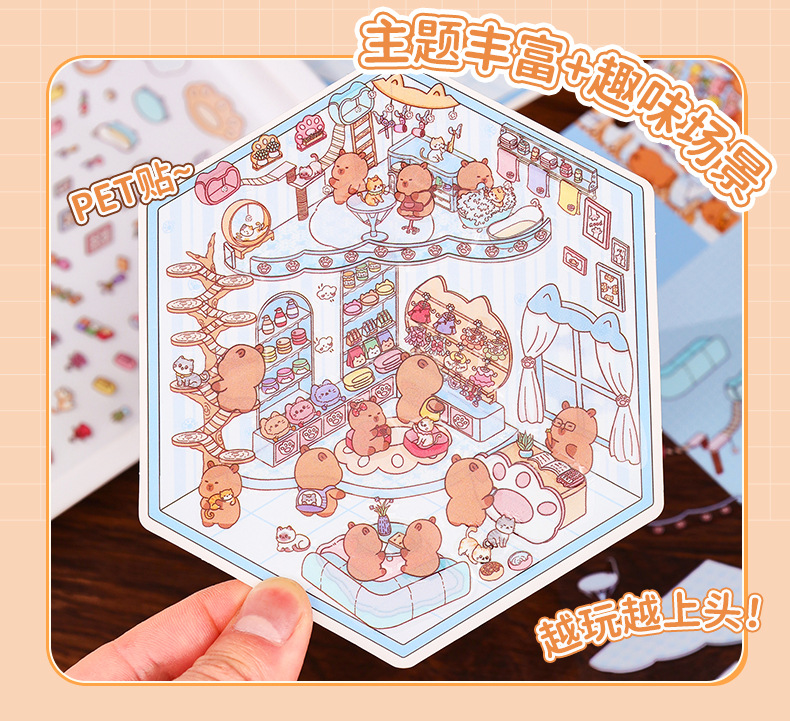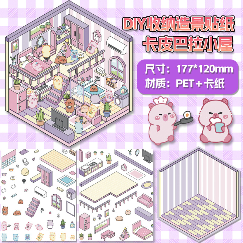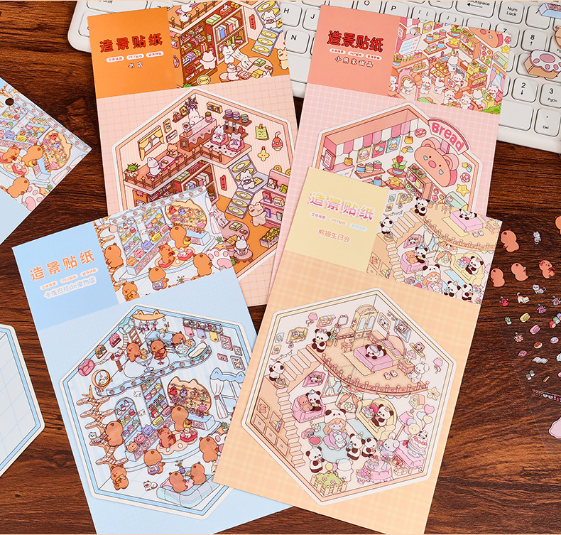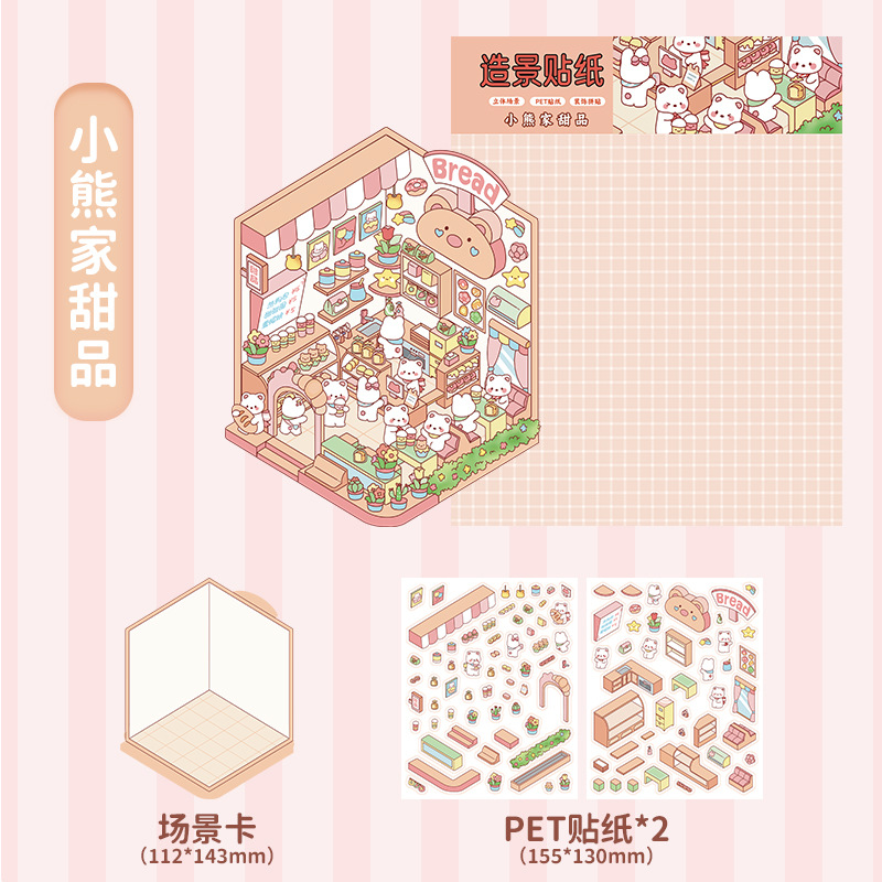 3D 조경 스티커 3 차원 미니어처 장면 스티커 귀여운 DIY 수동 감압 조경 손 계정 스티커 제작 지원