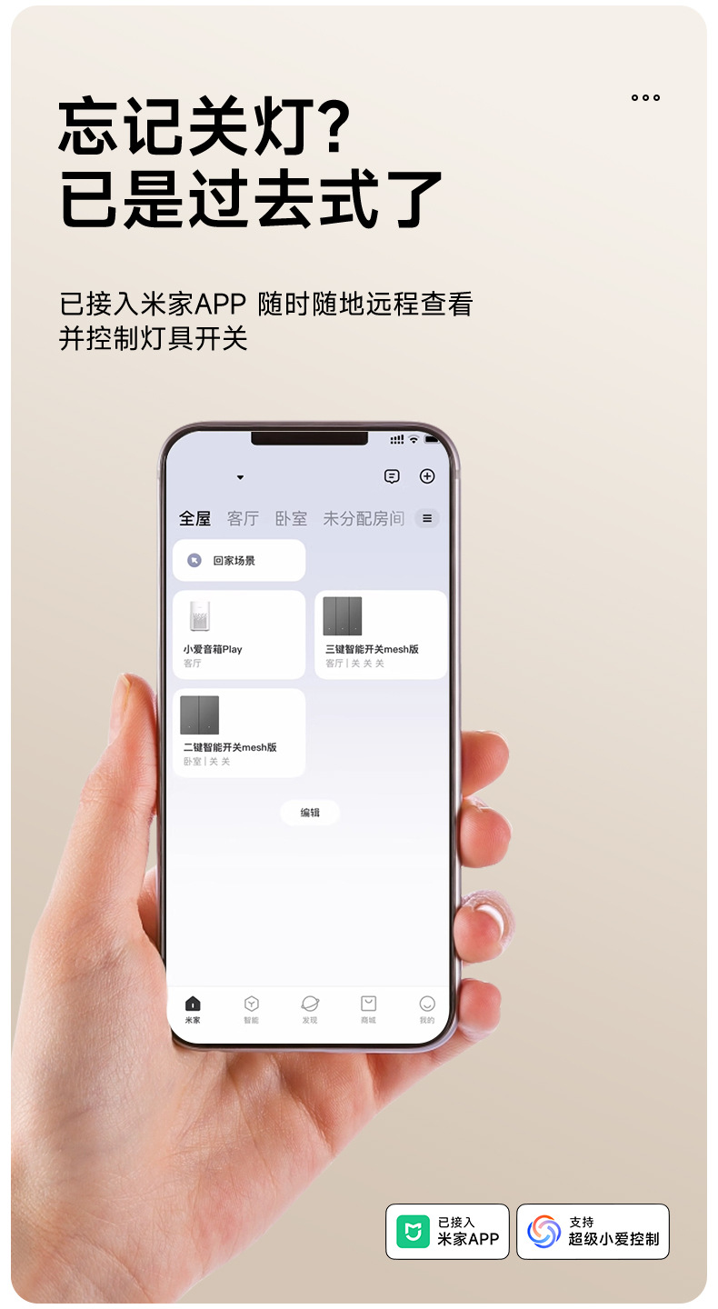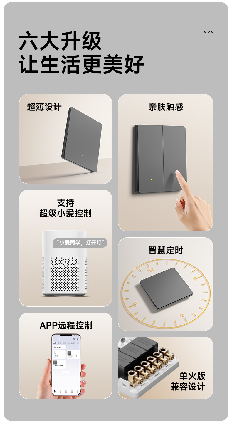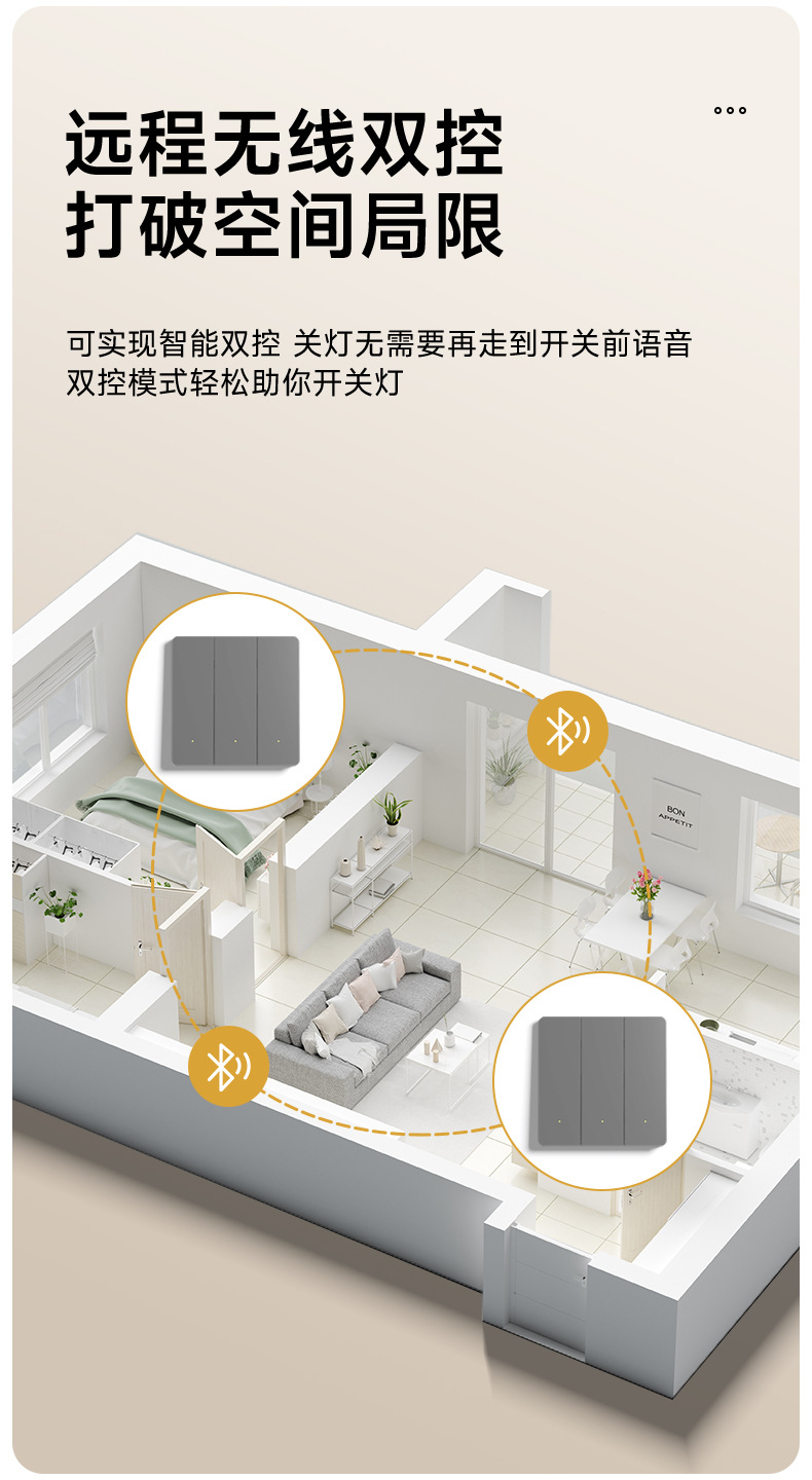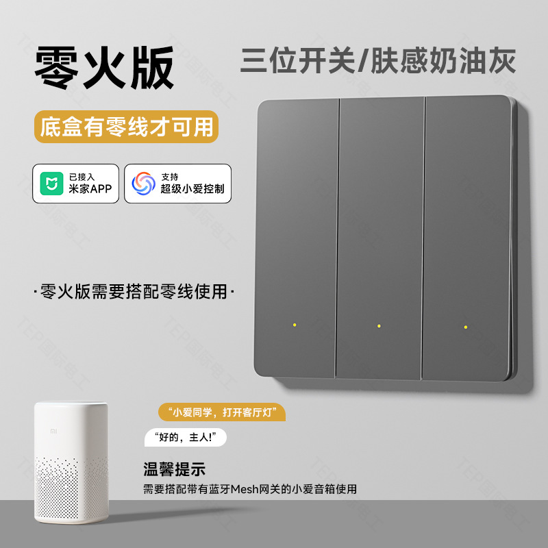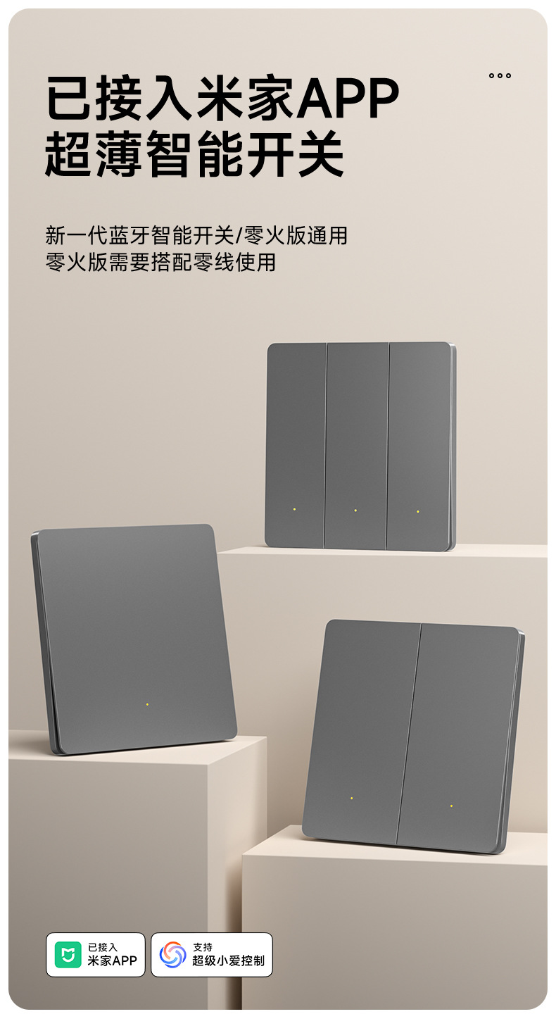 Mijia APP에 연결된 초박형 스마트 스위치 패널은 집 전체의 Bluetooth 음성 제어를 지원합니다. 듀얼 싱글 제로 파이어 버전