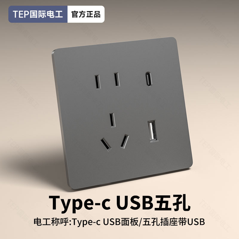 • [매트 그레이] USB+Type-C2.1A를 갖춘 5개의 구멍