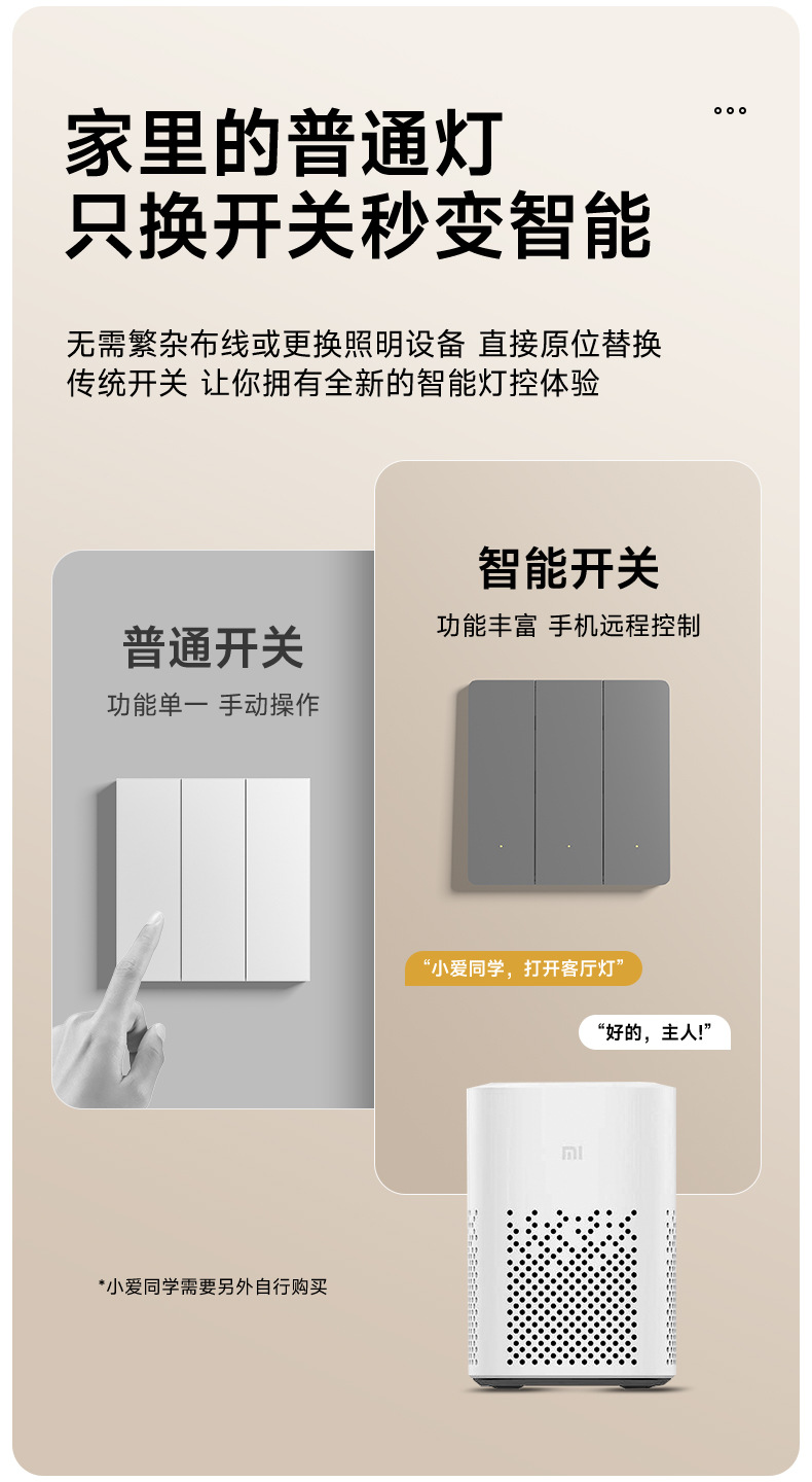 Mijia APP에 연결된 초박형 스마트 스위치 패널은 집 전체의 Bluetooth 음성 제어를 지원합니다. 듀얼 싱글 제로 파이어 버전스토어 가기