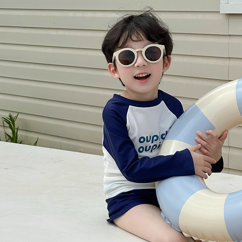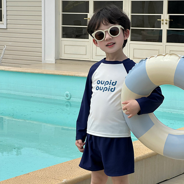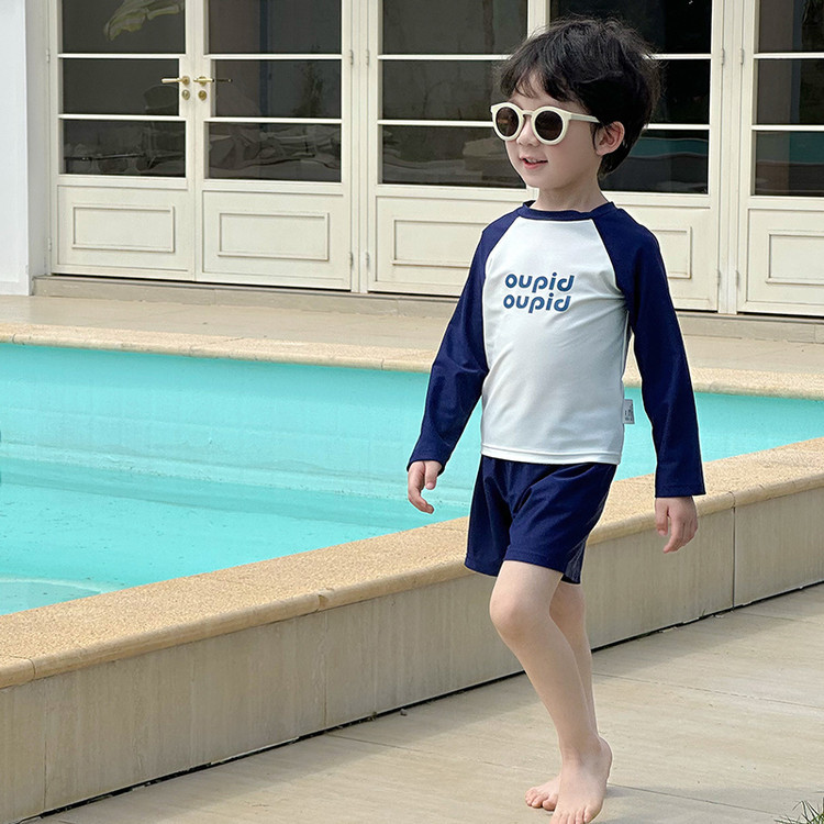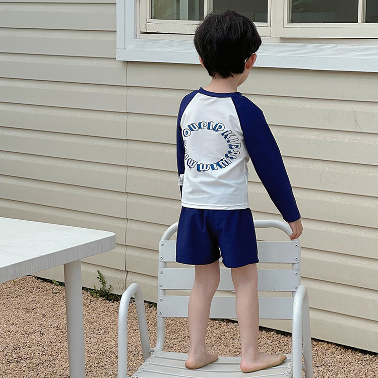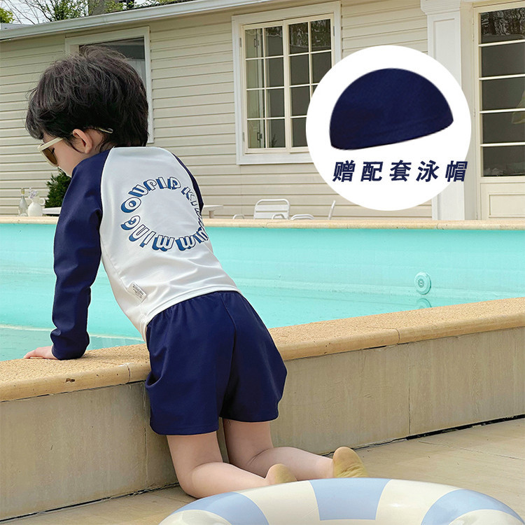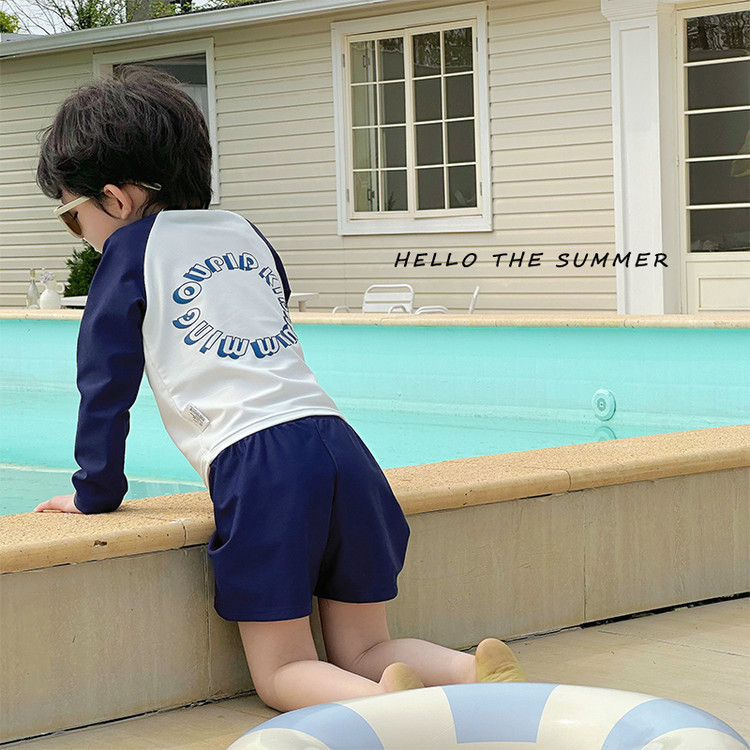 새로운 어린이 수영복 소년 스플릿 긴팔 자외선 차단 수영복 속건성 슈트 서양식 해변 온천 휴가 수영복스토어 가기