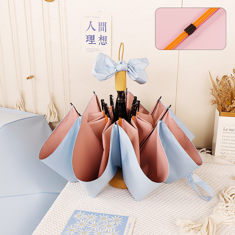 여성의 ISN 바람을위한 높은 색 가치 접착제 자동 태양 우산 3 배 우산 햇빛과 비 이중 목적 자외선 차양 우산