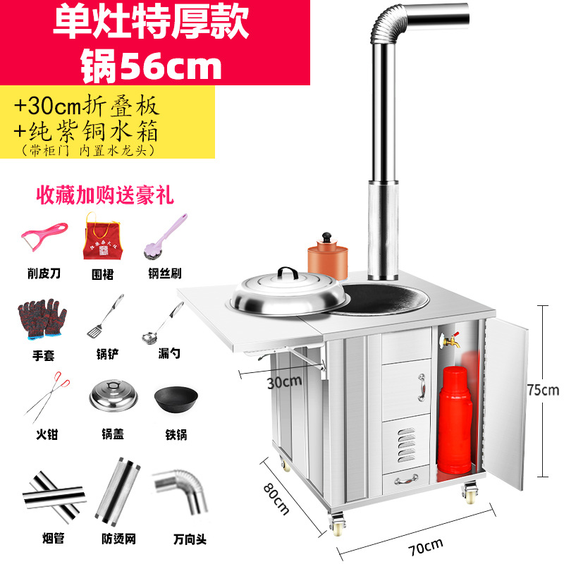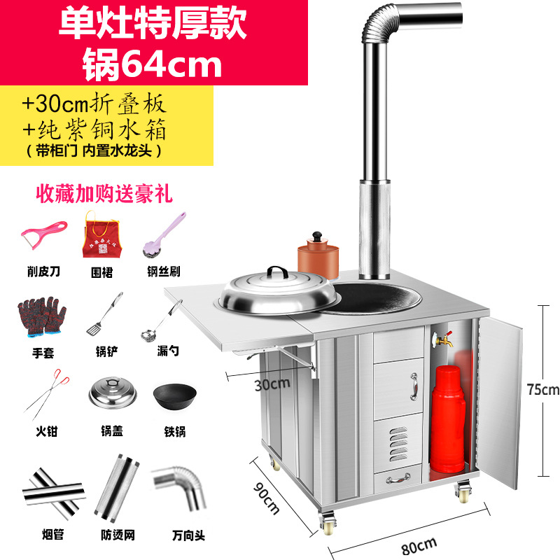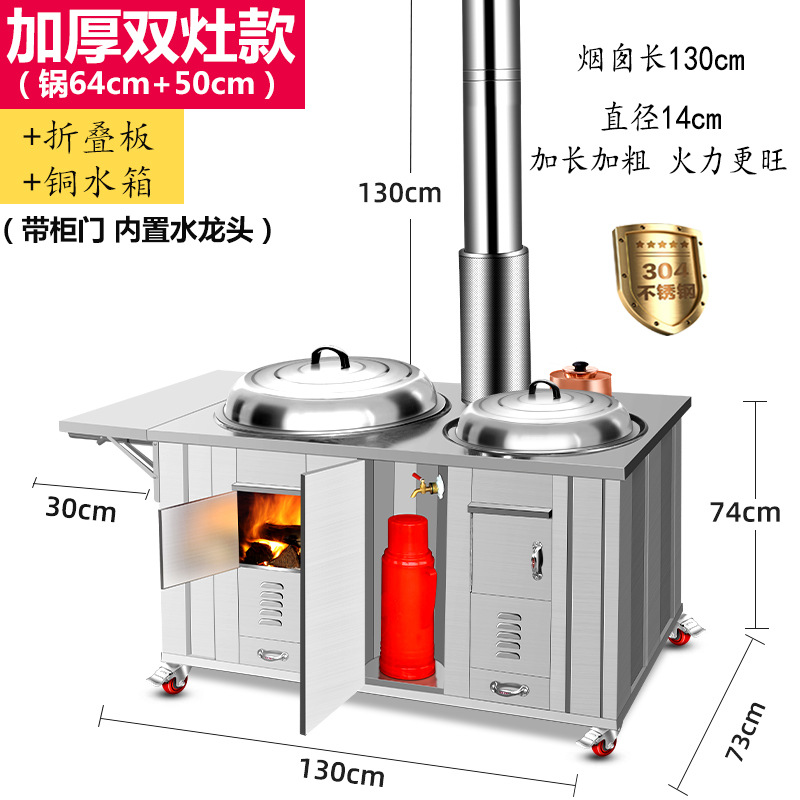 • 304 두꺼운 64+50cm 이중 스토브+플레이트+캐비닛 도어