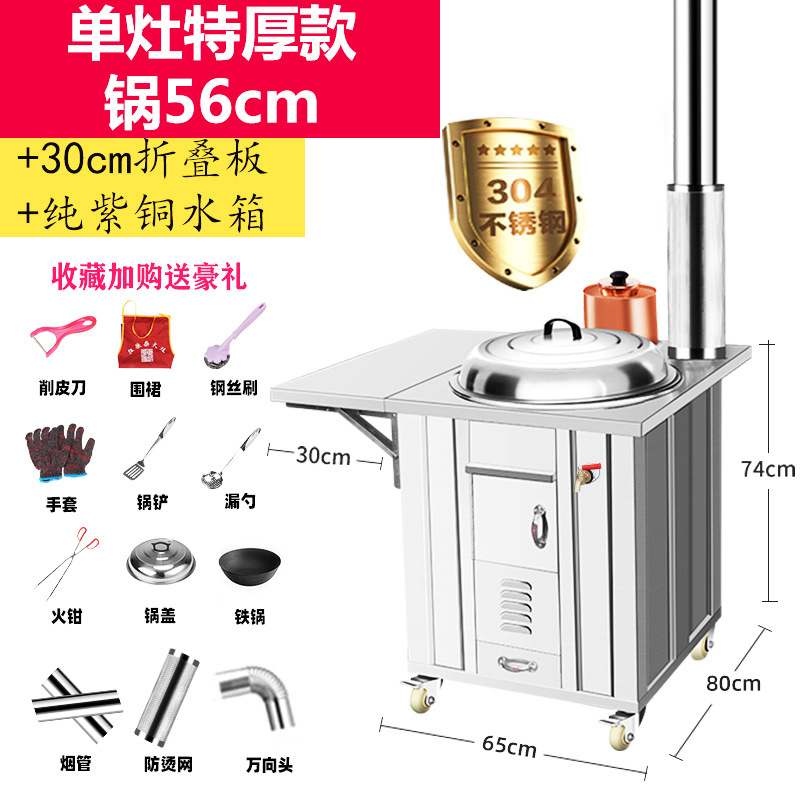 • 두꺼운 56cm 단일 스토브 + 측면 패널 + 구리 물 탱크