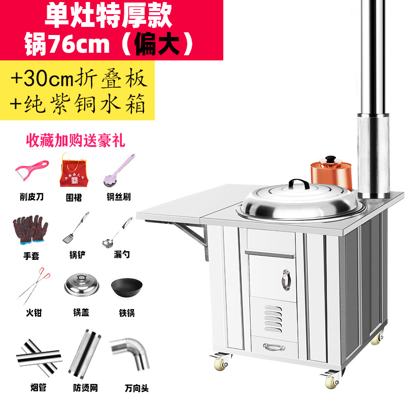 • 두꺼운 76cm 단일 스토브 + 측면 패널 + 구리 물 탱크