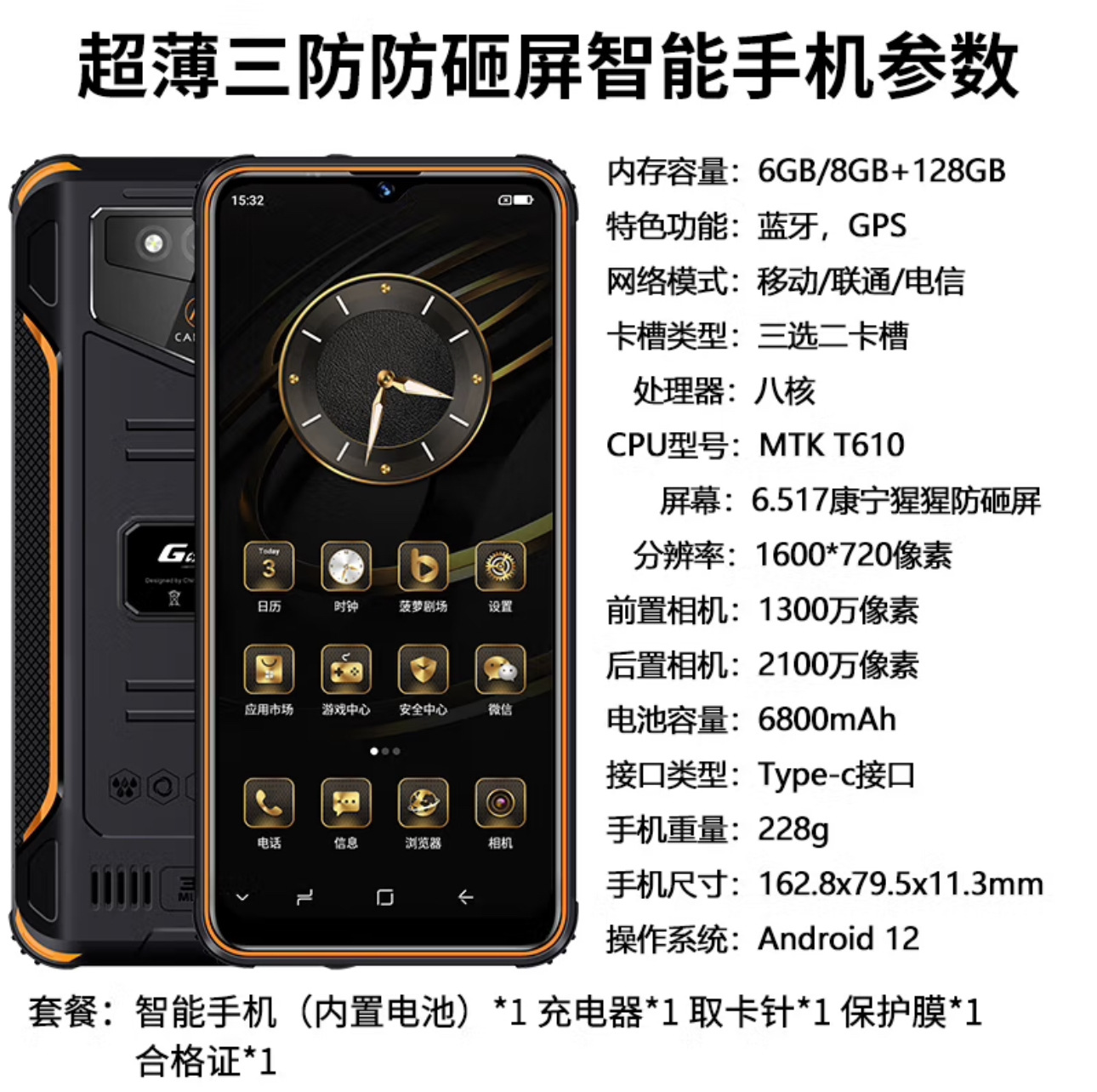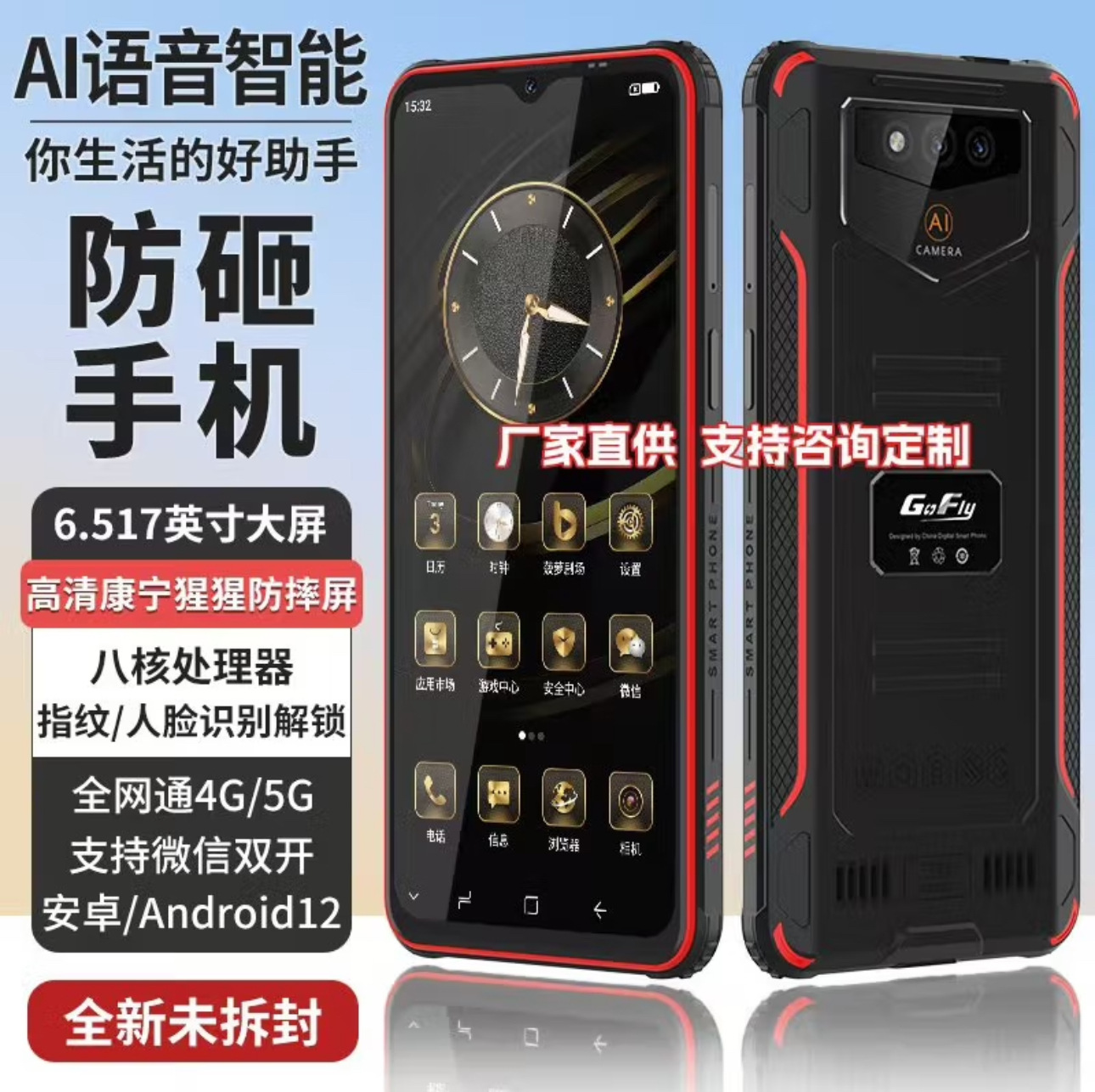 신형 아웃도어 삼중 보호 휴대폰 6.5인치 내충격 4/5G 풀 네트워크 지원 APK 소프트웨어 샤오쿠 AI 어시스턴트 퀄컴 옥타코어스토어 가기