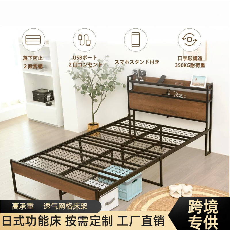 국경 USB 소켓 더블 레이어 상단 캐비닛 단철 침대 프레임 세미 더블 침대 침대 스토리지 프레임 견고하고 내구성이 뛰어난