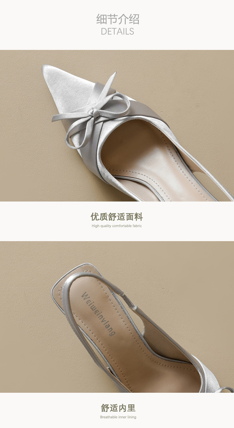 Weiwei Girl 338-6 프랑스 아름다운 뾰족한 활 발가락 샌들 여성용 피곤하지 않은 발 얇은 굽 하이힐 여성용 신발스토어 가기