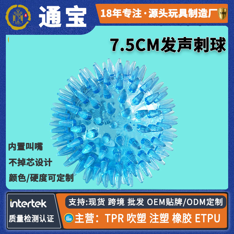 7.5CMTPR 강아지 스파이크볼, 애완동물 스파이크볼 장난감, 소리나는 스파이크볼, 치아갈이 및 치아세척, 던지기 놀이, 지루함 해소