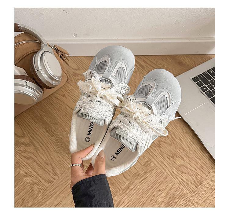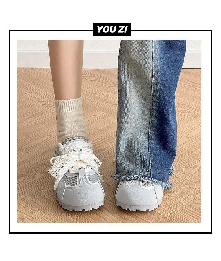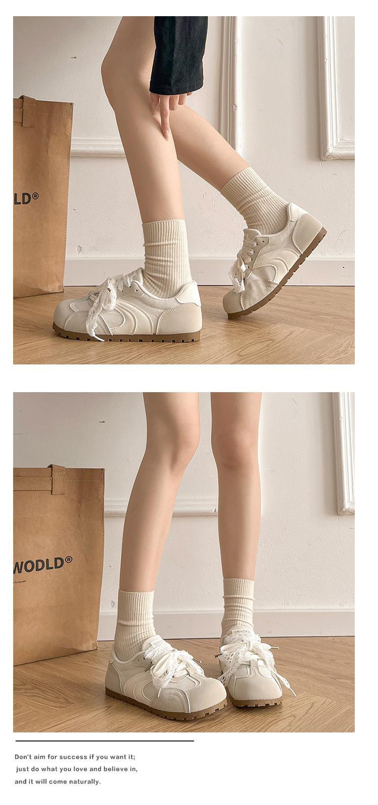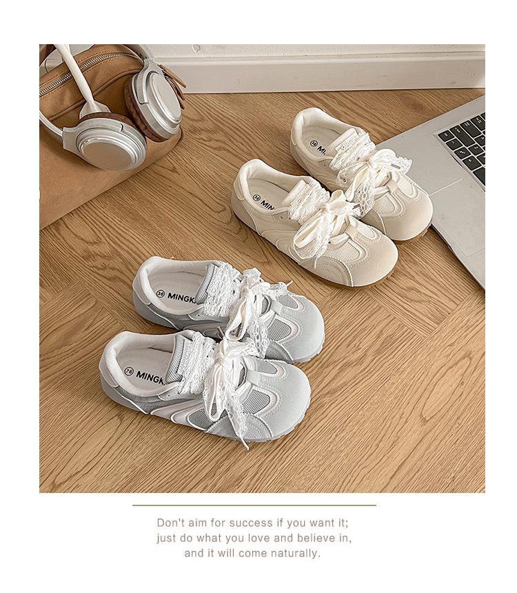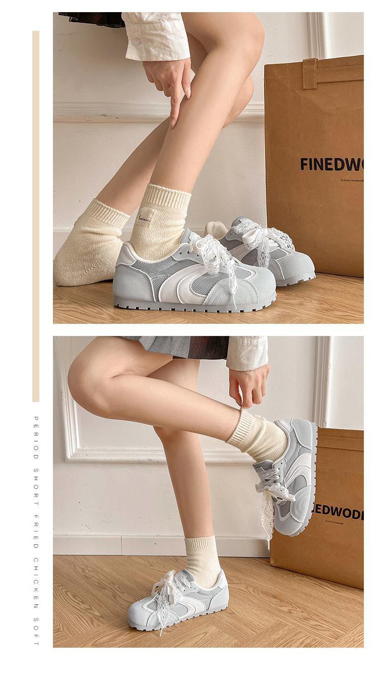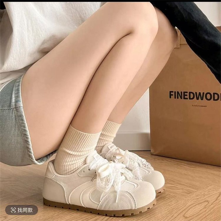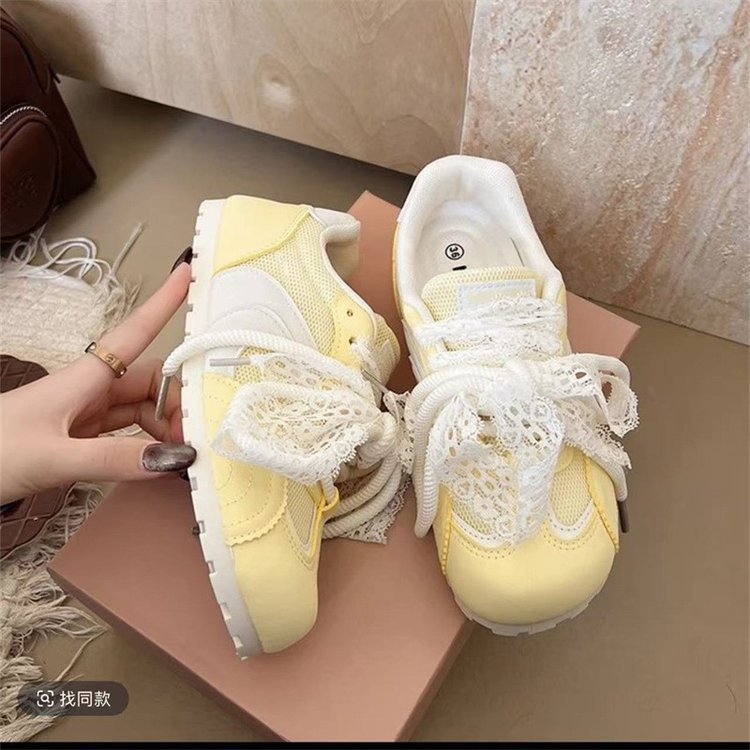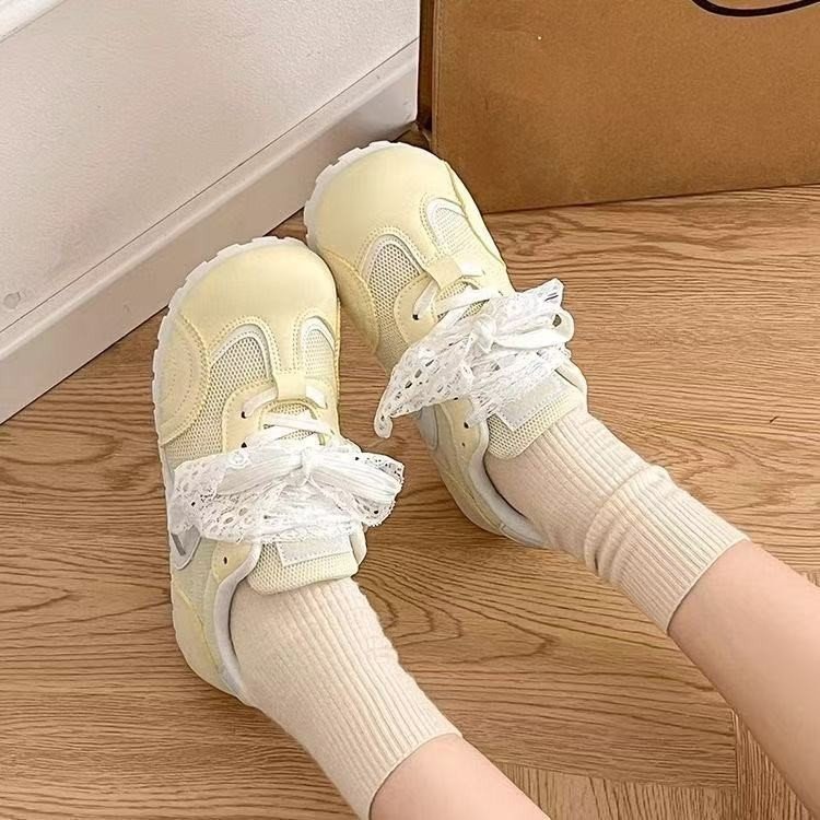 발레 스타일 틈새 레이스 트레이닝 신발 여성 노란색 봄과 여름 플랫 스포츠 2025 새로운 통기성 캐주얼 스니커즈스토어 가기