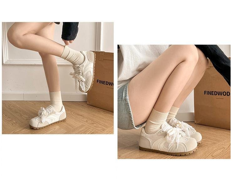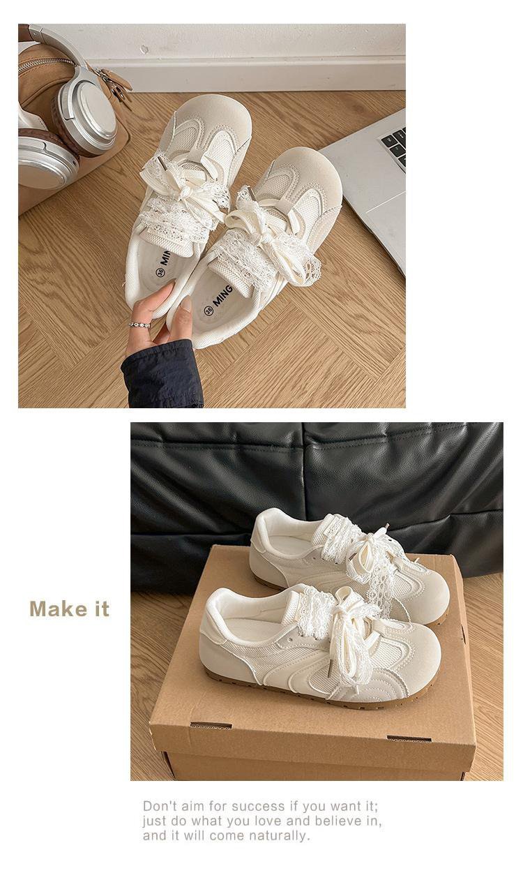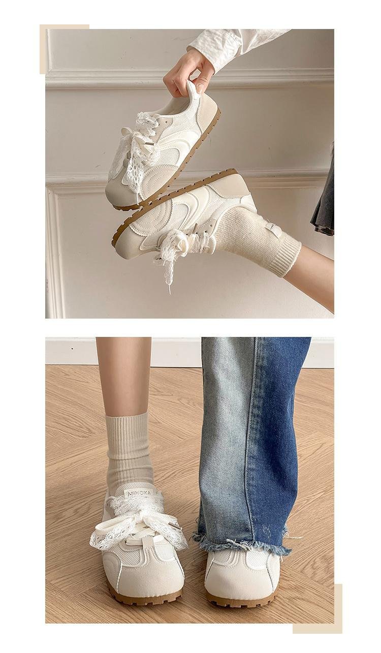 발레 스타일 틈새 레이스 트레이닝 신발 여성 노란색 봄과 여름 플랫 스포츠 2025 새로운 통기성 캐주얼 스니커즈