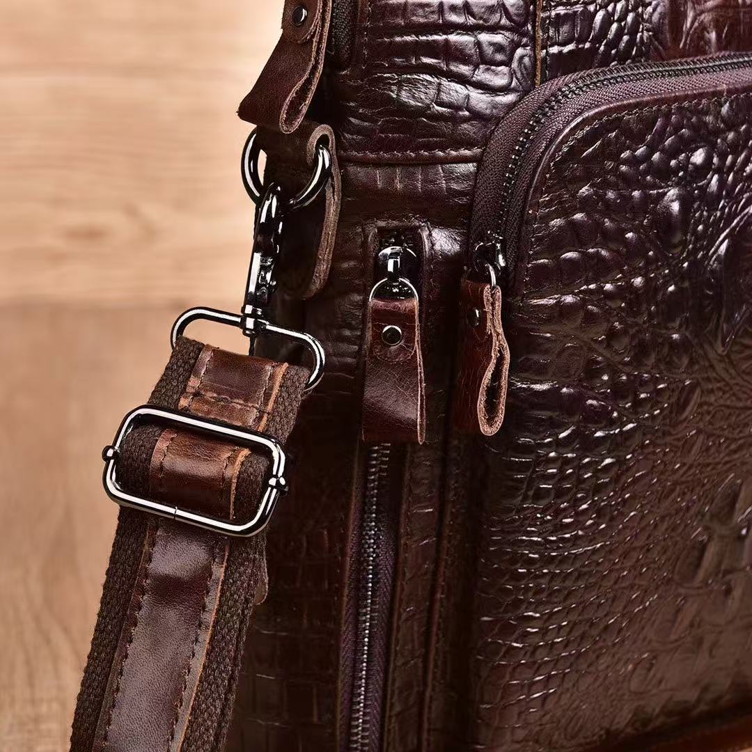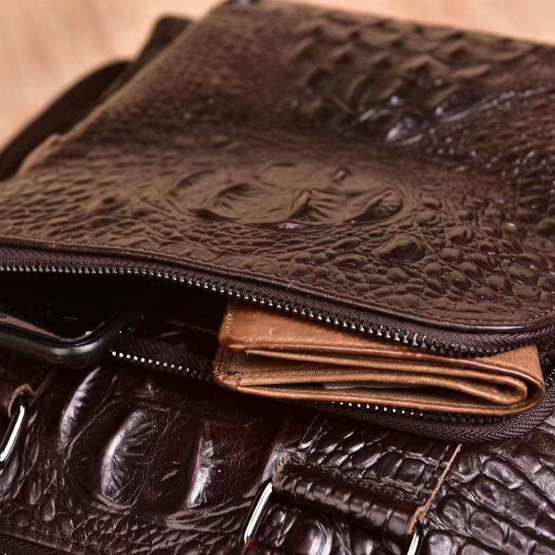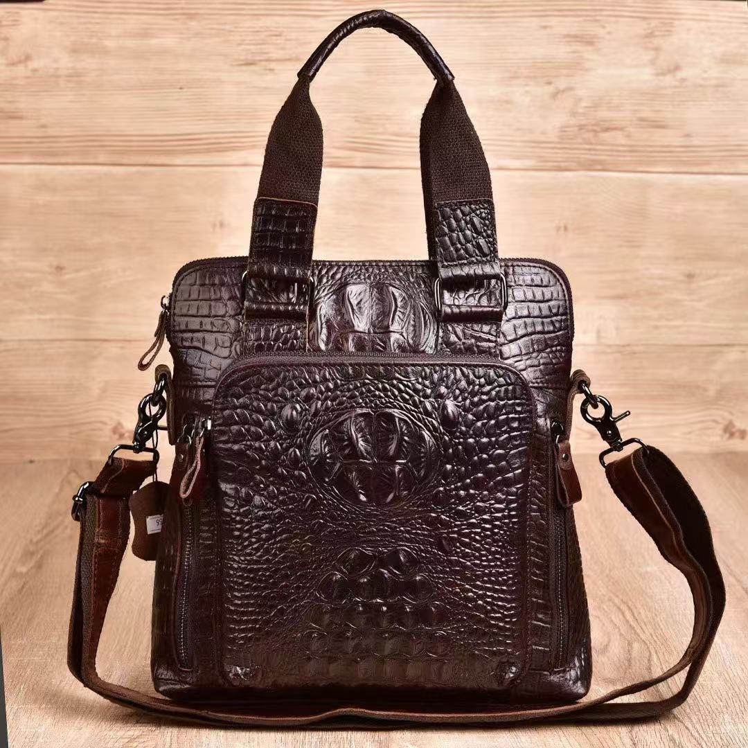악어 무늬 남성용 핸드백 천연 가죽 남성 가방 크로스백 일층 소가죽 서류 가방 세로형 비즈니스 숄더백