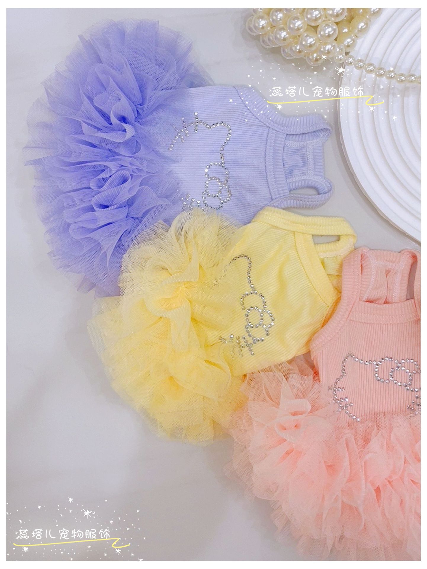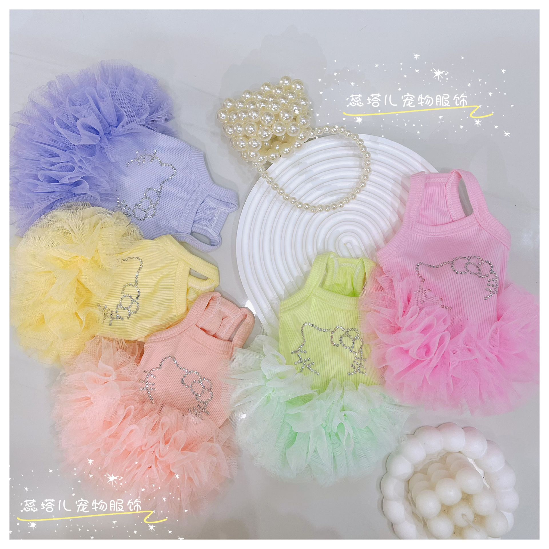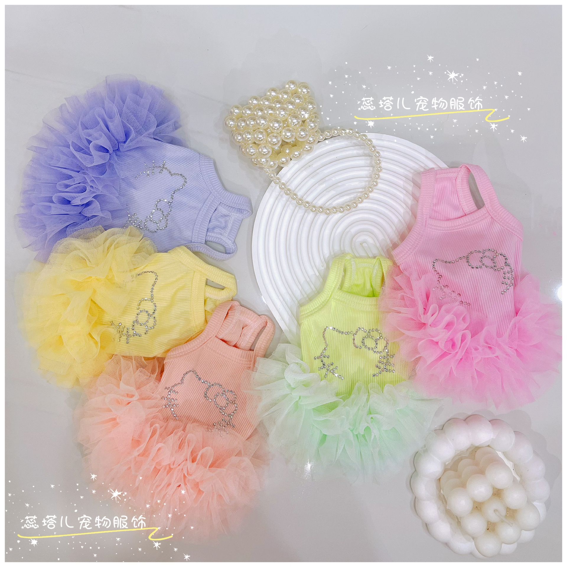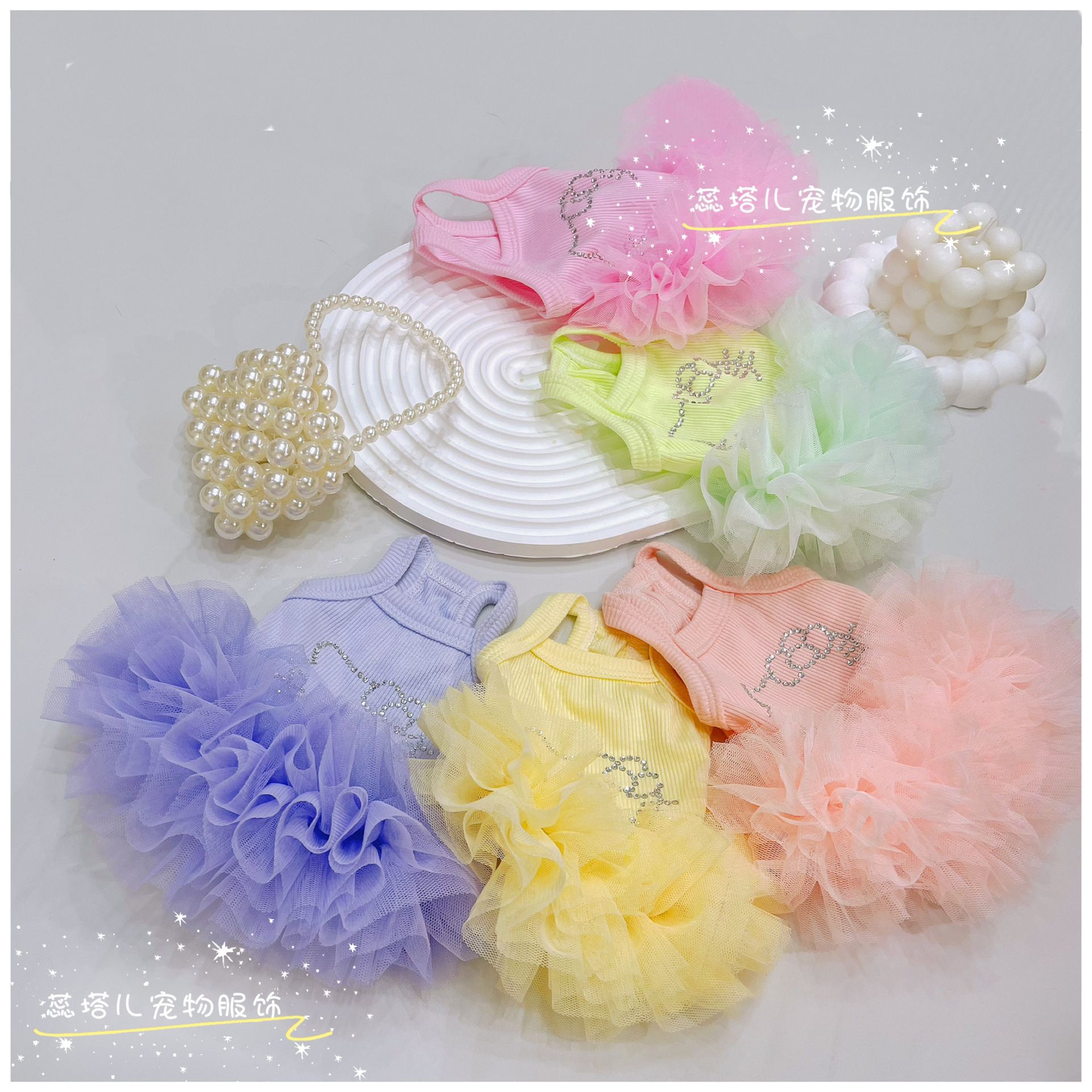 개 서스펜더 스커트 쿨 터치 얇은 몰타 요크셔 공주 발레 퍼프 스커트 작은 개 거즈 스커트스토어 가기