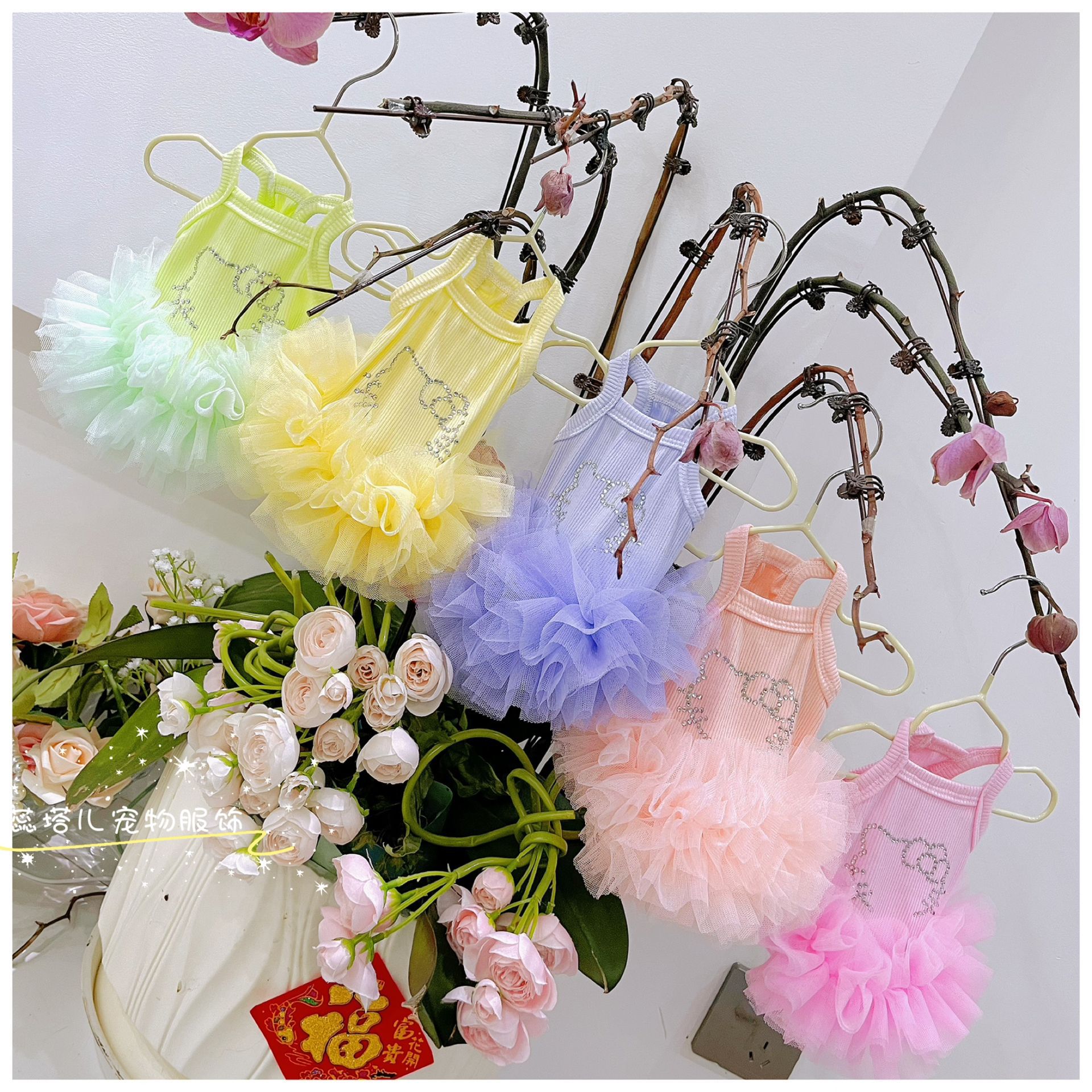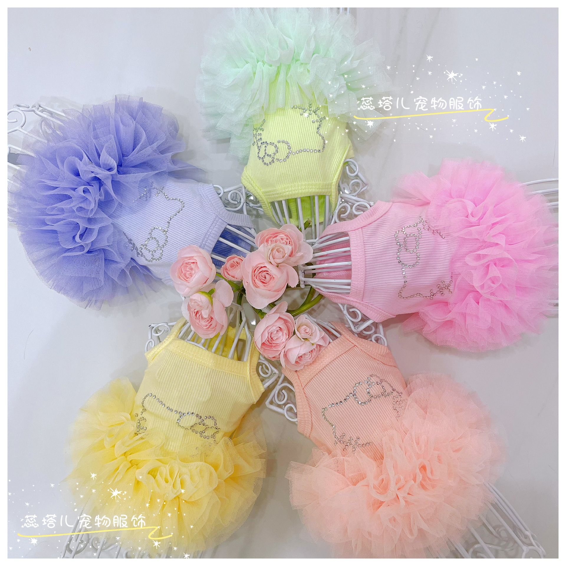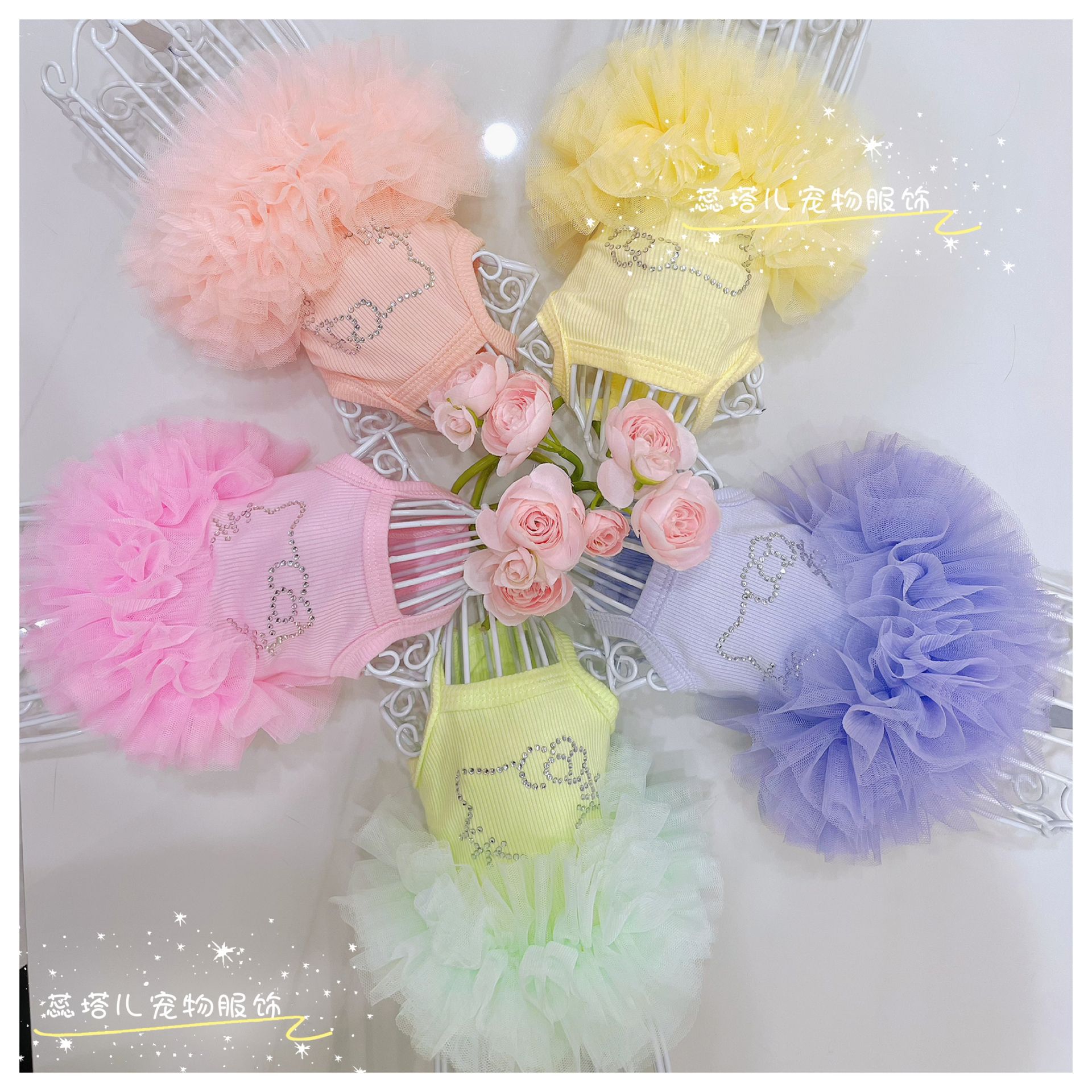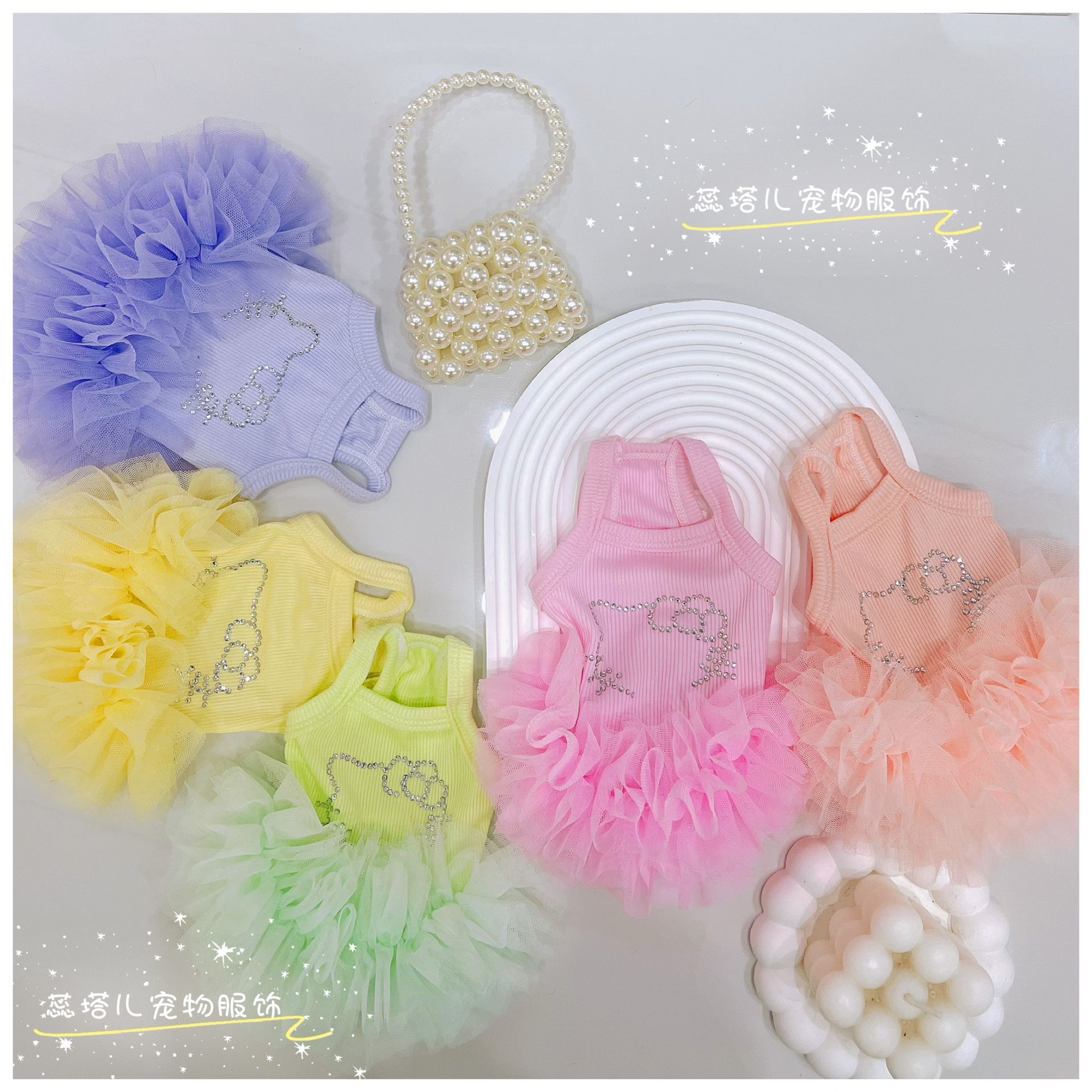 개 서스펜더 스커트 쿨 터치 얇은 몰타 요크셔 공주 발레 퍼프 스커트 작은 개 거즈 스커트스토어 가기