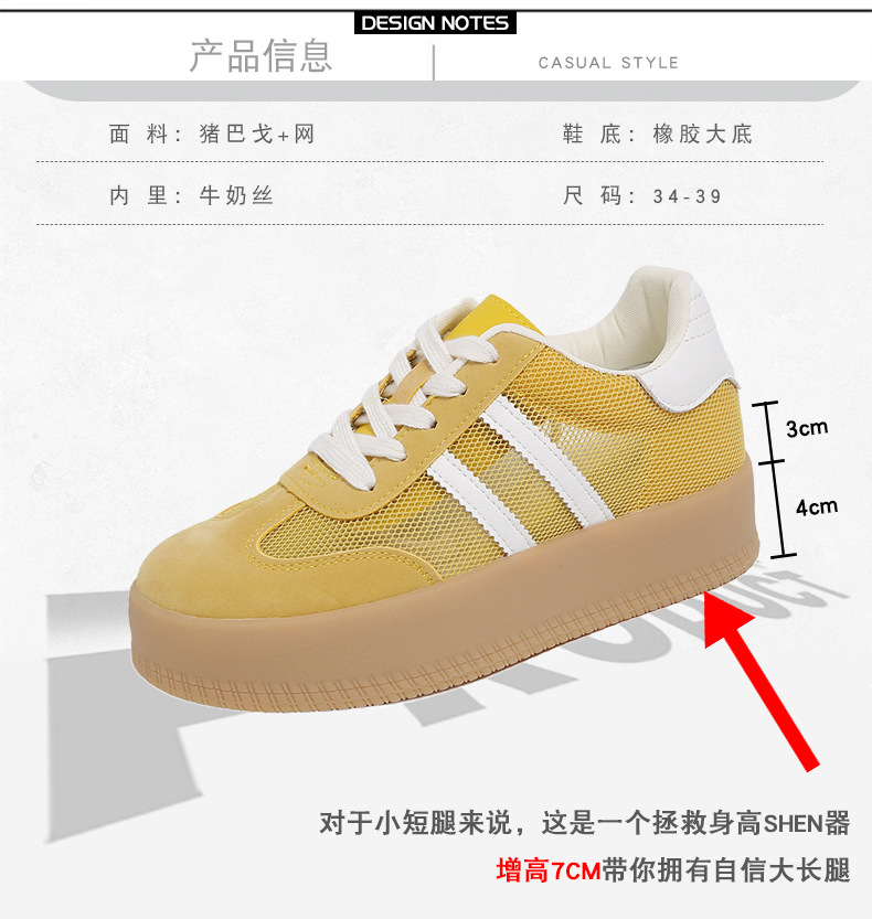 보이지 않는 내부 높이 증가 7cm De 훈련 신발 짧은 음악 여성 신발 2025 봄 새로운 포레스트 검프 신발 슈퍼 파이어 캐주얼 신발스토어 가기