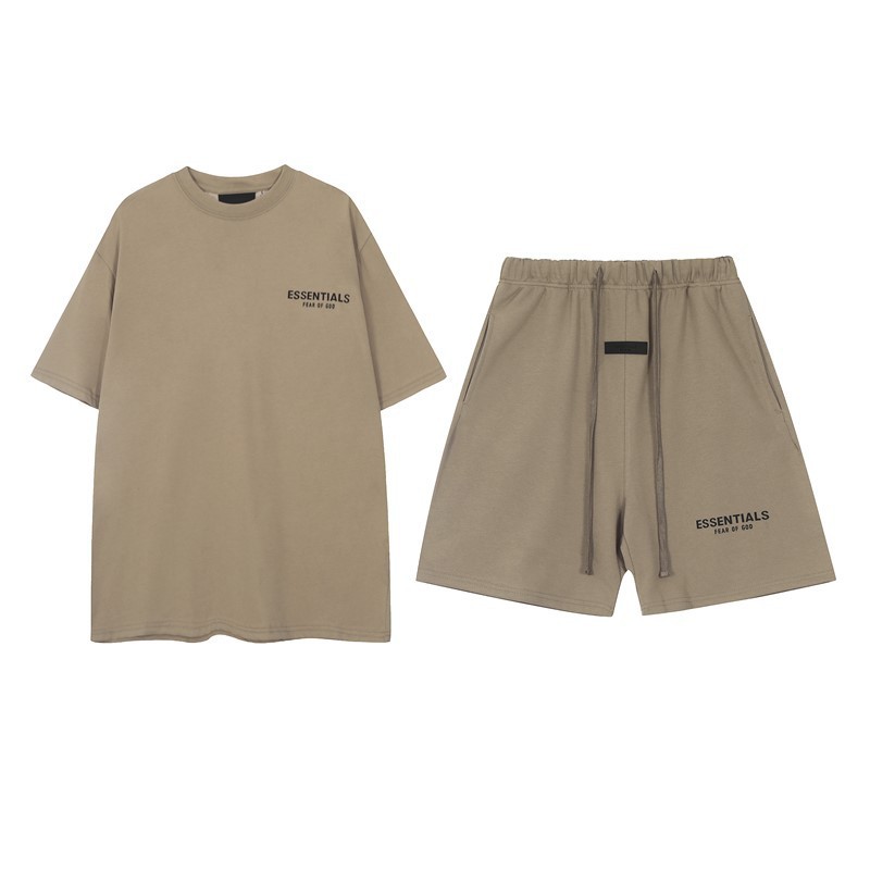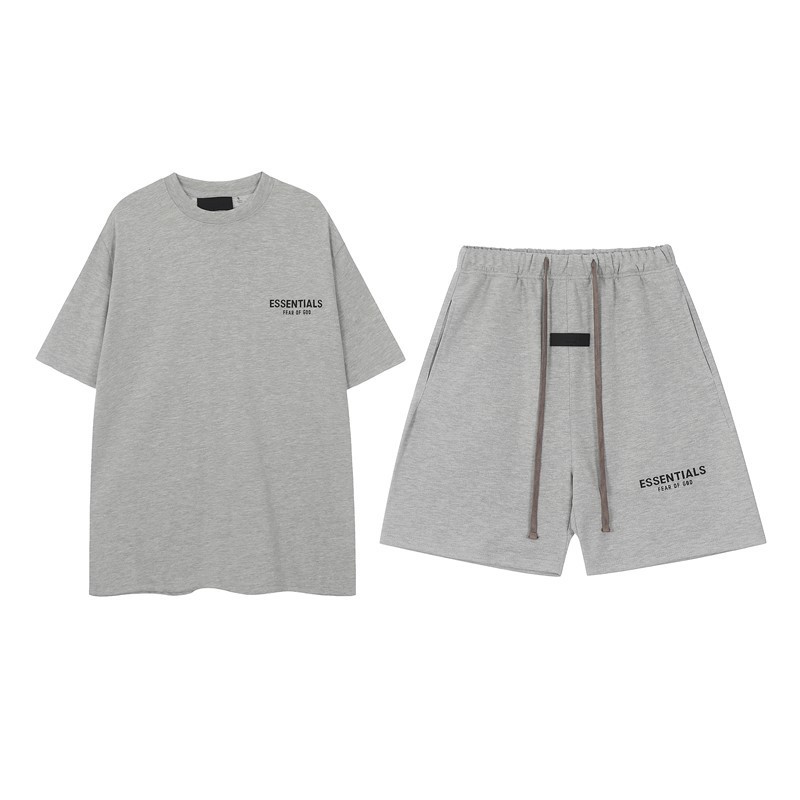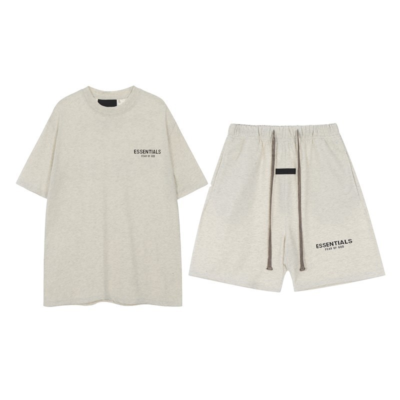 FOG 복합 라인 ESSENTIALS 입체 실리콘 문자 플록 반팔 하이 스트리트 캐주얼 스포츠 반바지 남성과 여성 트렌드스토어 가기