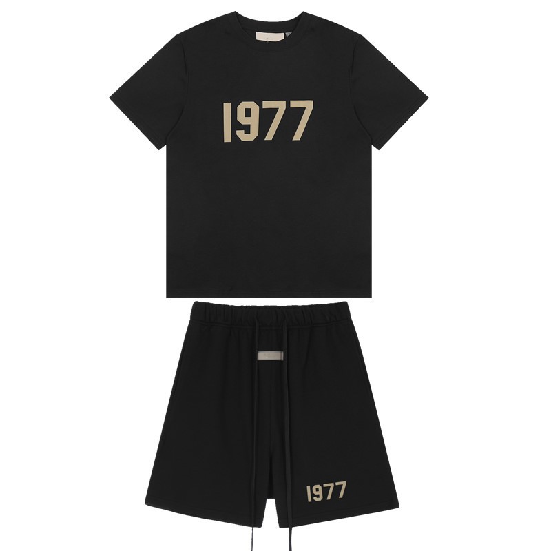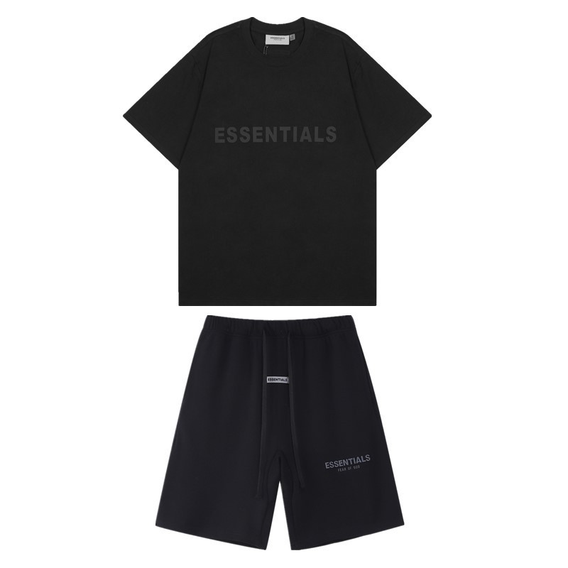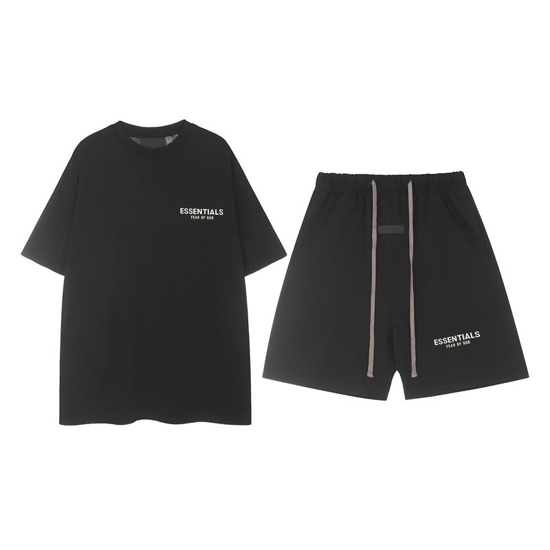 FOG 복합 라인 ESSENTIALS 입체 실리콘 문자 플록 반팔 하이 스트리트 캐주얼 스포츠 반바지 남성과 여성 트렌드