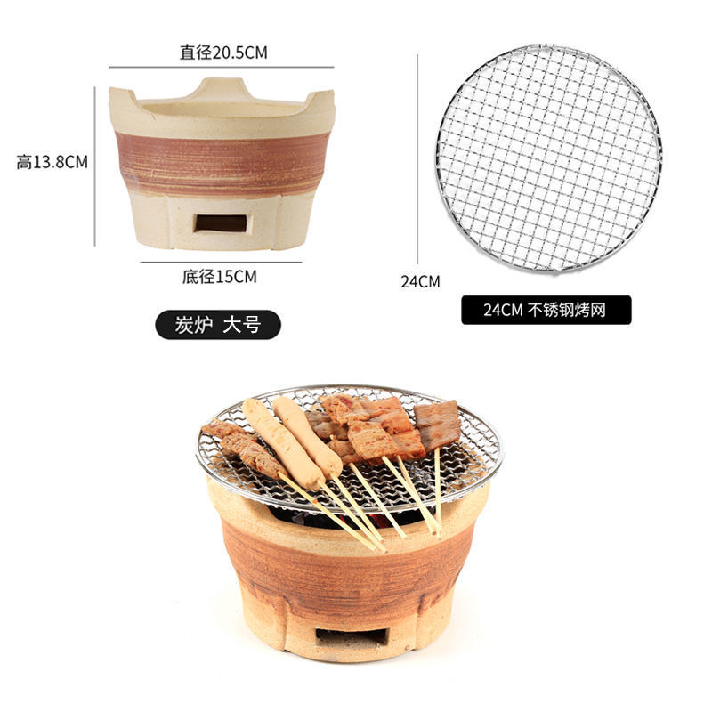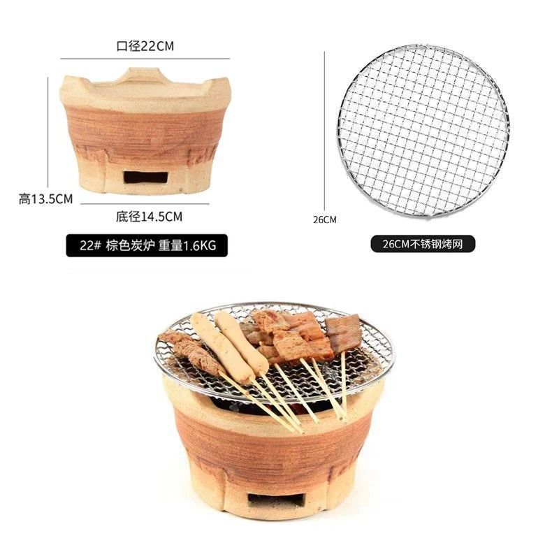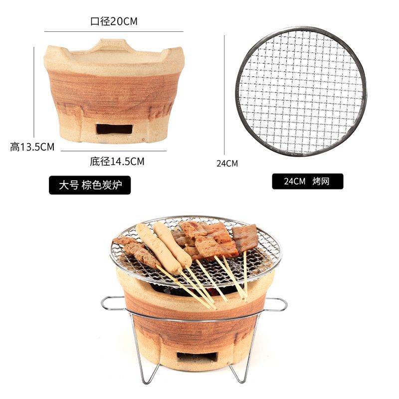 • (거친 진흙) 갈색 대형 숯불 난로 + 일회용 그릴망