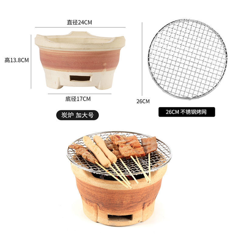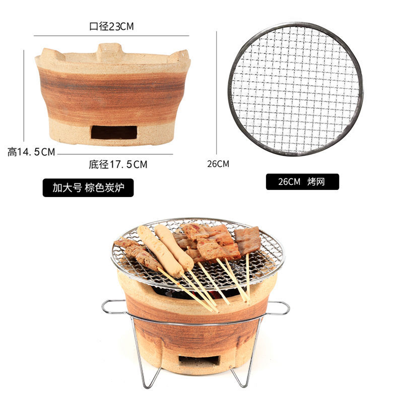 • (거친 진흙) 갈색 특대 숯불 난로 + 일회용 그릴망