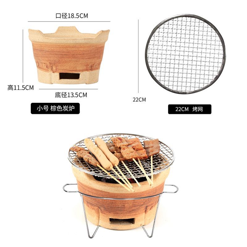• (거친 진흙) 갈색 소형 숯불 난로 + 일회용 그릴망