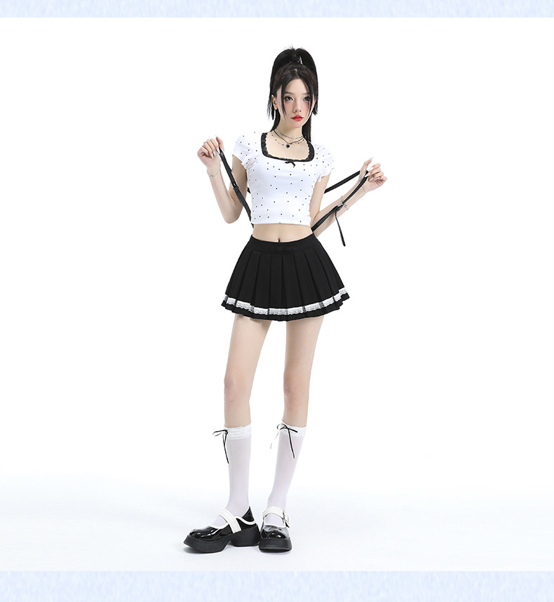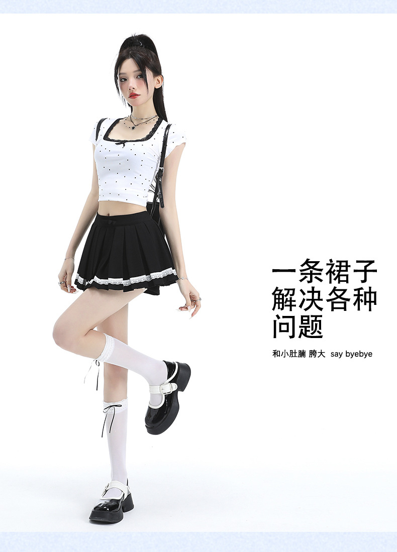 달콤하고 매콤한 리본과 레이스 스커트, 새로운 노출 방지 푹신한 여성용 정장 스커트
