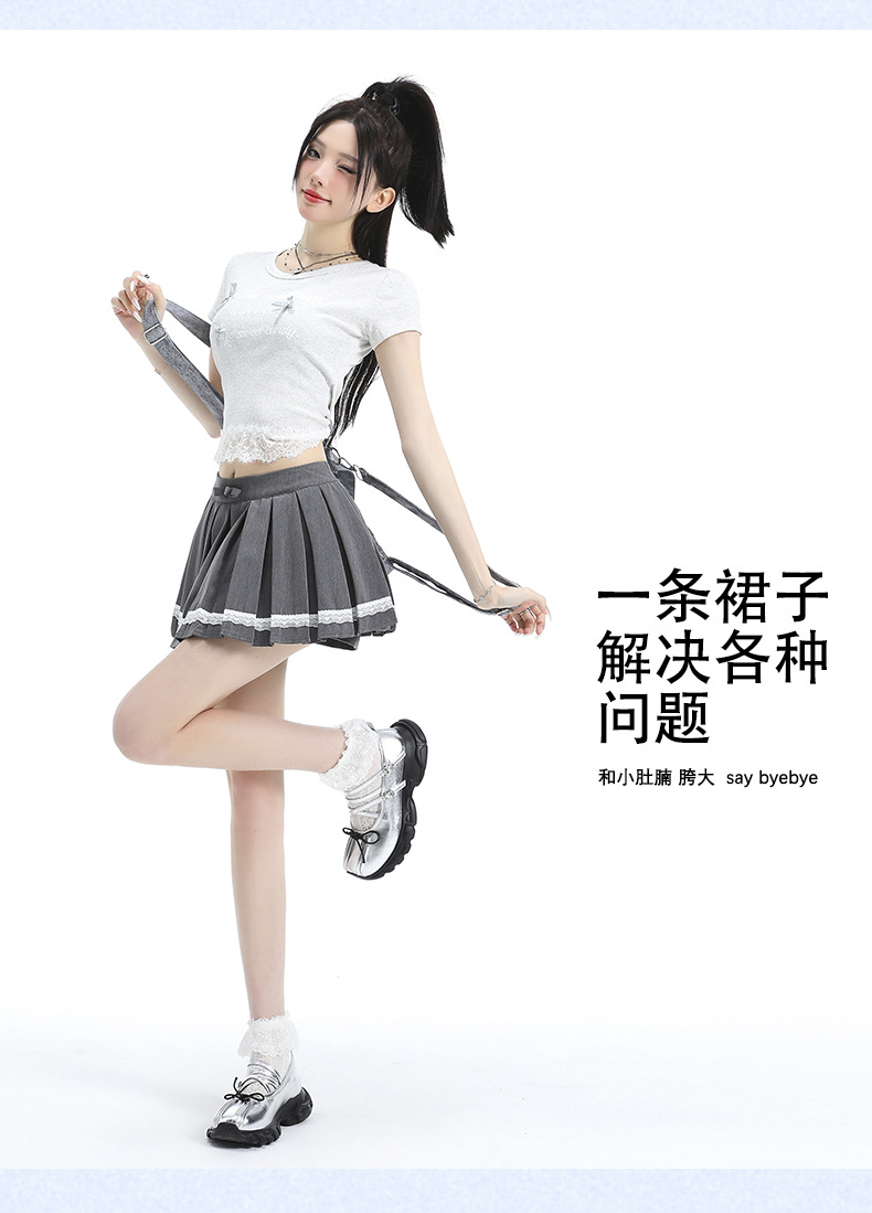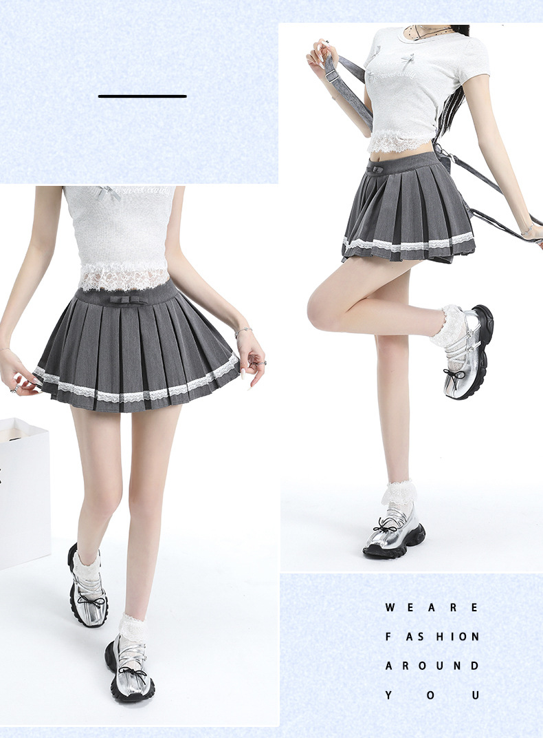 달콤하고 매콤한 리본과 레이스 스커트, 새로운 노출 방지 푹신한 여성용 정장 스커트스토어 가기