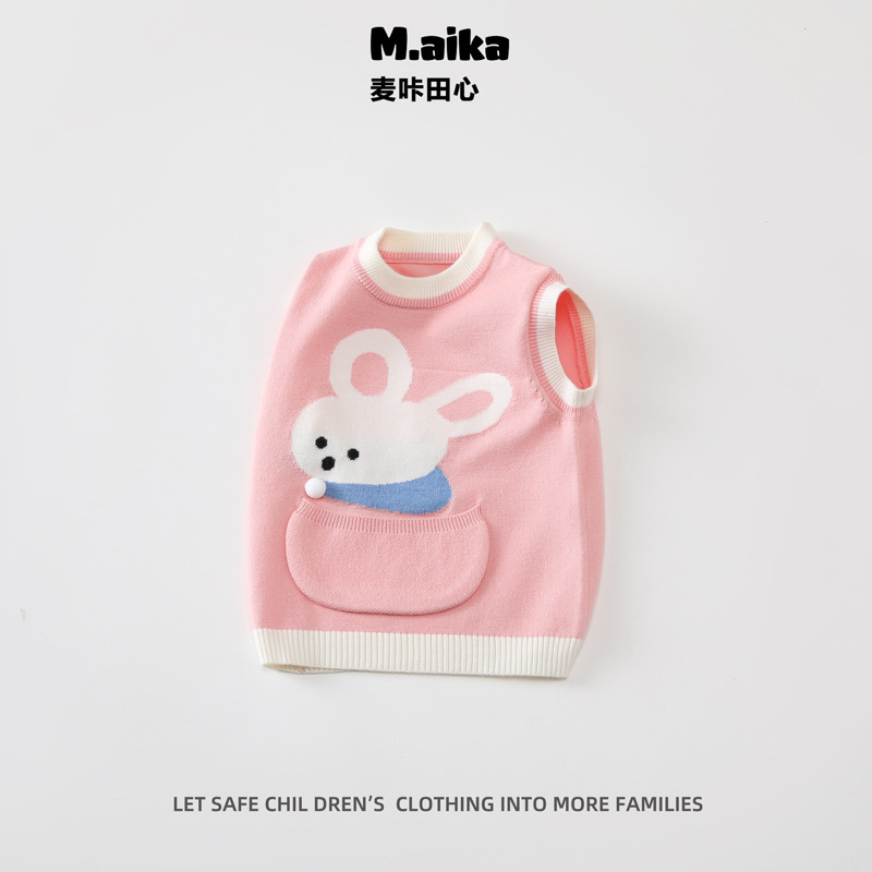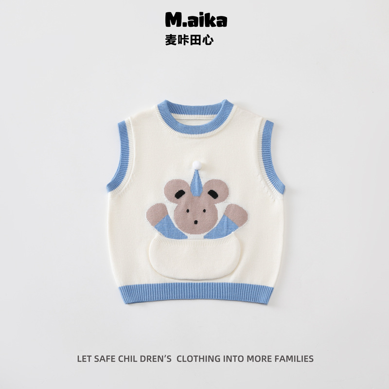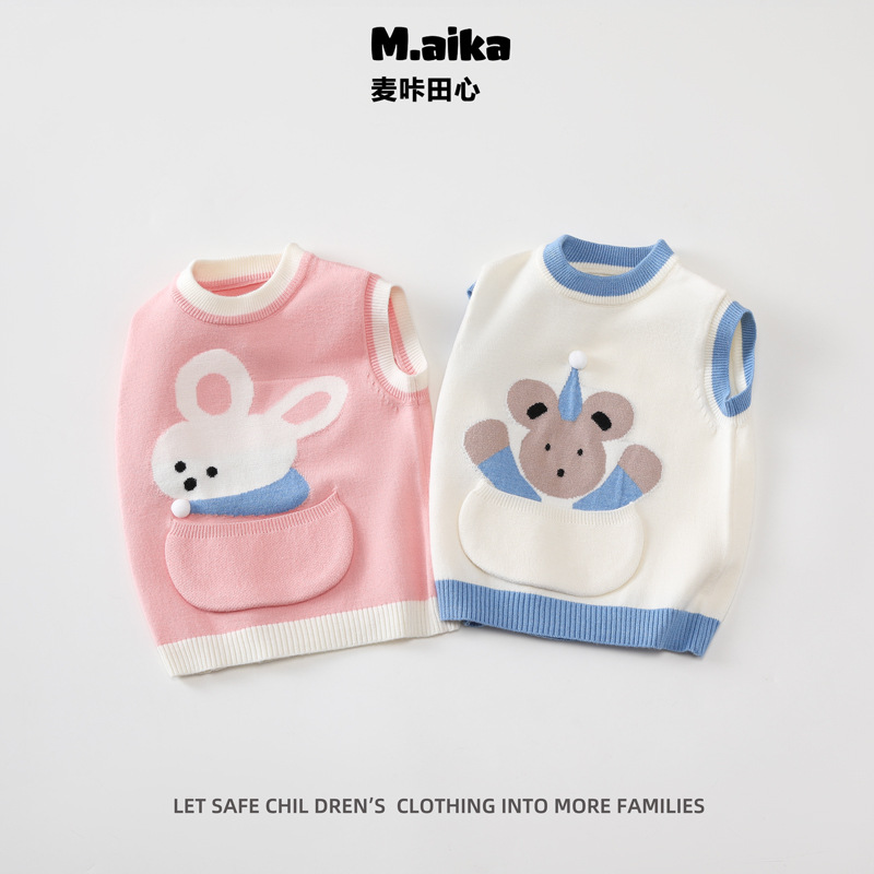 511 아기 조끼 봄과 가을 새로운 어린이 니트 스웨터 조끼 가을과 겨울 스타일 소년과 소녀 귀여운 겉옷