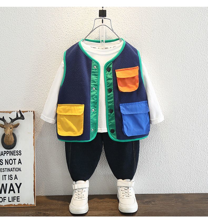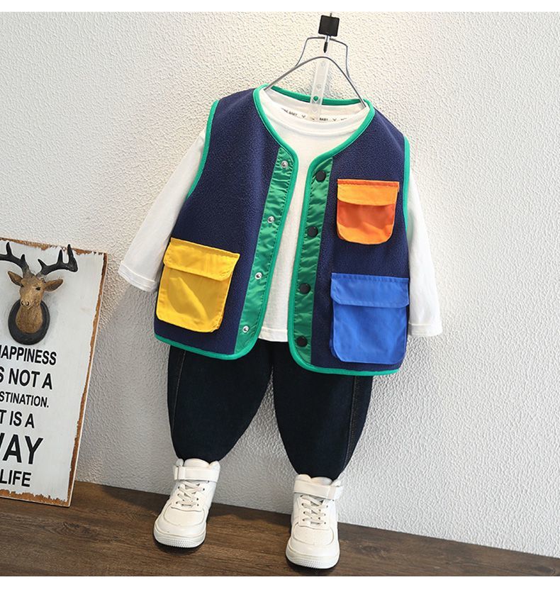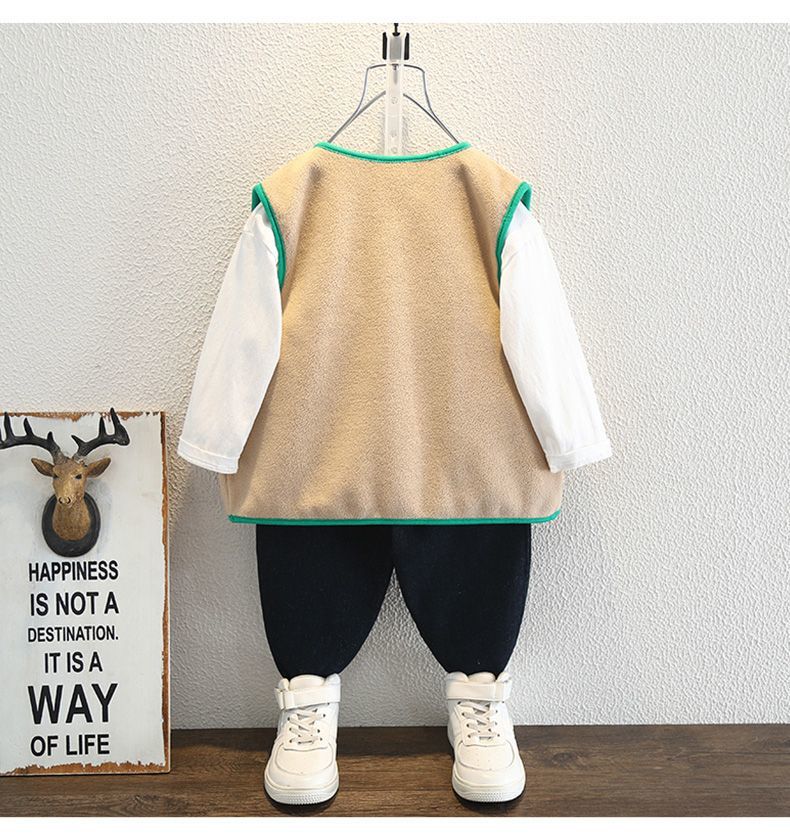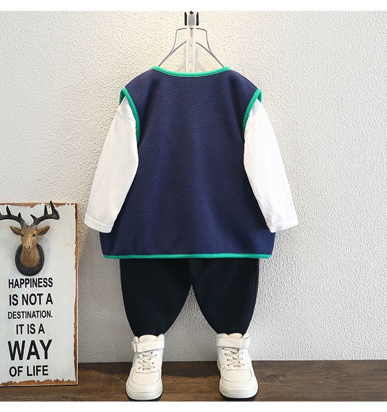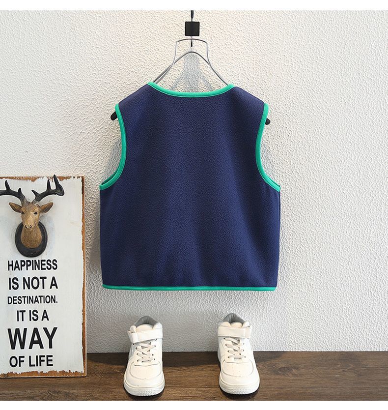 소년 봄 조끼 2025 새로운 어린이 겉옷 아기 봄, 가을 양복 조끼 폴라 플리스 소년 니트 조끼스토어 가기