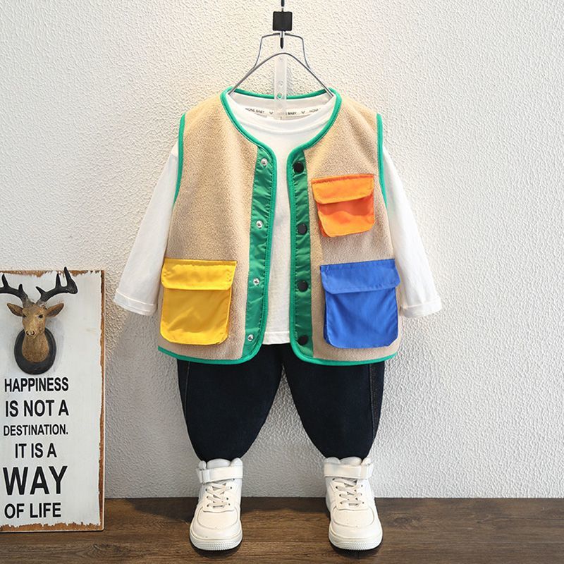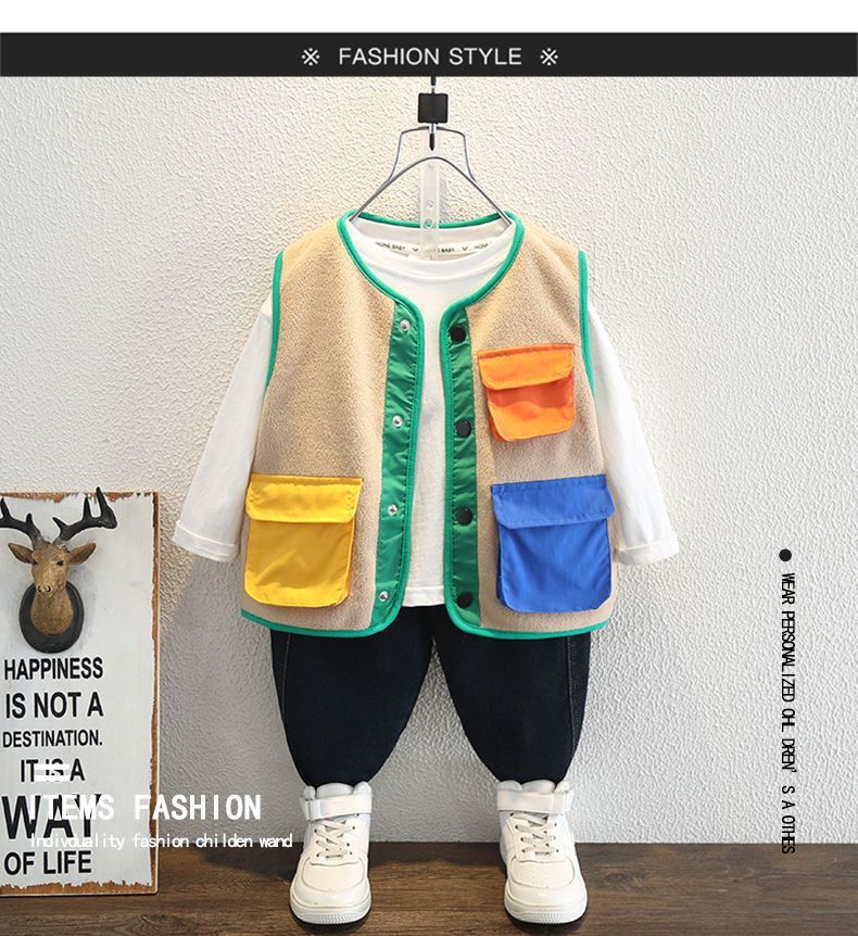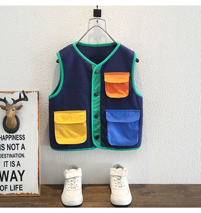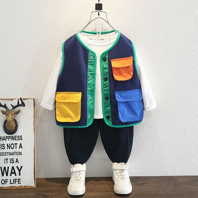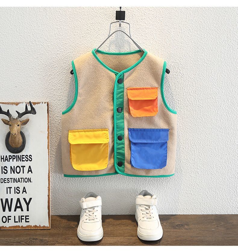 소년 봄 조끼 2025 새로운 어린이 겉옷 아기 봄, 가을 양복 조끼 폴라 플리스 소년 니트 조끼스토어 가기