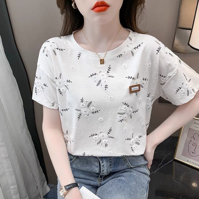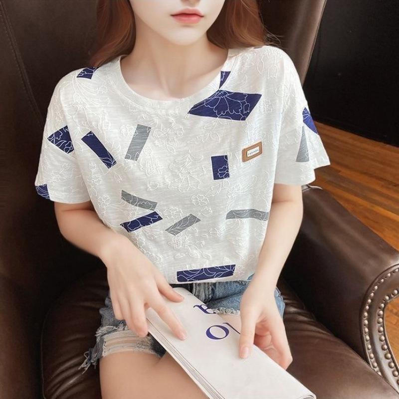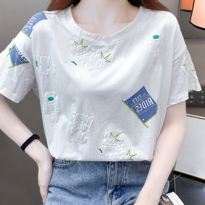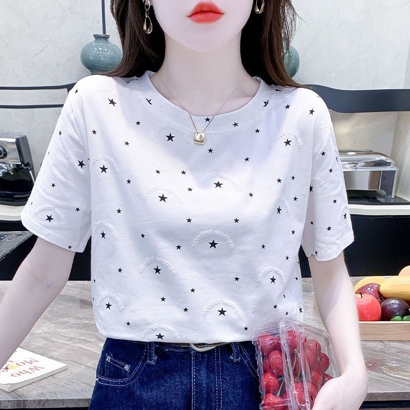 여름 여성 어깨 반팔 티셔츠 새로운 도착 느슨한 슬리밍 대형 통통녀 흰색 반소매 티셔츠 탑인스토어 가기