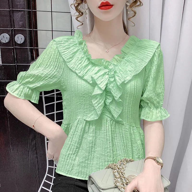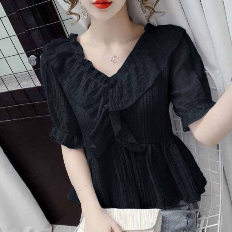 시폰 배꼽 덮고있는 시폰 셔츠 셔츠 옷 여성 최고 여름 새로운 얇은 아우터웨어 폭발 서양 스타일 디자인 감각