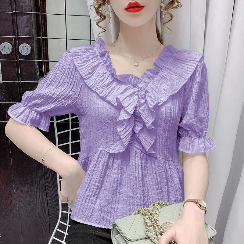시폰 배꼽 덮고있는 시폰 셔츠 셔츠 옷 여성 최고 여름 새로운 얇은 아우터웨어 폭발 서양 스타일 디자인 감각스토어 가기