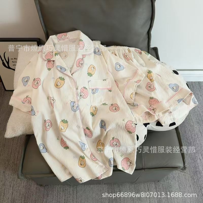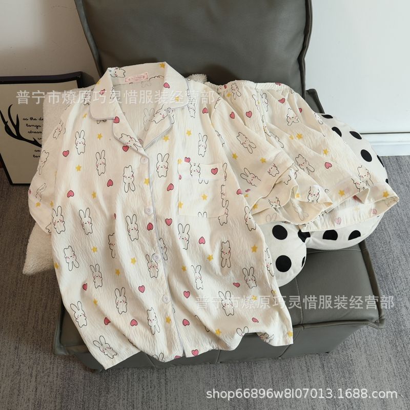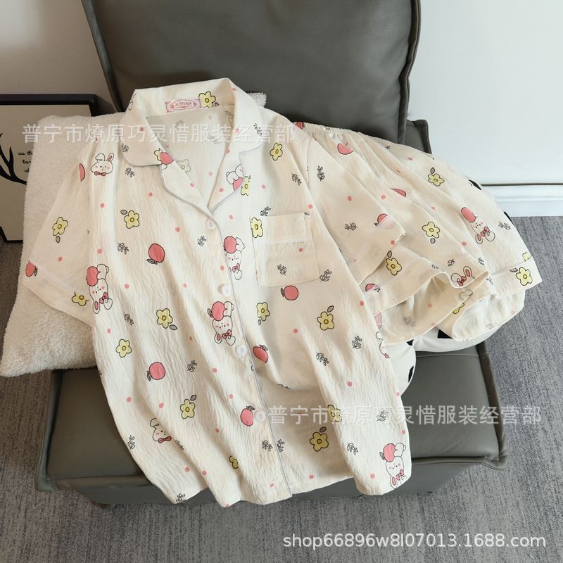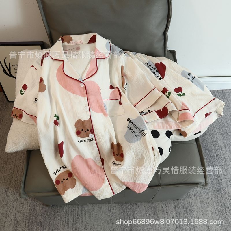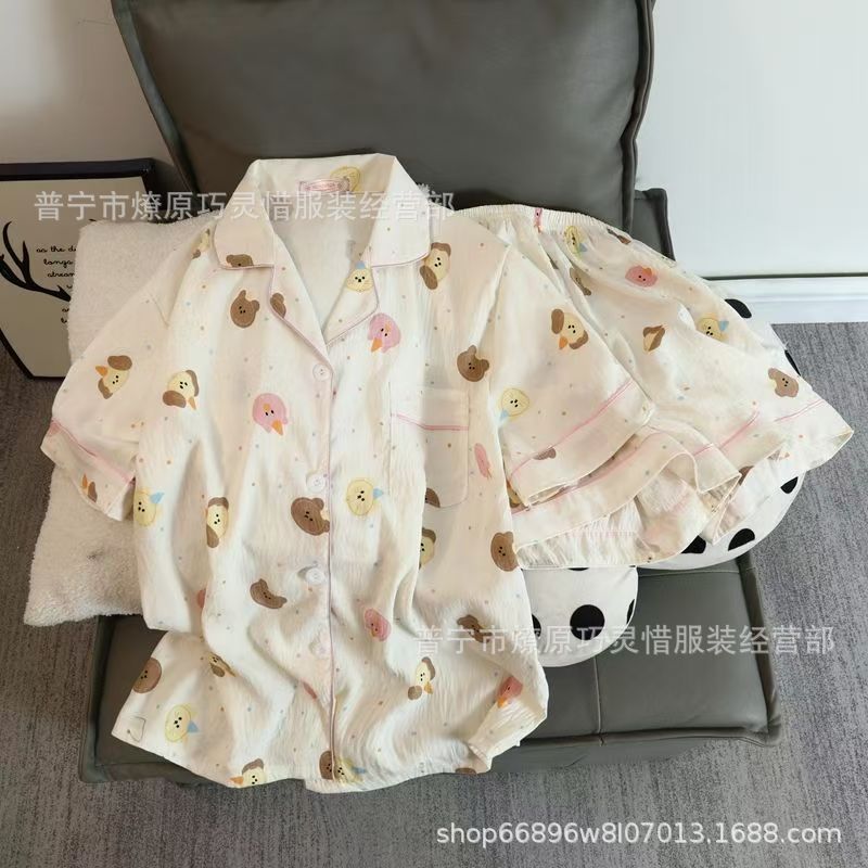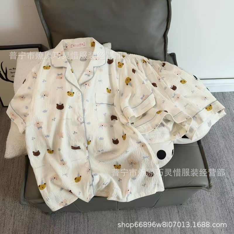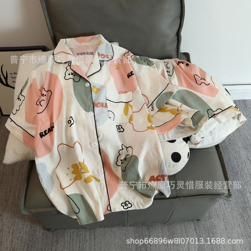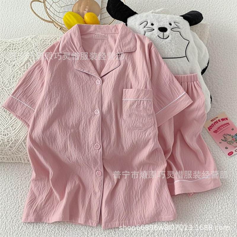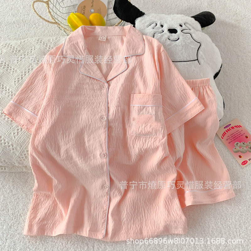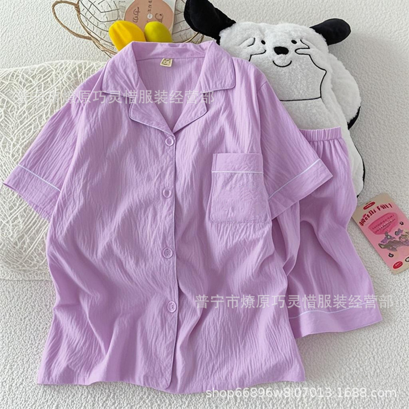 2025 새로운 스타일 잠옷 여성 여름 반팔 구름면 간단한 단색 만화 귀여운 소녀의 집 옷 세트스토어 가기