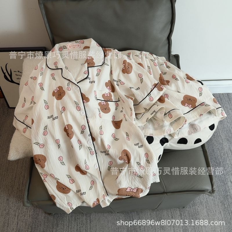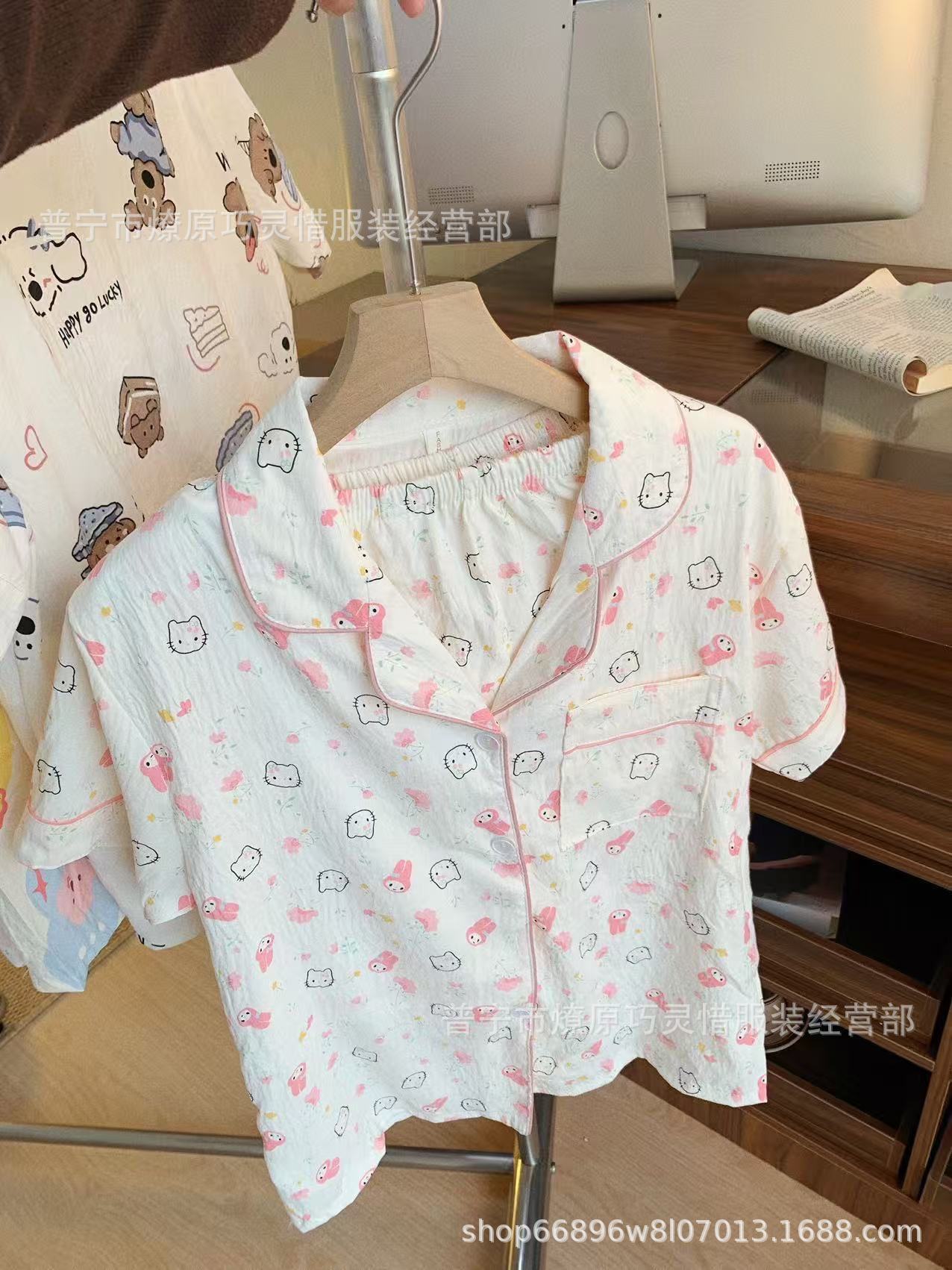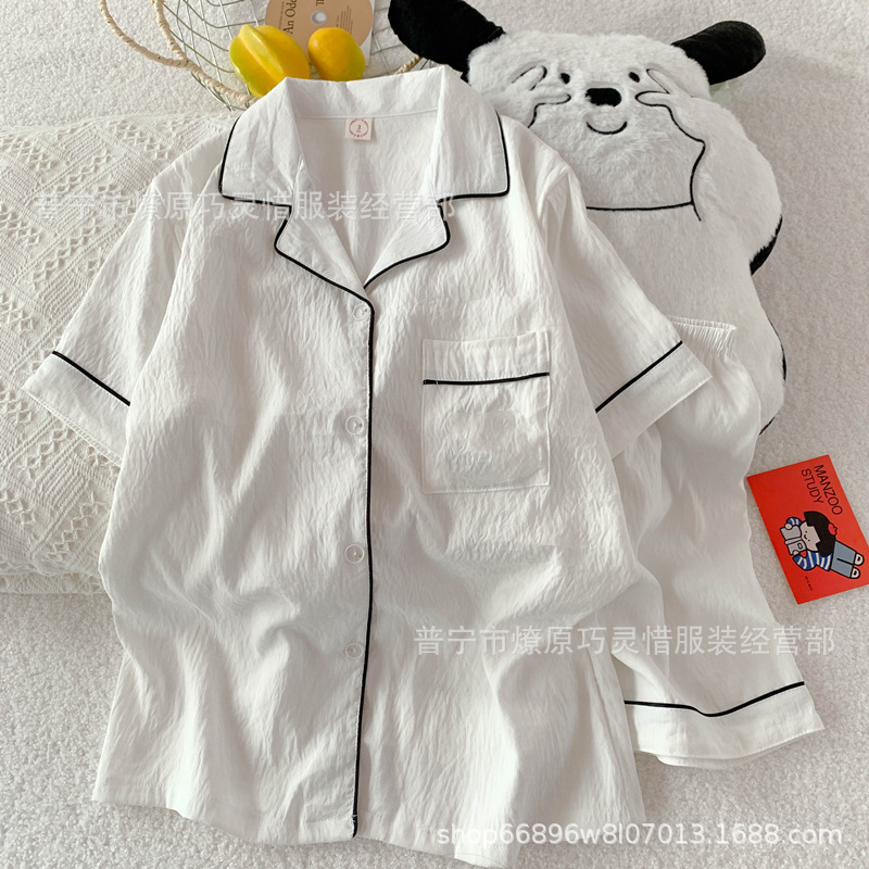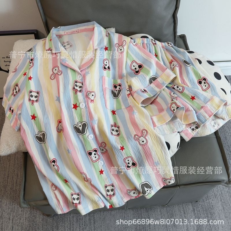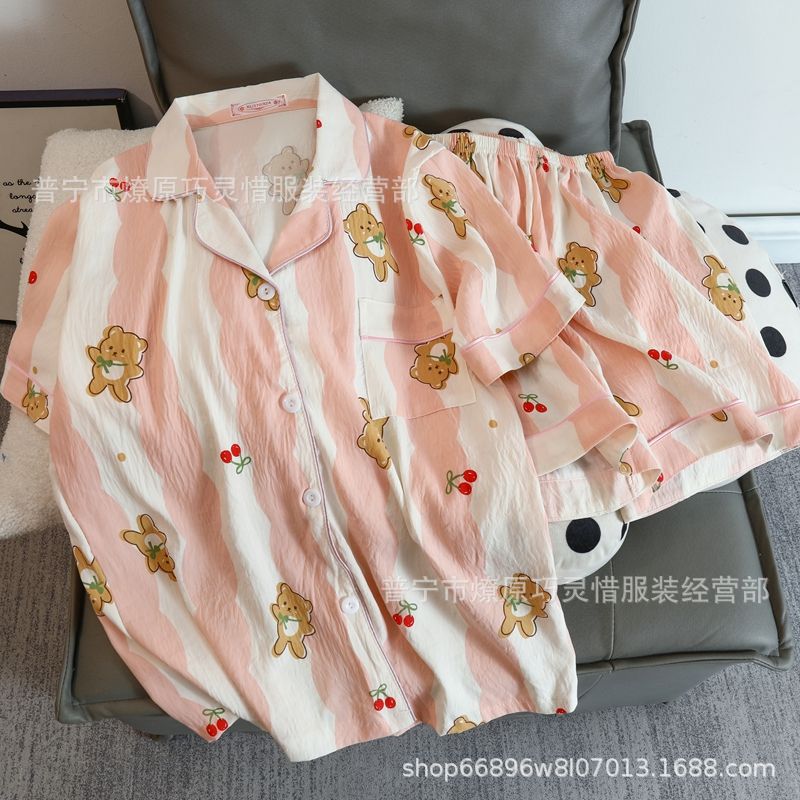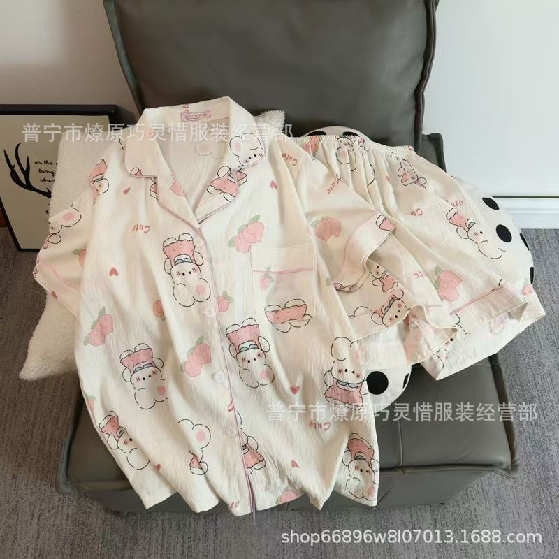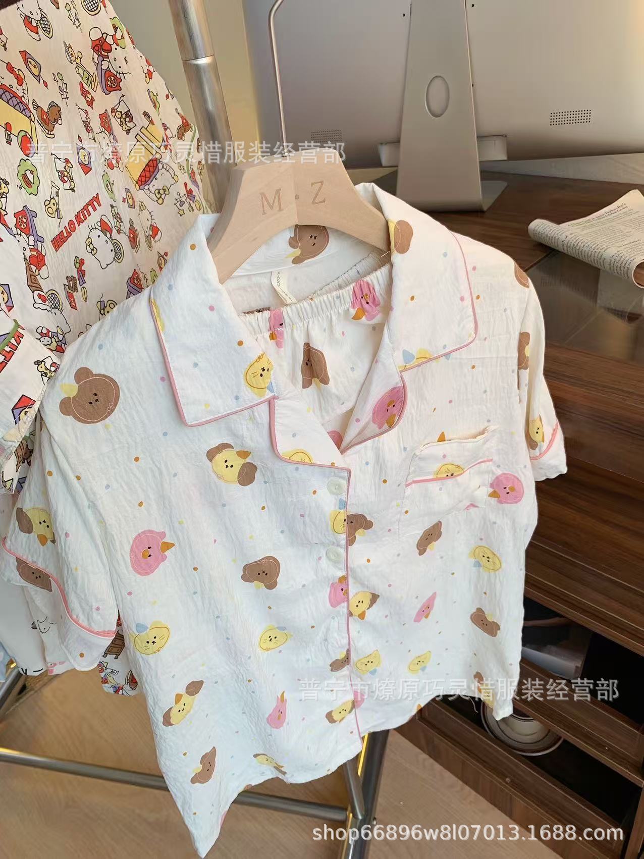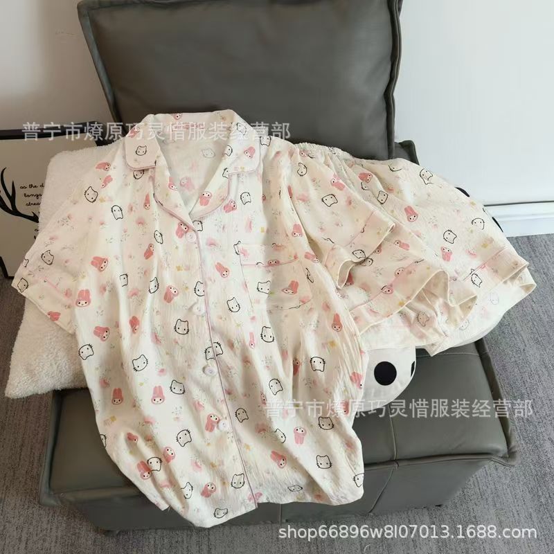 2025 새로운 스타일 잠옷 여성 여름 반팔 구름면 간단한 단색 만화 귀여운 소녀의 집 옷 세트스토어 가기