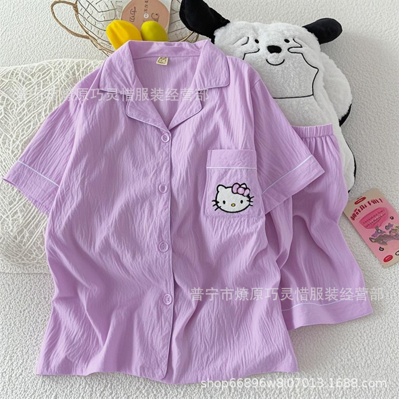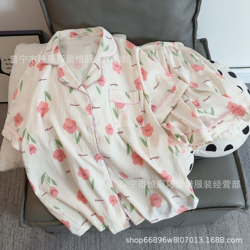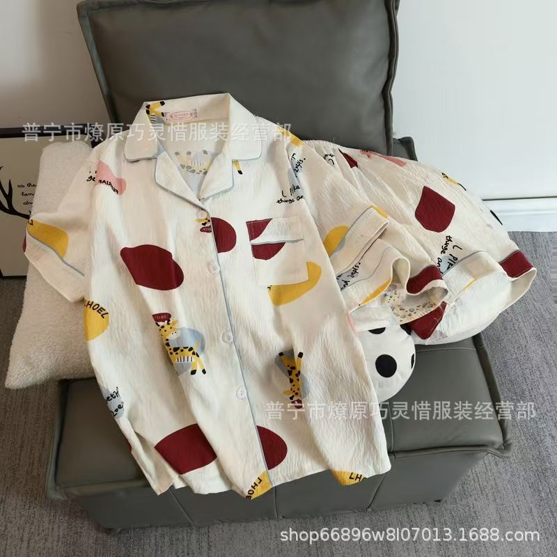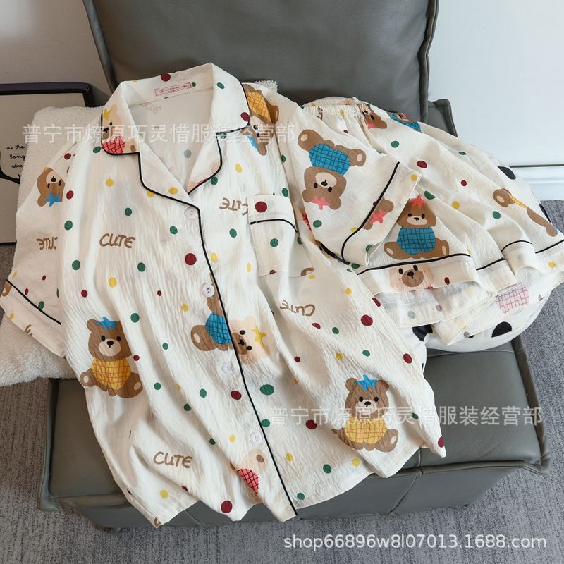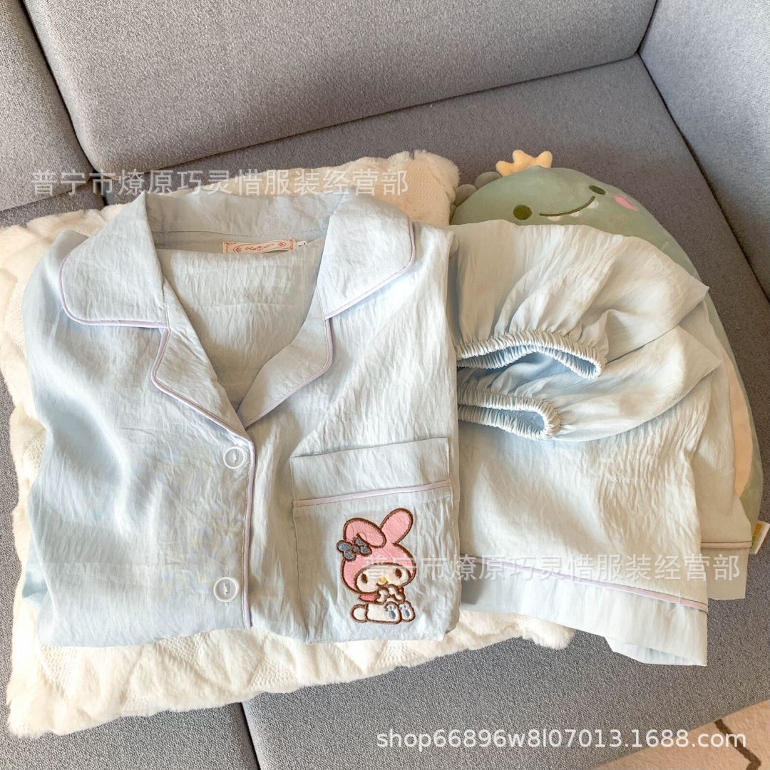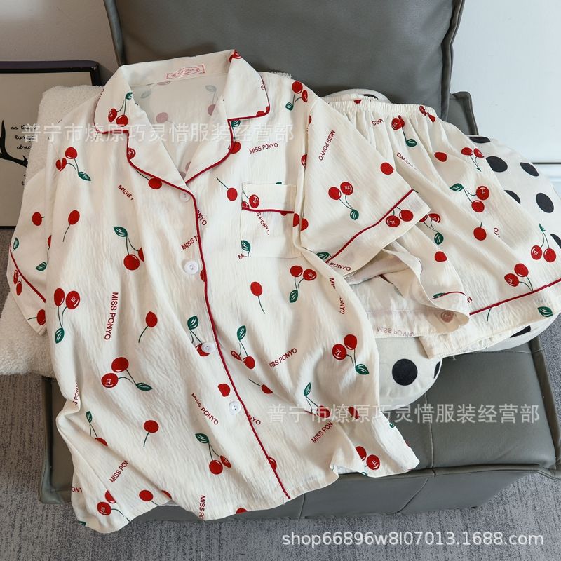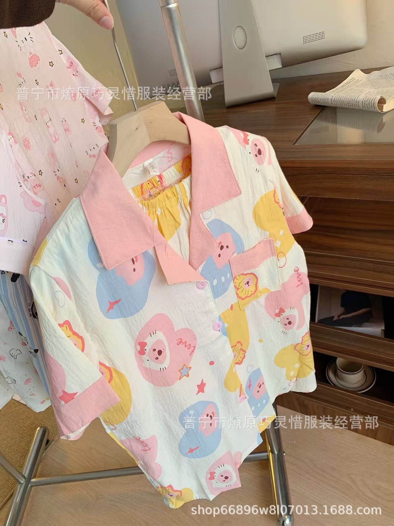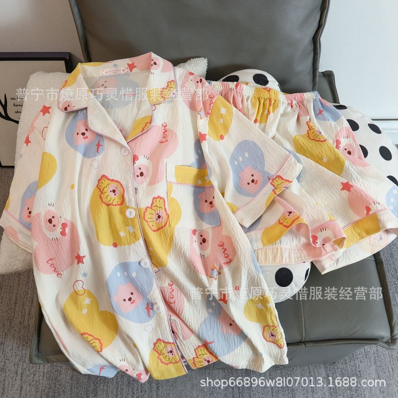 2025 새로운 스타일 잠옷 여성 여름 반팔 구름면 간단한 단색 만화 귀여운 소녀의 집 옷 세트스토어 가기