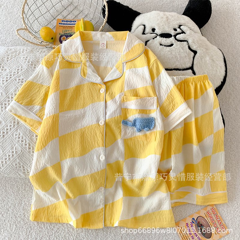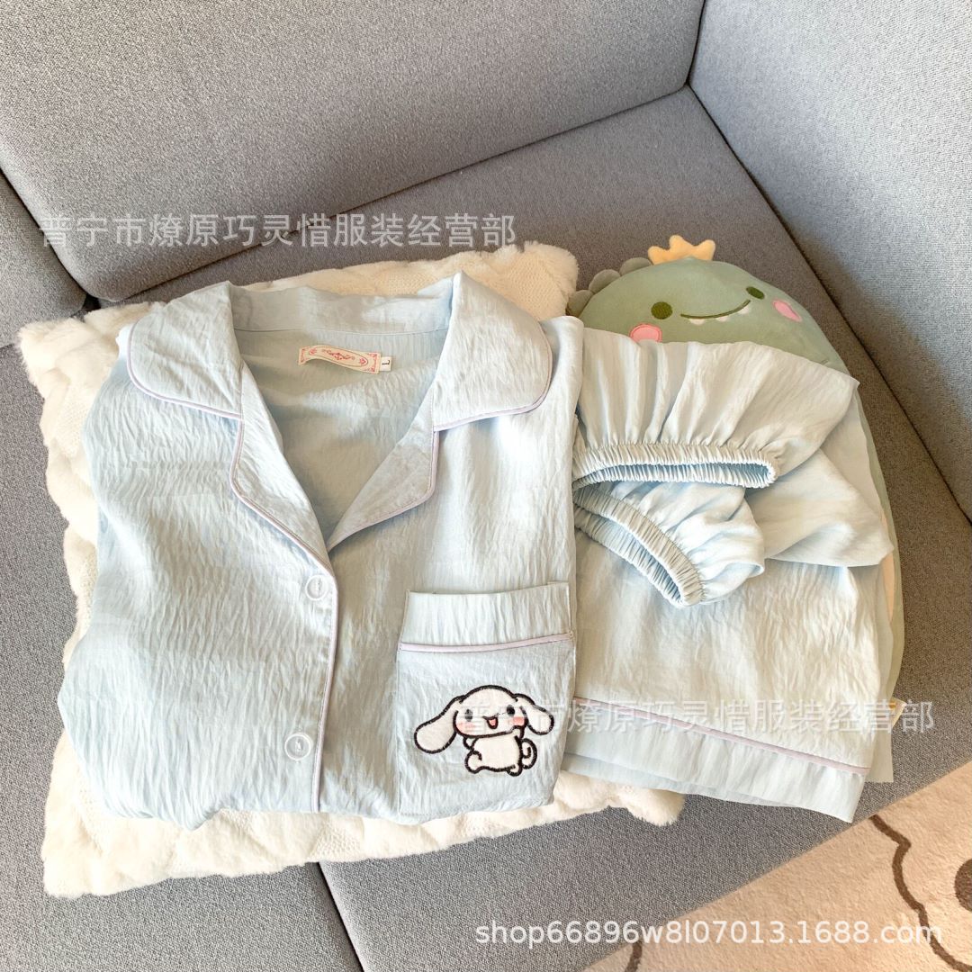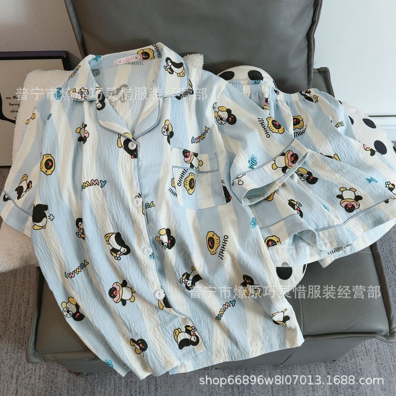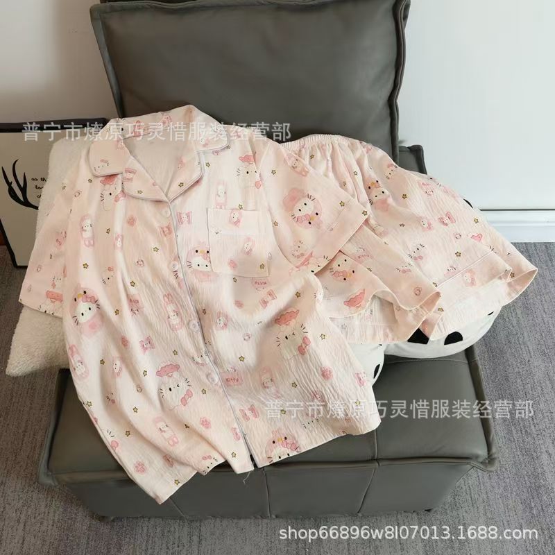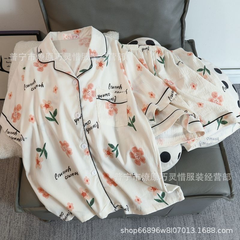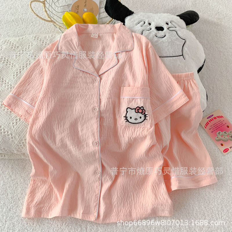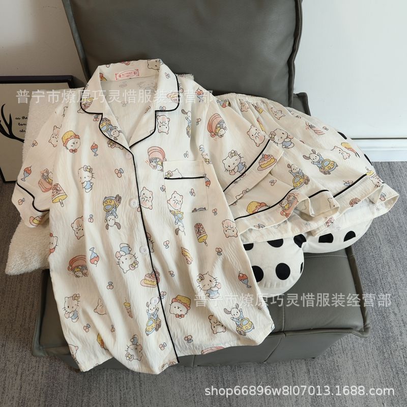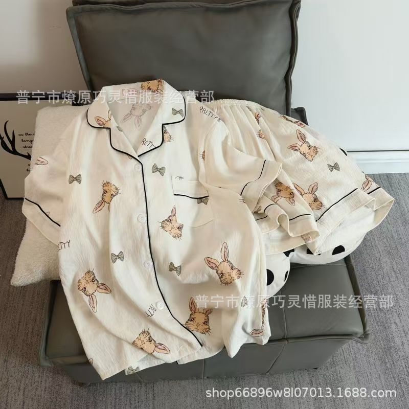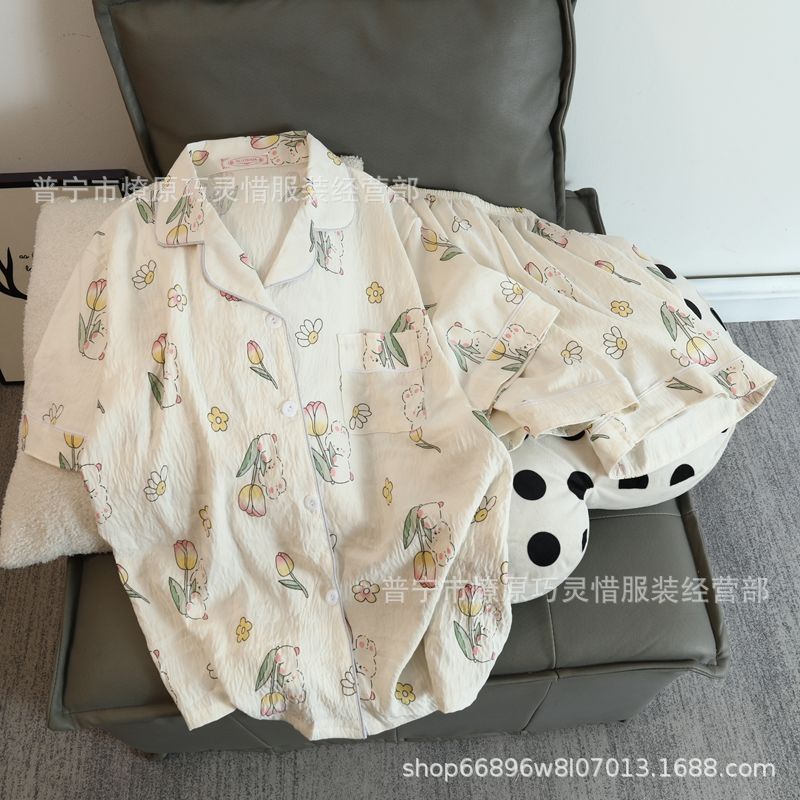 2025 새로운 스타일 잠옷 여성 여름 반팔 구름면 간단한 단색 만화 귀여운 소녀의 집 옷 세트스토어 가기